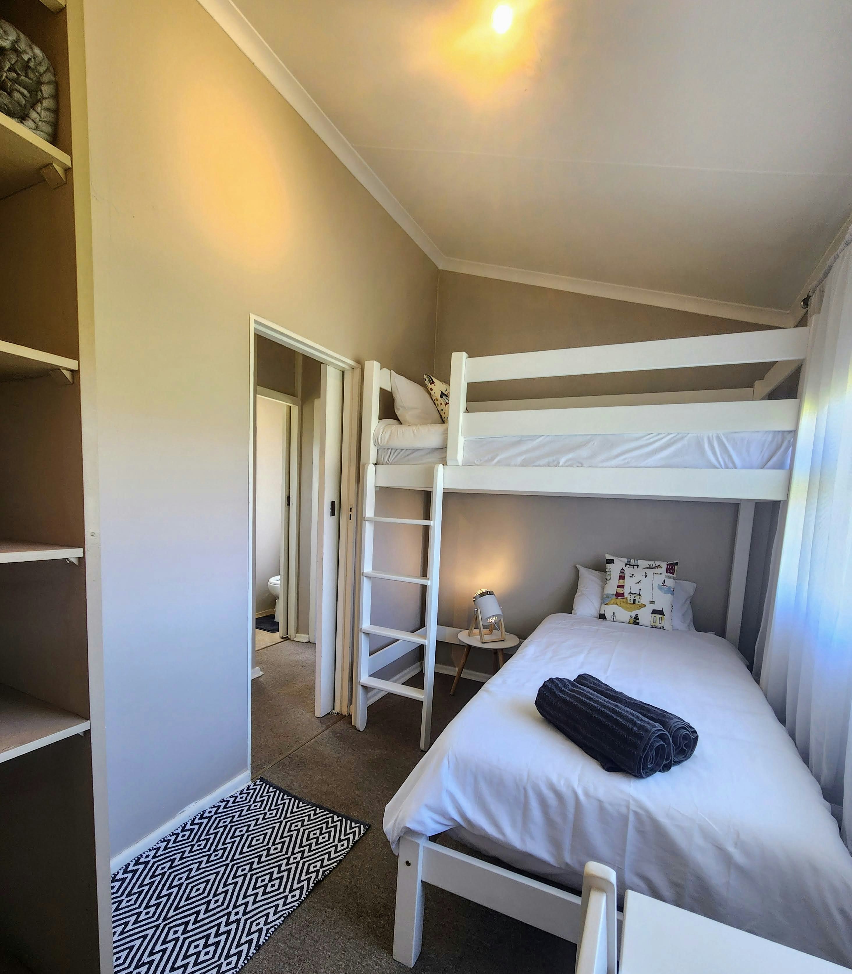 Die ruim kothuis bied slaapplek vir 4 gaste en bestaan uit 2 slaapkamers. Die hoofslaapkamer is gemeubileer met 'n koningingrootte bed, terwyl die tweede slaapkamer 'n stapelbed het. Gaste deel 'n badkamer met 'n toilet en 'n bad met 'n oorhoofse stort. Linne en badhanddoeke word voorsien.