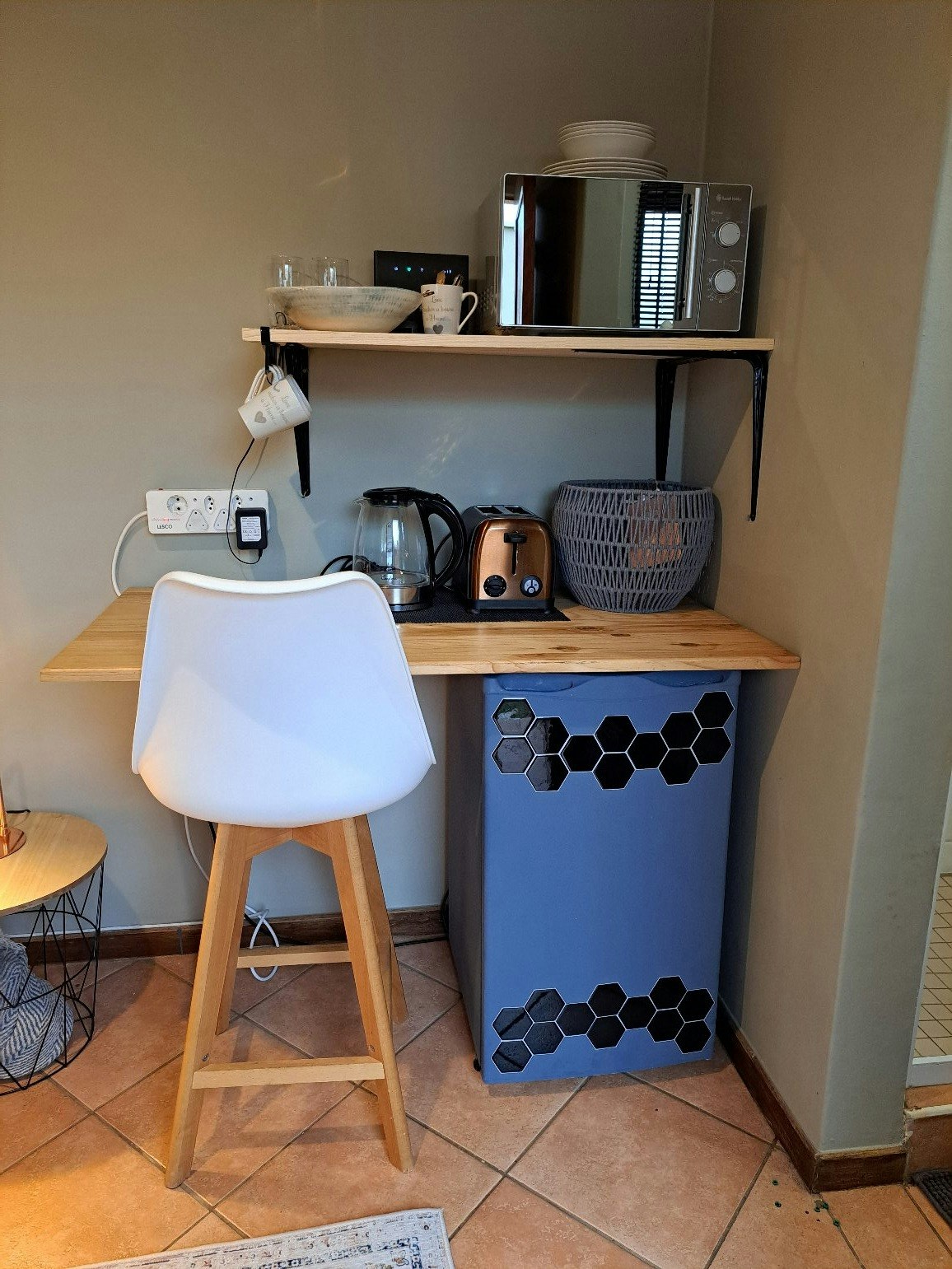 Die kombuisie is toegerus met 'n yskassie, mikrogolfoond, broodrooster en koffie- en teemaakgeriewe, perfek vir ligte selfsorg. Parkering word op die perseel voorsien.