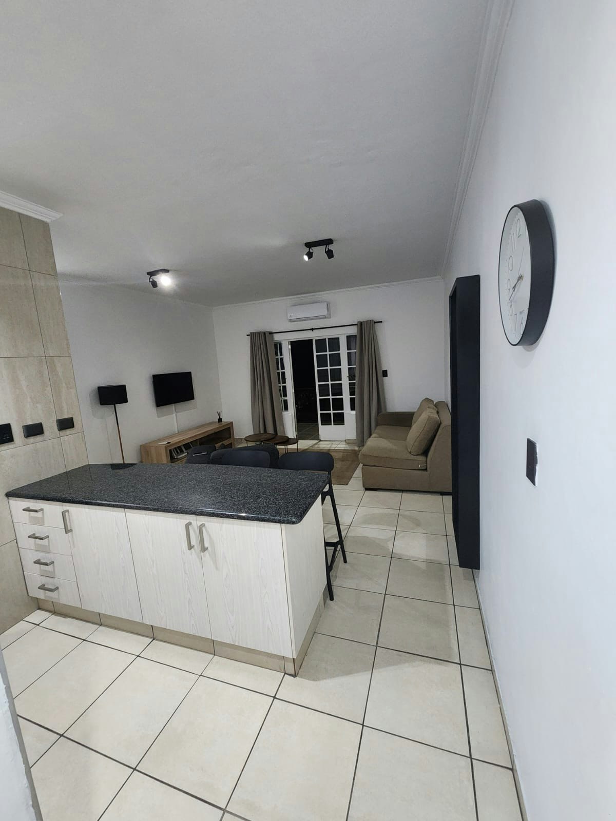 Die oopplan-leefarea beskik oor gemaklike sitplek, 'n TV en 'n volledig toegeruste kombuis met 'n yskas-vrieskas, stoof, oond, mikrogolfoond, wasmasjien en koffie- en teemaakgeriewe. Gaste kan uitstap na 'n balkon met uitsig oor 'n rustige tuin, die perfekte plek om 'n oggendkoffie te geniet of saans te ontspan. Veilige parkering op die perseel en sekuriteit verseker gemoedsrus dwarsdeur u verblyf.