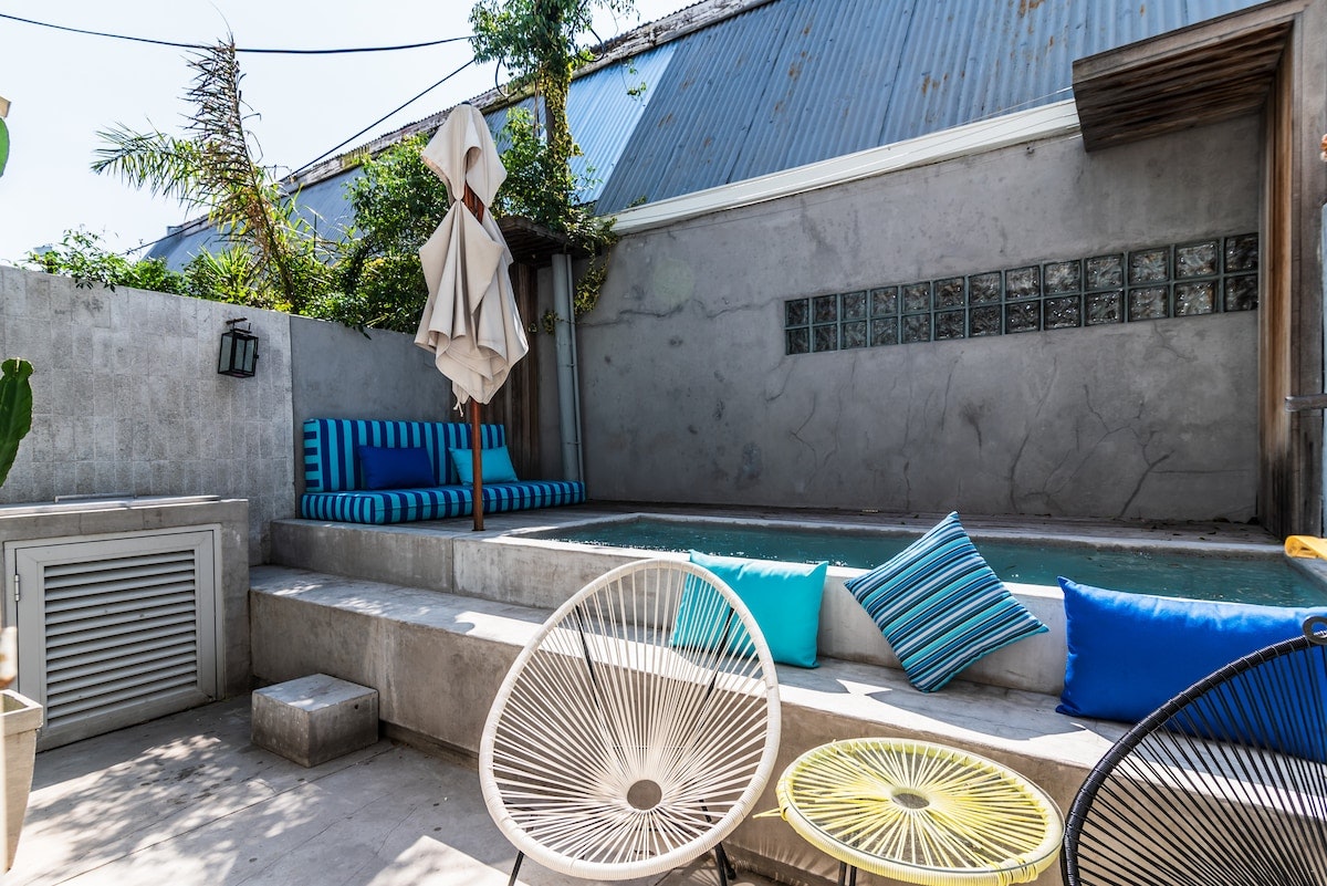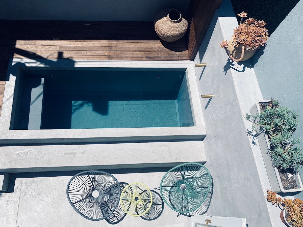 Outside, guests can enjoy more outdoor seating, and during the summer days, a refreshing pool awaits guests, offering a rejuvenating respite from the heat. Secure parking is available.