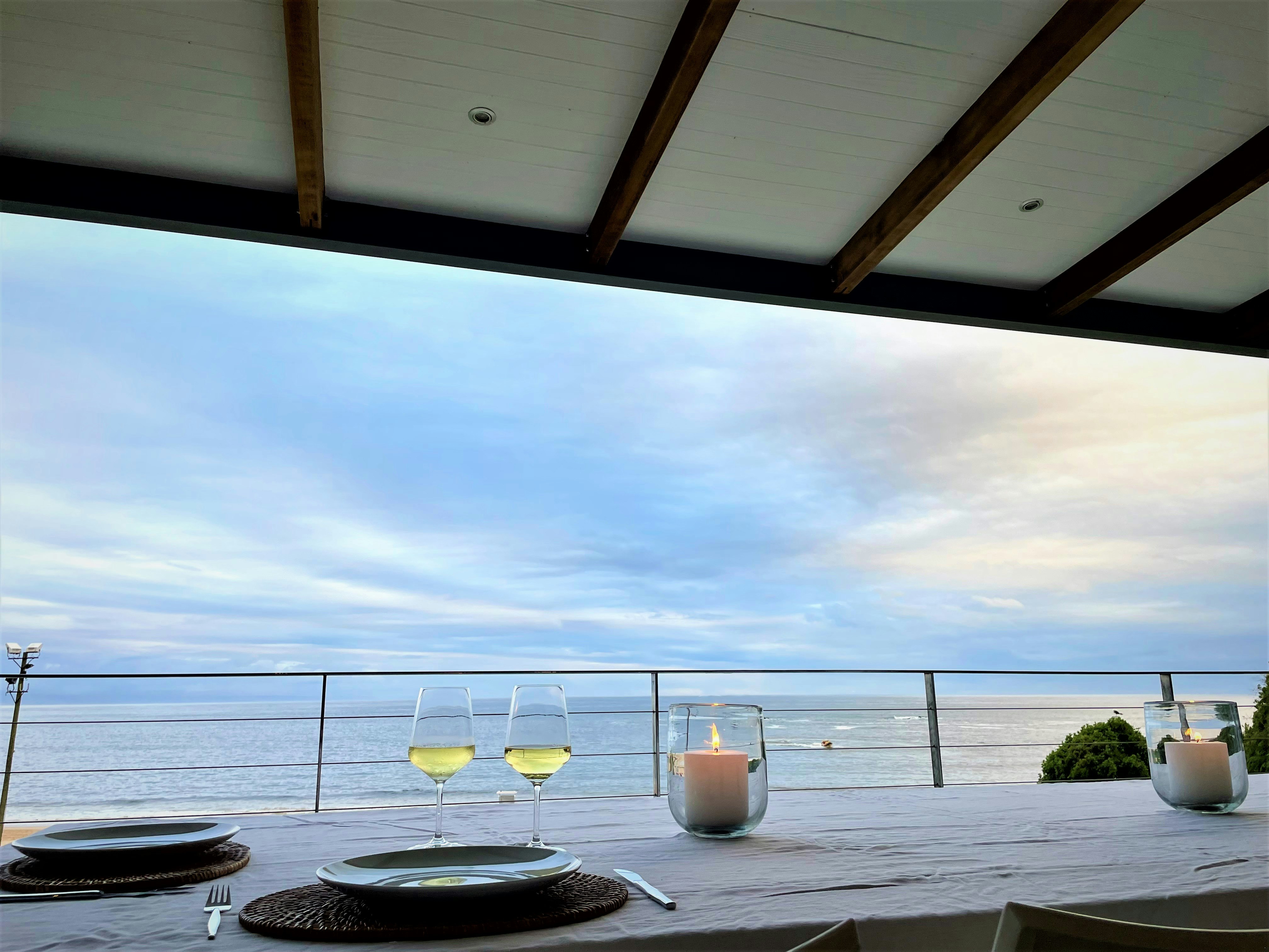 Die kombuis is met 'n stoof, oond, yskas-vrieskas en 'n mikrogolf toegerus. Die leefarea het 'n sitarea en 'n eetarea en lei na 'n groot stoep met braaigeriewe, 'n buitestort en 'n eetarea. 'n Trap lei na die grasperk onder en dit het 'n hekkie wat toegang tot die strand bied.