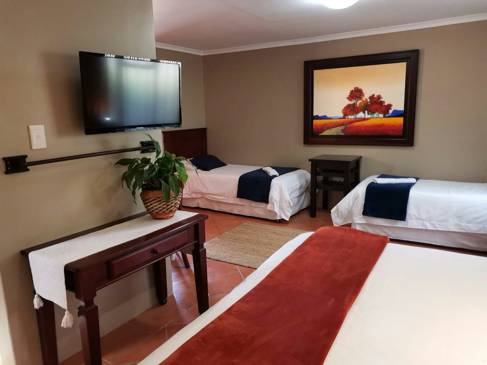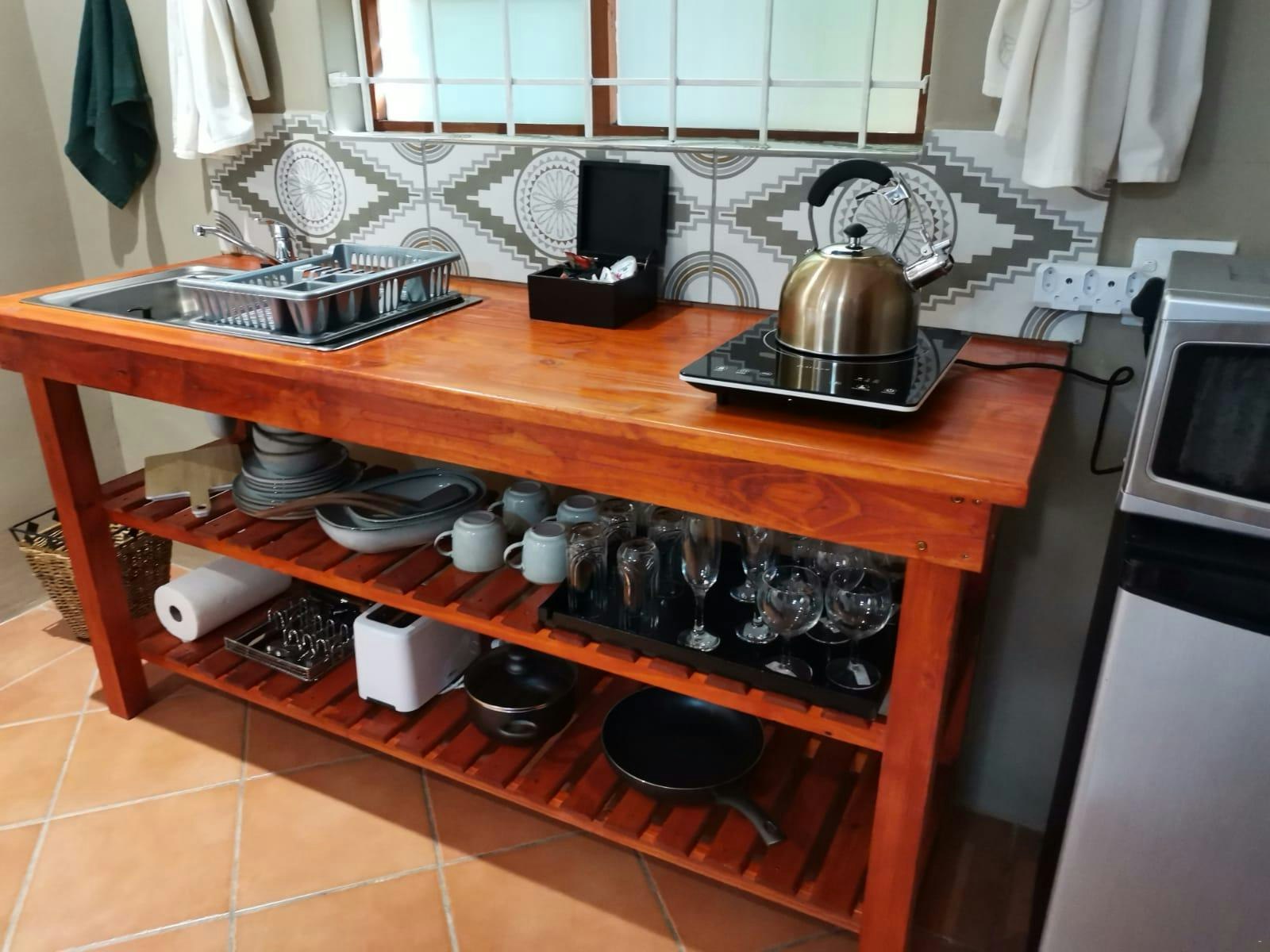 Daarbenewens beskik die kamer oor 'n lessenaar, 'n kombuisie toegerus met 'n mikrogolfoond, yskas, induksieplaat, 'n broodrooster, eetgerei en breekware, sowel as tee- en koffiemaakgeriewe. Die slaapkamer het ook 'n platskerm-TV met gedeelde DStv, en gratis WiFi is ook beskikbaar. Sommige kamers het uitsigte oor die koi-dam, en ander het direkte toegang tot die gemeenskaplike swembadarea. Beurtkrag is nie 'n probleem nie, aangesien die eiendom toegerus is met 'n groot sonkragstelsel.