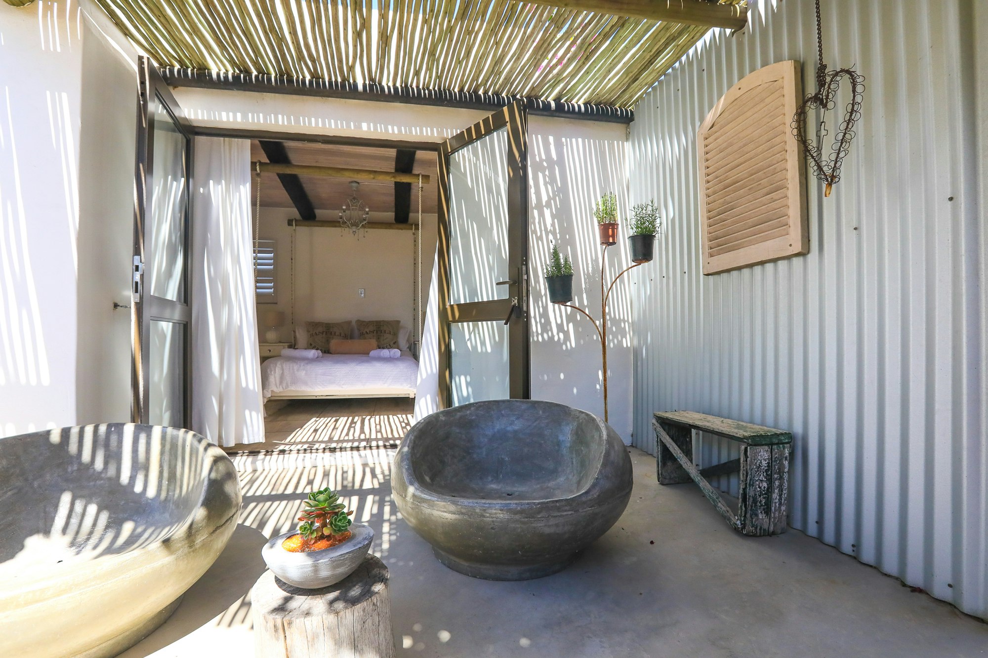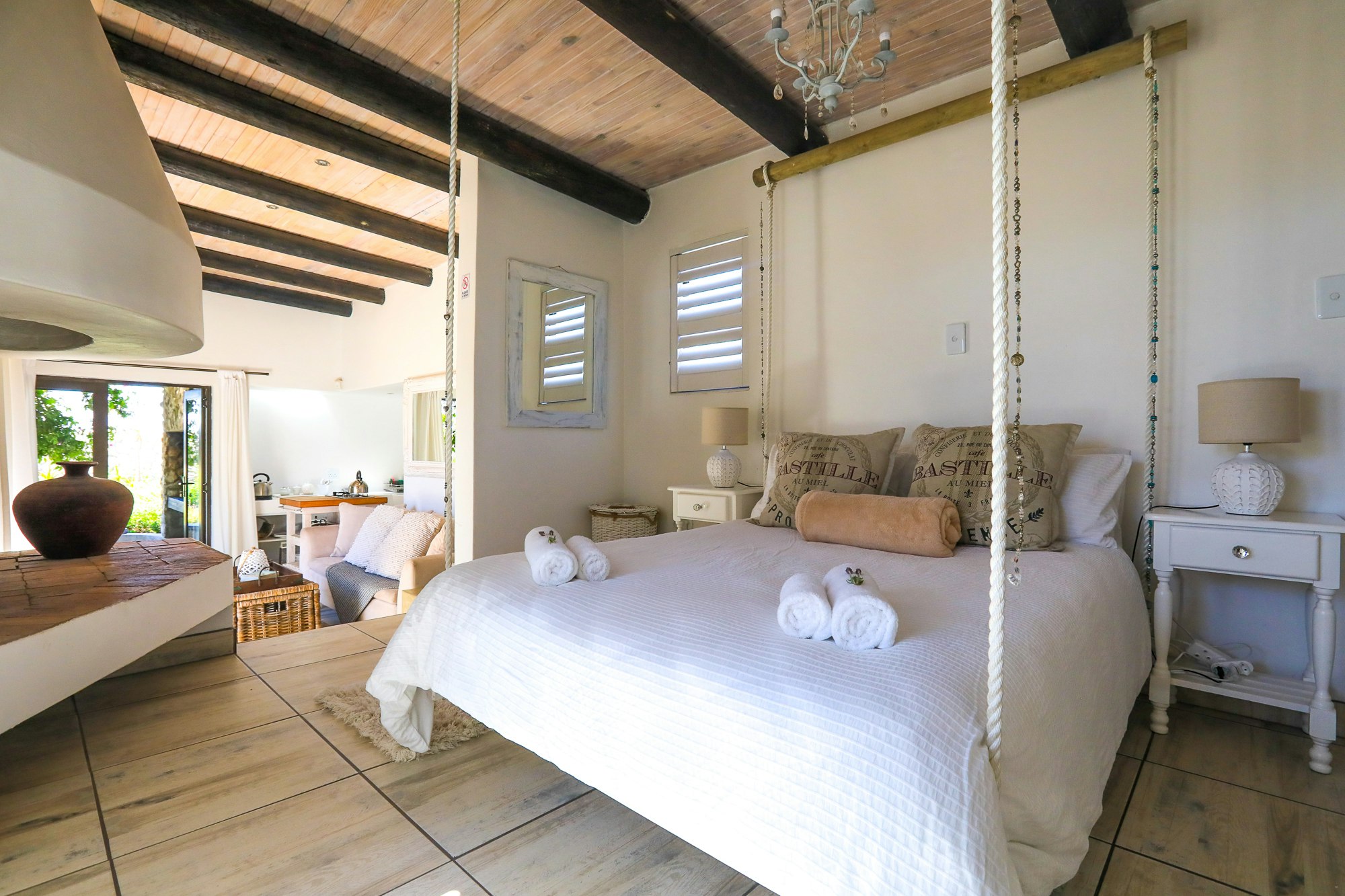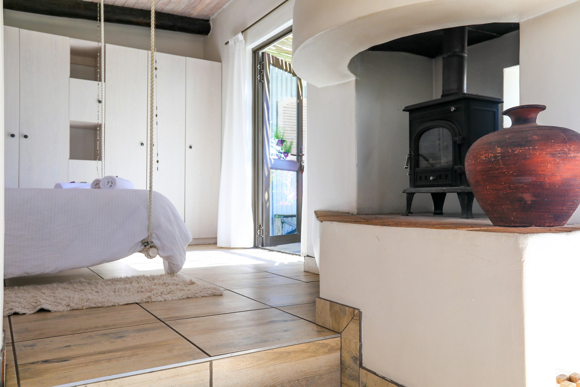 Dié oopplan-ateljeewoonstel beskik oor 'n slaapkamer met 'n dubbelbed en 'n en suite-badkamer met 'n vrystaande pootjiesbad. Aan die oorkant van die binnehof, 'n paar tree vanaf die tuin-ateljeewoonstel, is 'n losstaande kombuis en 'n tweede badkamer met 'n groot instap-dubbelstort. Die kombuis is met 'n yskas, stoof en 'n mikrogolf toegerus. Die leefarea het sitplek vir 2 gaste, 'n rusbank en 'n kaggel. Daar is 'n losstaande gasstoofplaat. Hierdie is 'n baie privaat kothuis en word deur groot fynbosstruike omring. Dié kothuis spog met 'n privaat houtvuurwarmbad.