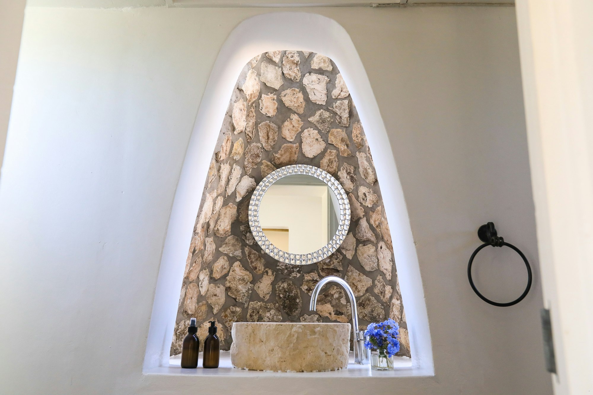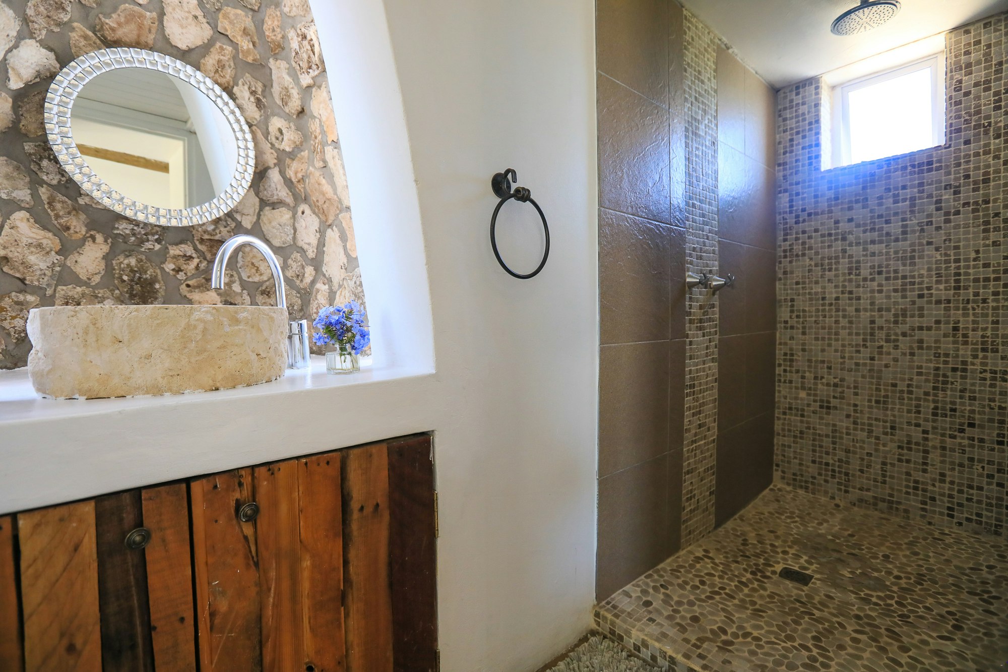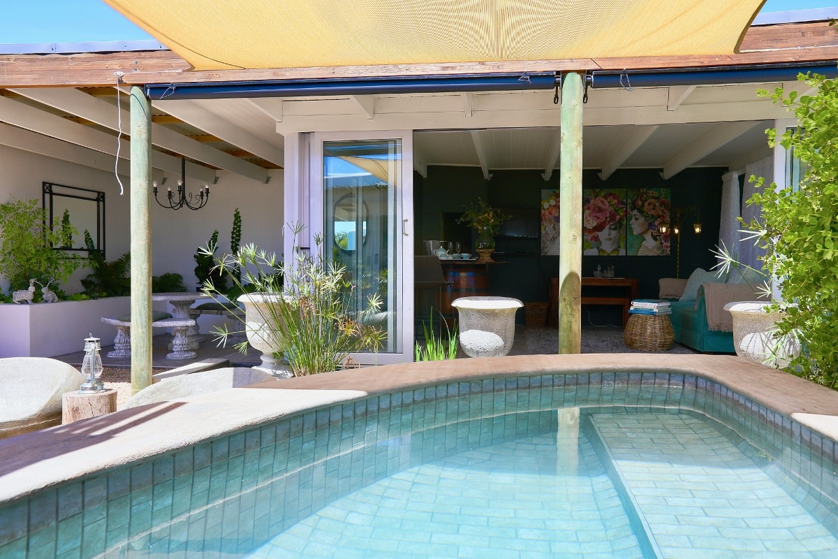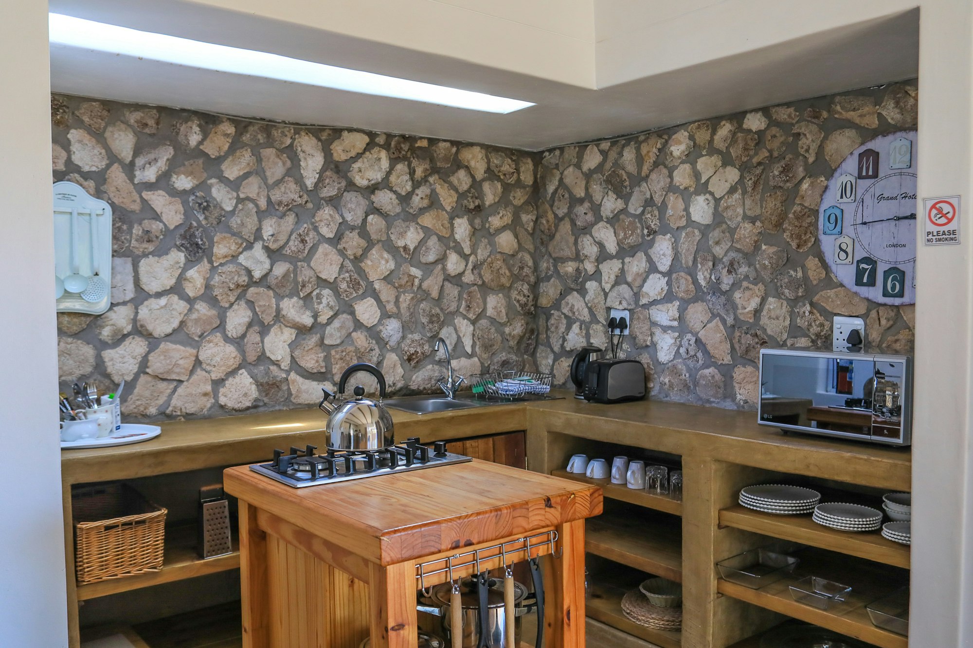 Dié oopplan-ateljeewoonstel beskik oor 'n slaapkamer met 'n dubbelbed en 'n en suite-badkamer met 'n vrystaande pootjiesbad. Aan die oorkant van die binnehof, 'n paar tree vanaf die tuin-ateljeewoonstel, is 'n losstaande kombuis en 'n tweede badkamer met 'n groot instap-dubbelstort. Die kombuis is met 'n yskas, stoof en 'n mikrogolf toegerus. Die leefarea het sitplek vir 2 gaste, 'n rusbank en 'n kaggel. Daar is 'n losstaande gasstoofplaat. Hierdie is 'n baie privaat kothuis en word deur groot fynbosstruike omring. Dié kothuis spog met 'n privaat houtvuurwarmbad.