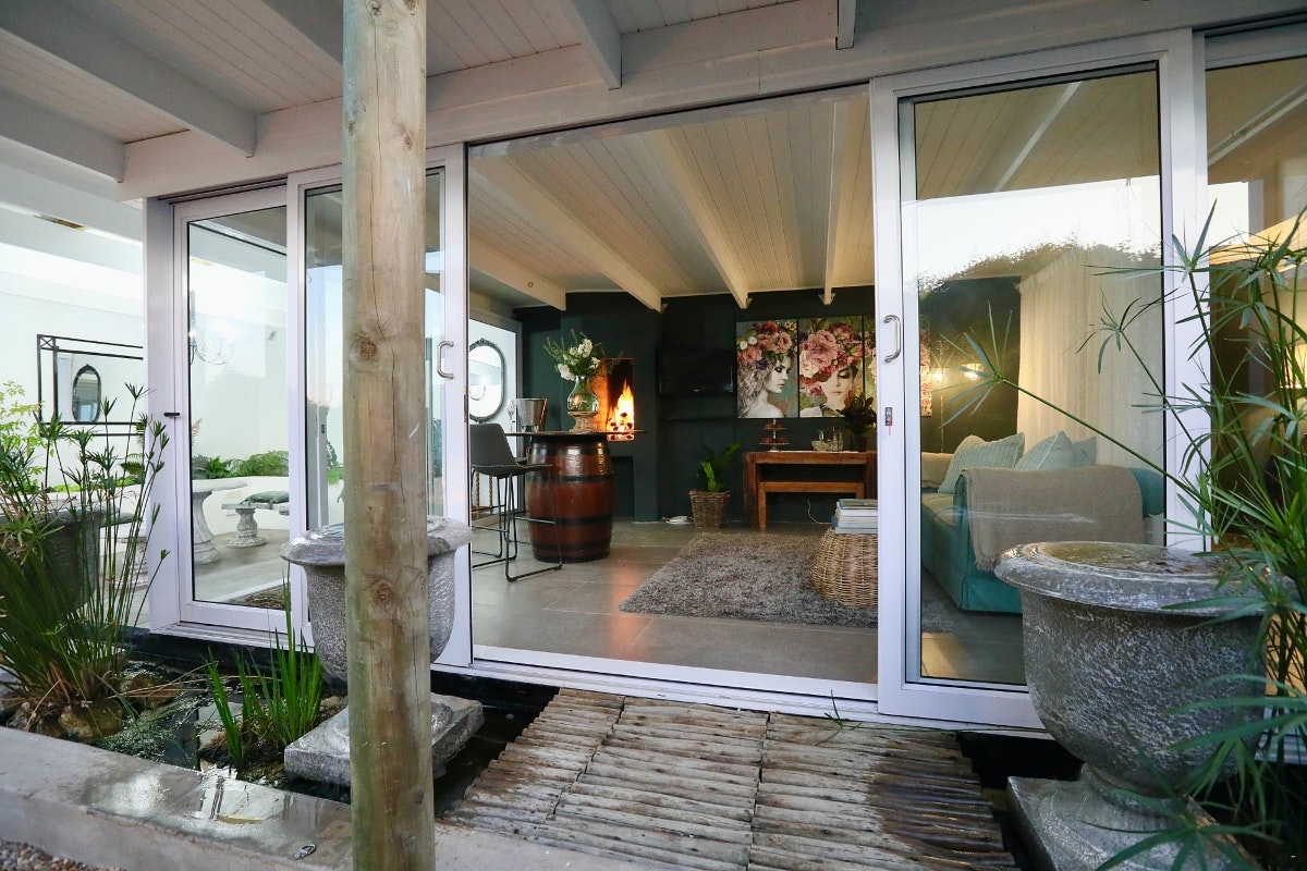 Elke kothuis spog met 'n privaat houtvuurwarmbad op die tuinstoep. Dié luukse kothuis bied slaapplek aan 2 volwassenes en het 'n dubbelbed en 'n en suite-badkamer met 'n groot instapstort. Die sitarea het 'n kaggel en 'n platskerm-TV met sekere DStv-kanale. Gaste het toegang tot 'n privaat onderdakbraai-area. Die oopplan-kombuis is met 'n mikrogolfoond, yskas en gasstoof toegerus. Privaat, veilige parkeerplek is vir 1 voertuig beskikbaar en gaste kan van die gemeenskaplike swembad gebruik maak.