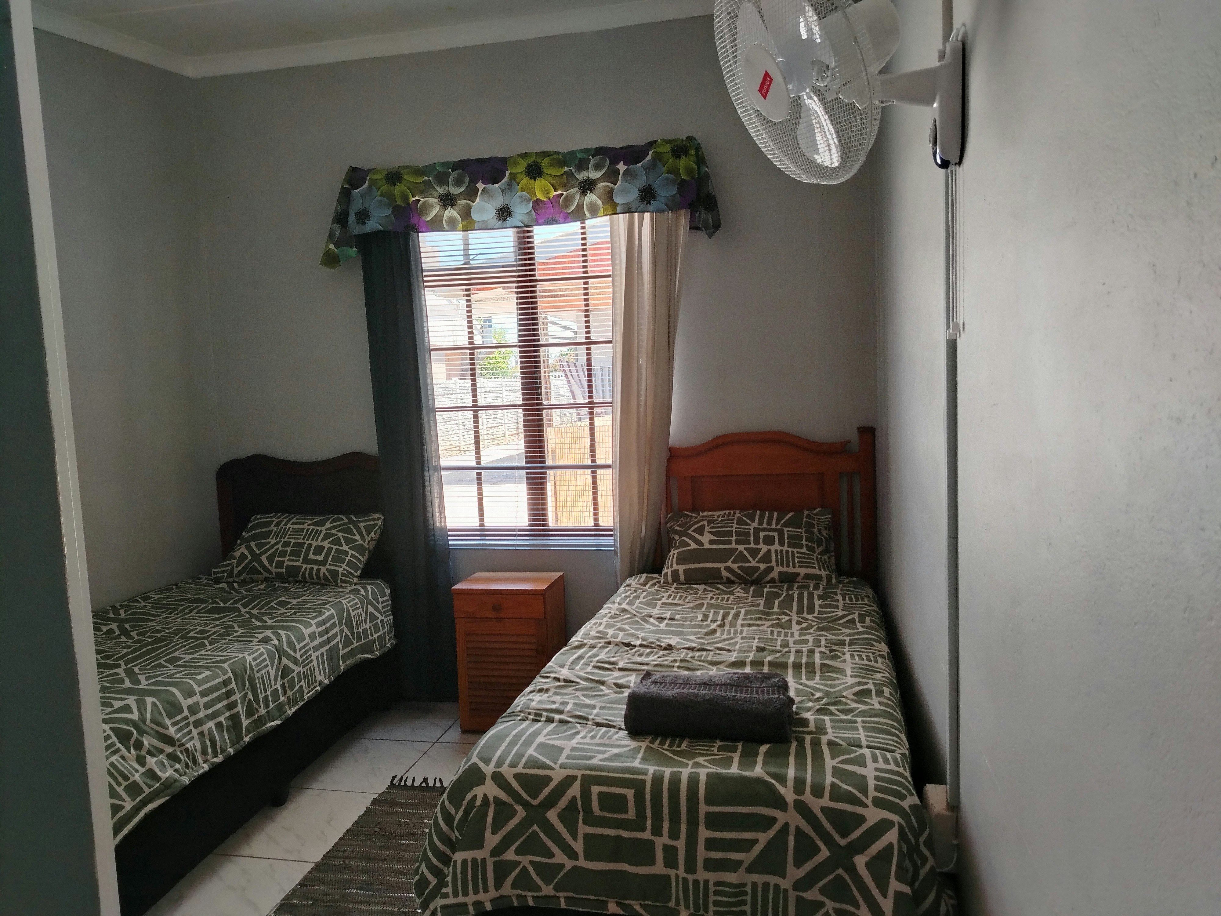 This flatlet can accommodate a total of 5 guests (with a maximum of 4 adults) at a time and comprises 2 bedrooms and a bathroom. The main bedroom is furnished with a double bed, while the second bedroom is furnished with 2 single beds. The living area is also furnished with a single sleeper couch. A shower-over-bath, washbasin and toilet are available in the bathroom. All linen and bath towels are provided.