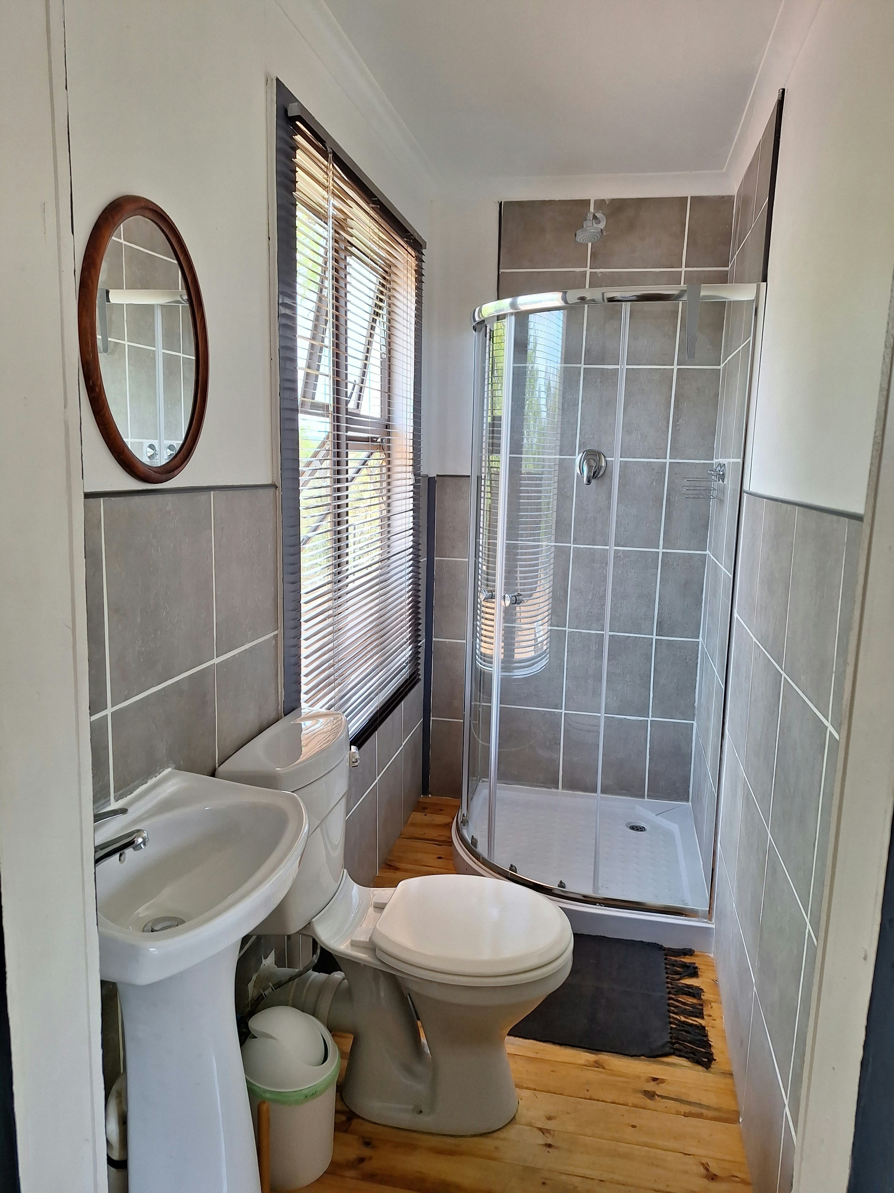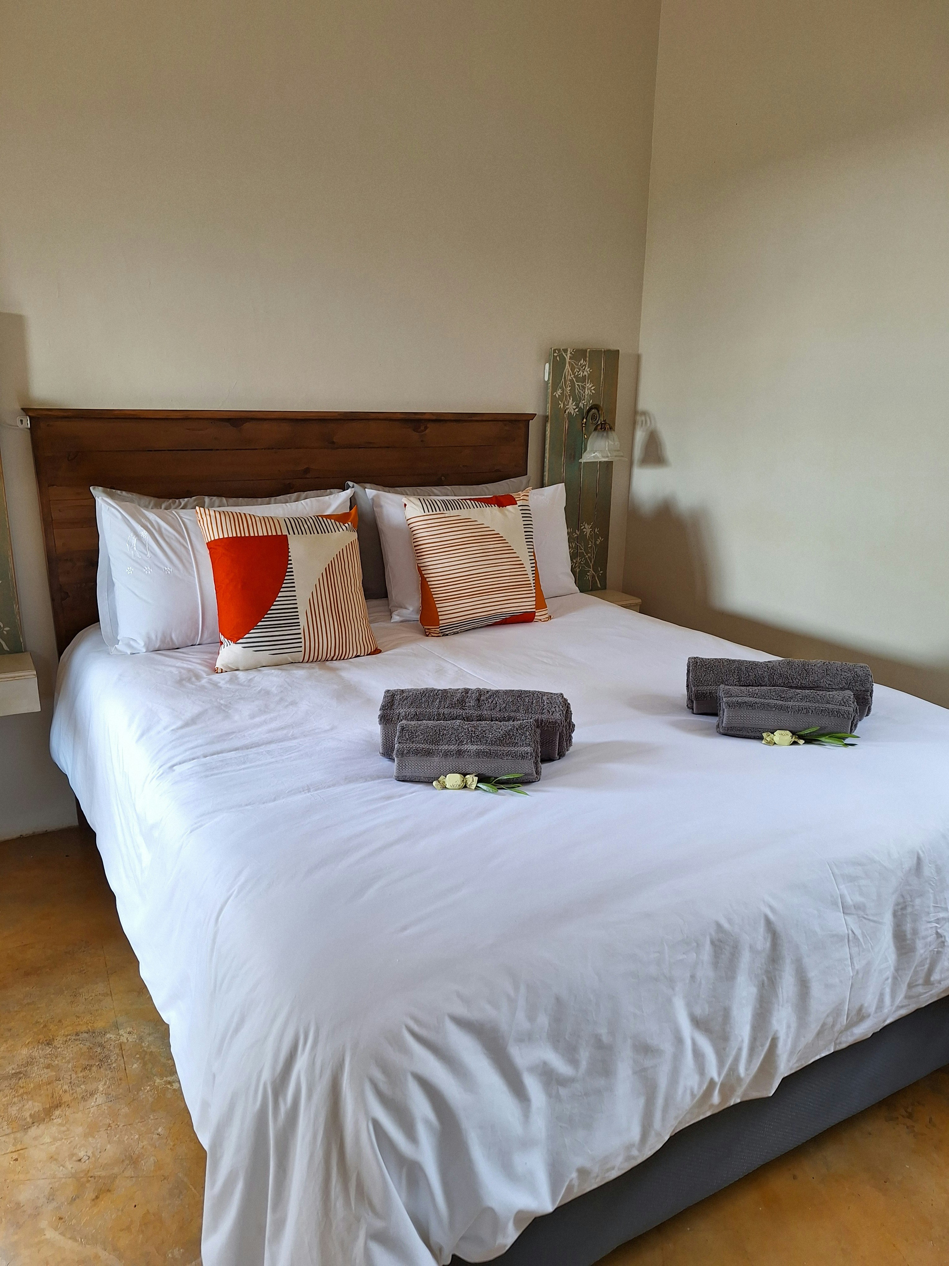 The Haak-en-Steek unit is furnished with a queen-size bed and the en-suite bathroom is fitted with a shower, washbasin, and toilet.
