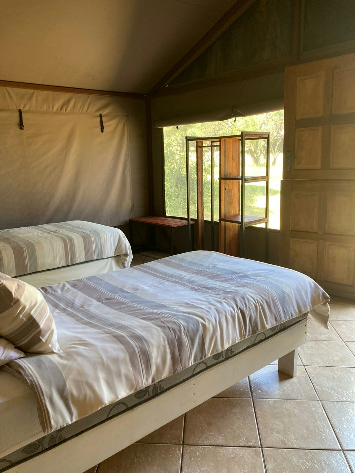 All 3 structured tents feature an open-plan design with a double bed as well as 2 single beds. They also have an en-suite bathroom fitted with a shower. Please note that these tents have no kitchen or coffee-making facilities but there are braai facilities outside. Guests are required to bring their own catering equipment and facilities.