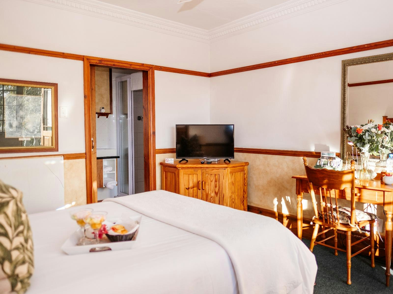 'n Engelse ontbyt word in die eetkamer bedien. Gaste kan ontspan onder die skaduryke bome of in die pragtige, gemaklike sitkamer met verskeie geriewe byderhand, soos 'n TV, drankies en peuselhappies. Reëlings kan getref word vir die gebruik van ons konferensiesentrum, hetsy vir besigheid- of partytjie-vereistes.