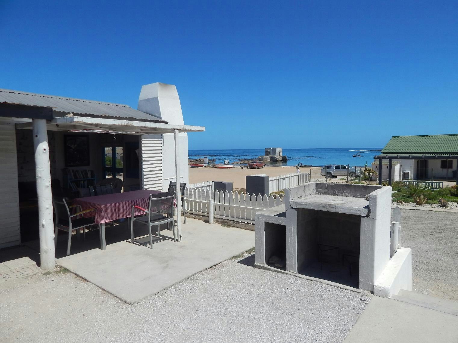 Baai se Bek unit can accommodate up to 6 people in 3 bedrooms and has 1 family bathroom. The main bedroom has a double bed. The second and third bedrooms have 2 single beds each. Each bedroom is fitted with a shower and toilet, and the bathroom have a door that opens up directly onto the courtyard which has a braai area. The separate kitchen is fully equipped and features a stove, oven, fridge-freezer, induction plate and microwave. The cosy open plan living area offers comfortable seating, a TV with a full selection of DStv channels and a built-in braai. This unit also opens up onto the open courtyard and offers beautiful views of the ocean.
