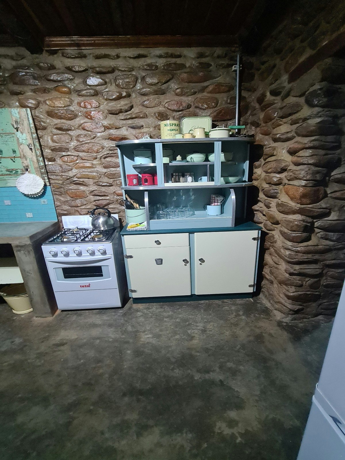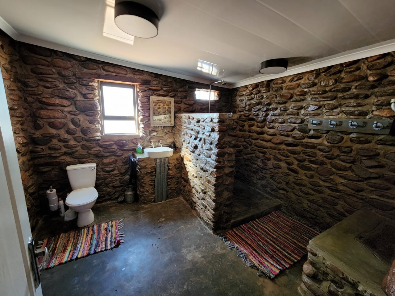 The living area opens onto a patio with outdoor seating and a boma braai with a view of the Langberg. This property has solar power and a donkey for hot water, as well as on-site parking. The Damhuis is located close to the Witsand Nature Reserve.