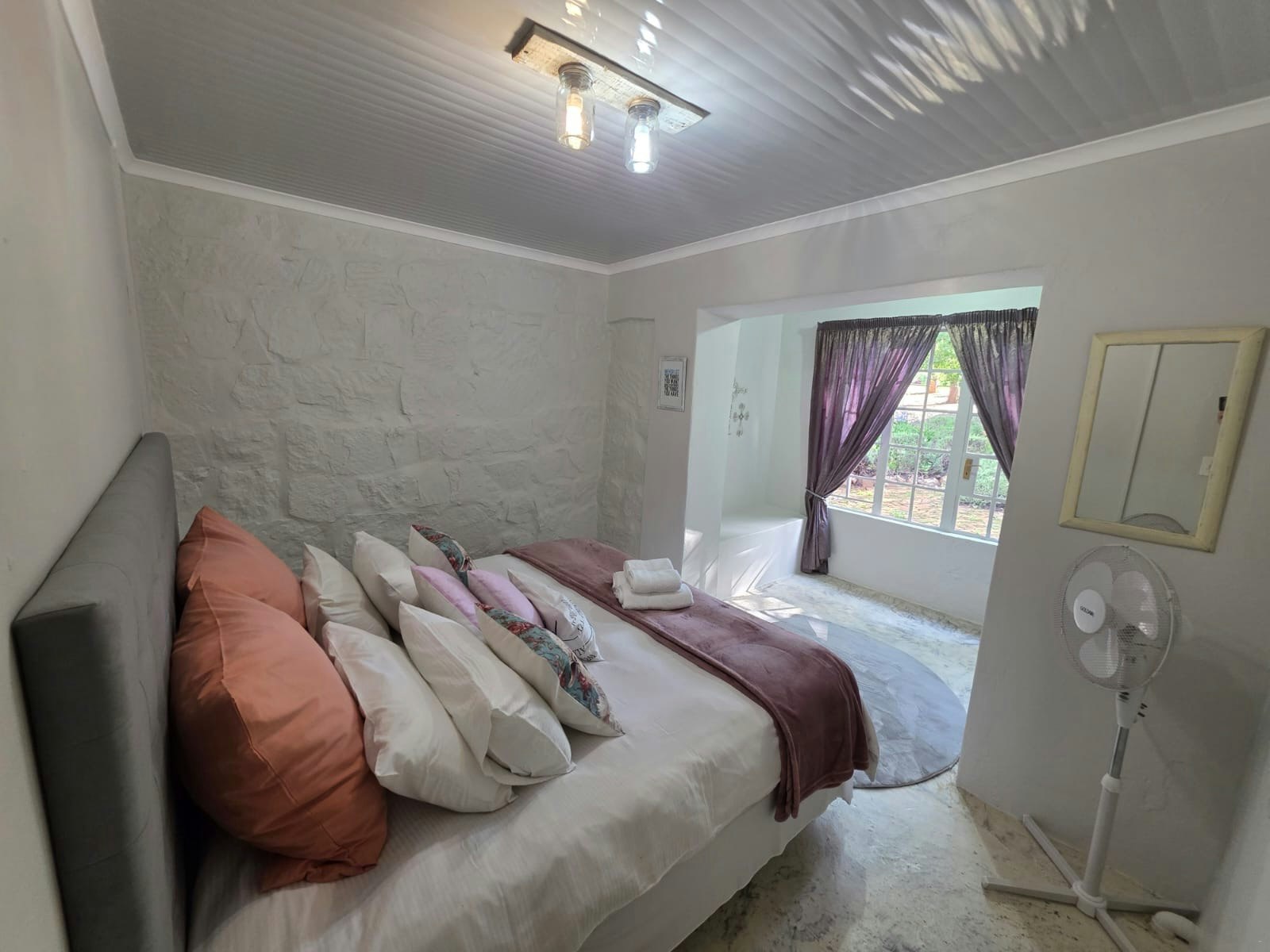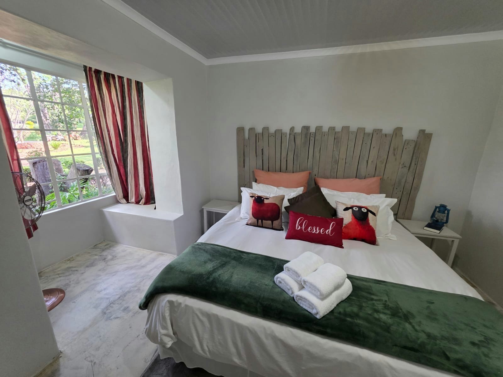 Die verblyf word aangebied in 12 pragtig gerestoureerde plaasstyl-slaapkamers. Elkeen is uniek opgemaak met verfrissende kleure en handgemaakte kunswerke. Al die kamers het 'n en suite-badkamer met 'n stort sowel as skoon linne en handdoeke. Gaste hoef slegs hul eie seep, sjampoe en toiletware saam te bring. Daar is 'n gemeenskaplike kombuisarea met 'n yskas en al die nodige geriewe. Die gastehuis is selfsorg en bied skoonmaakdienste teen 'n ekstra koste.