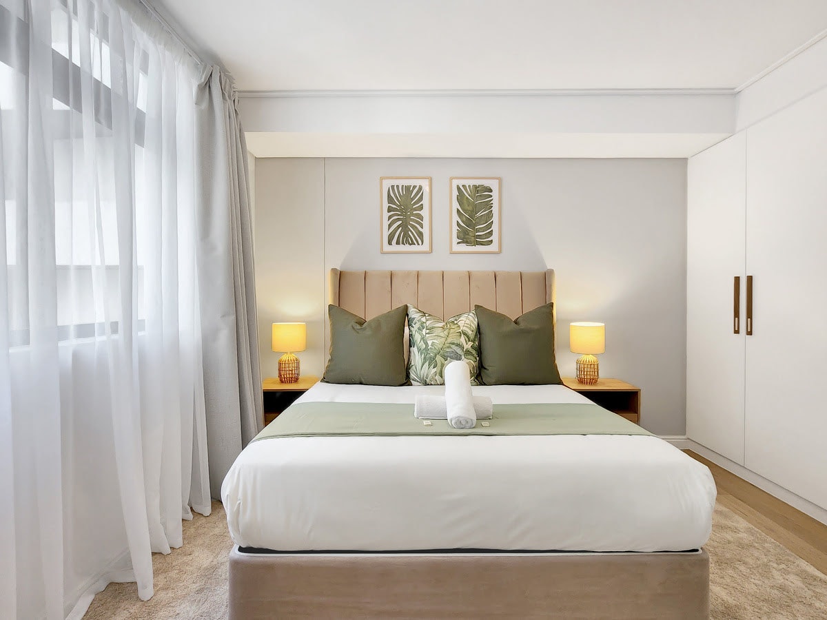 Die woonstel beskik oor 2 slaapkamers en 2 badkamers. Slaapkamer 1 is gemeubileer met 'n koningingrootte-bed, en Slaapkamer 2 is gemeubileer met 'n koningingrootte-bed. Beide badkamers is toegerus met 'n stort, bad, toilet en wasbak.
