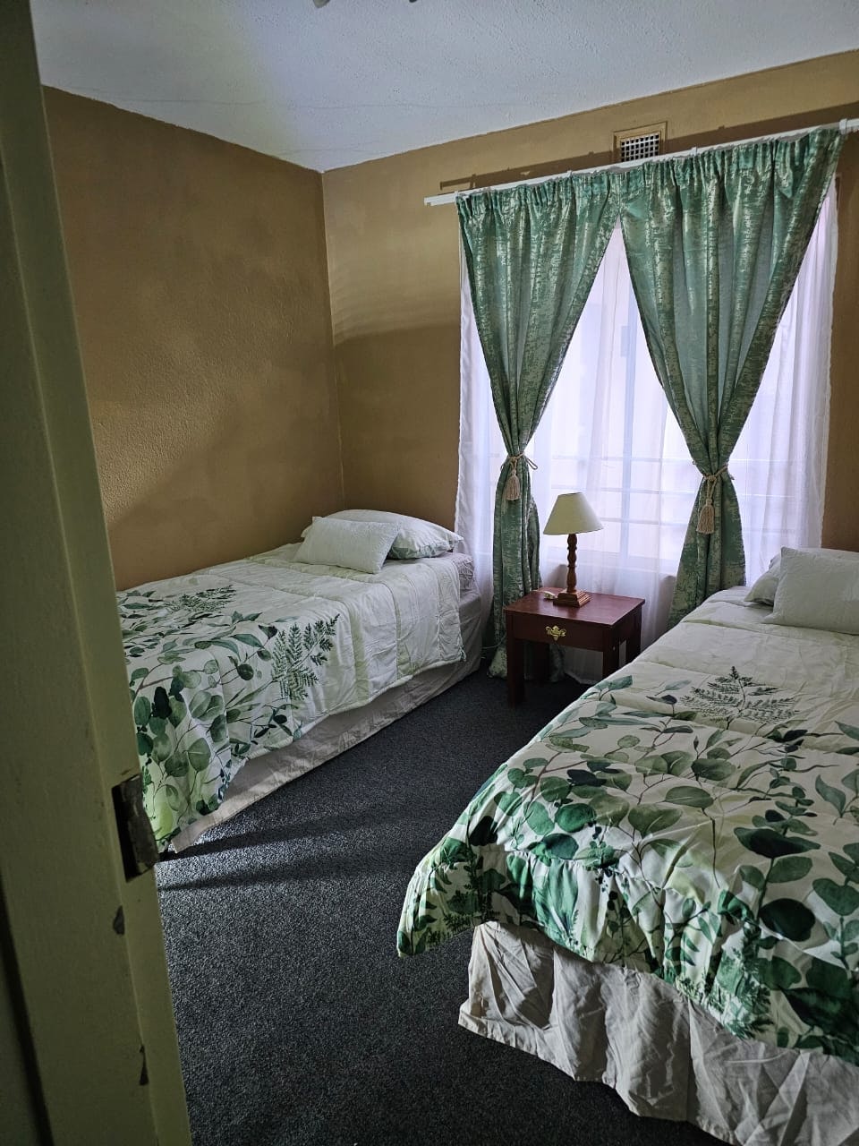 This unit can accommodate up to 6 guests at a time and comprises 3 bedrooms and 2 bathrooms. The first bedroom is comfortably furnished with a queen-size bed and features an en-suite bathroom fitted with a shower-over-bath. The second bedroom contains 2 three-quarter beds, while the third bedroom has 2 single beds. These bedrooms share the use of the second bathroom fitted with a shower. Linen is provided; however, guests are required to bring their own towels.