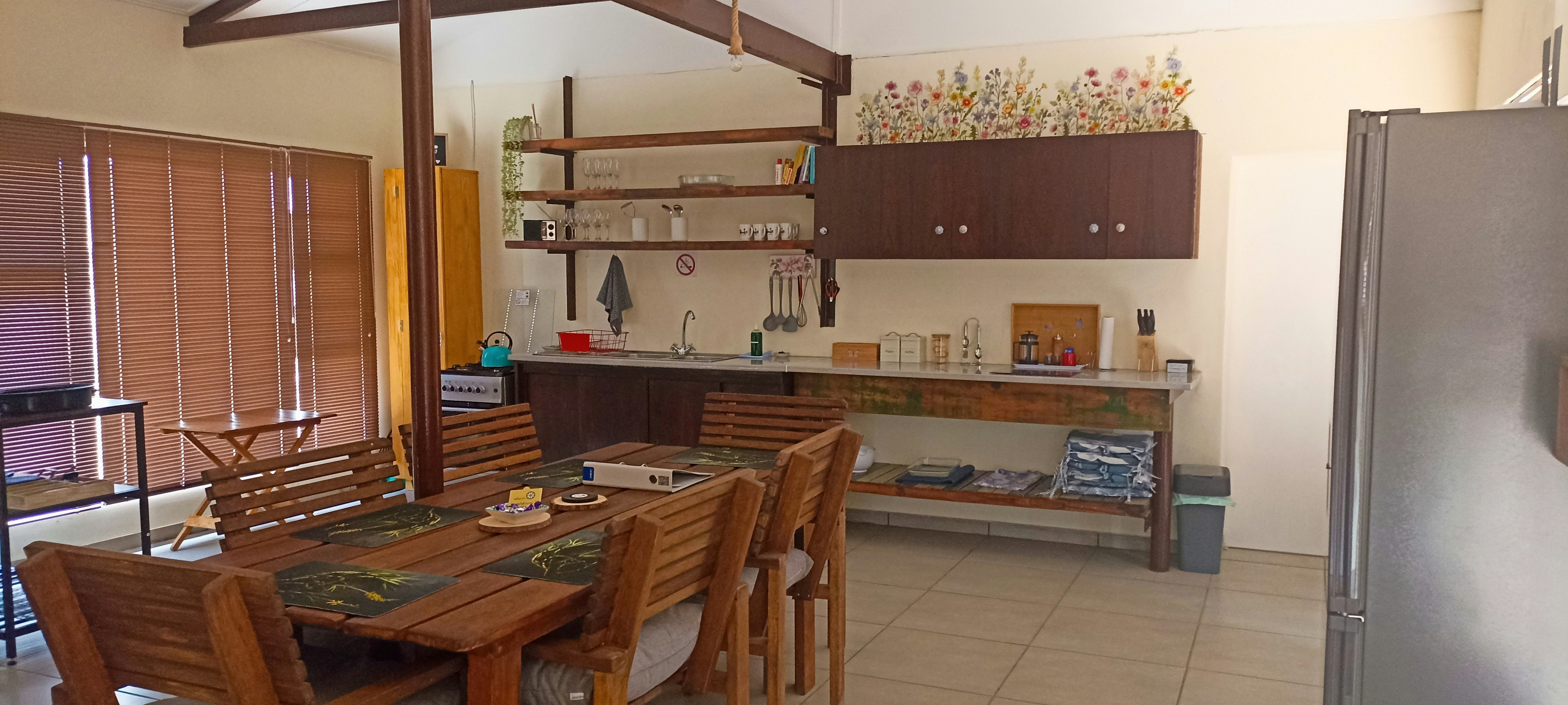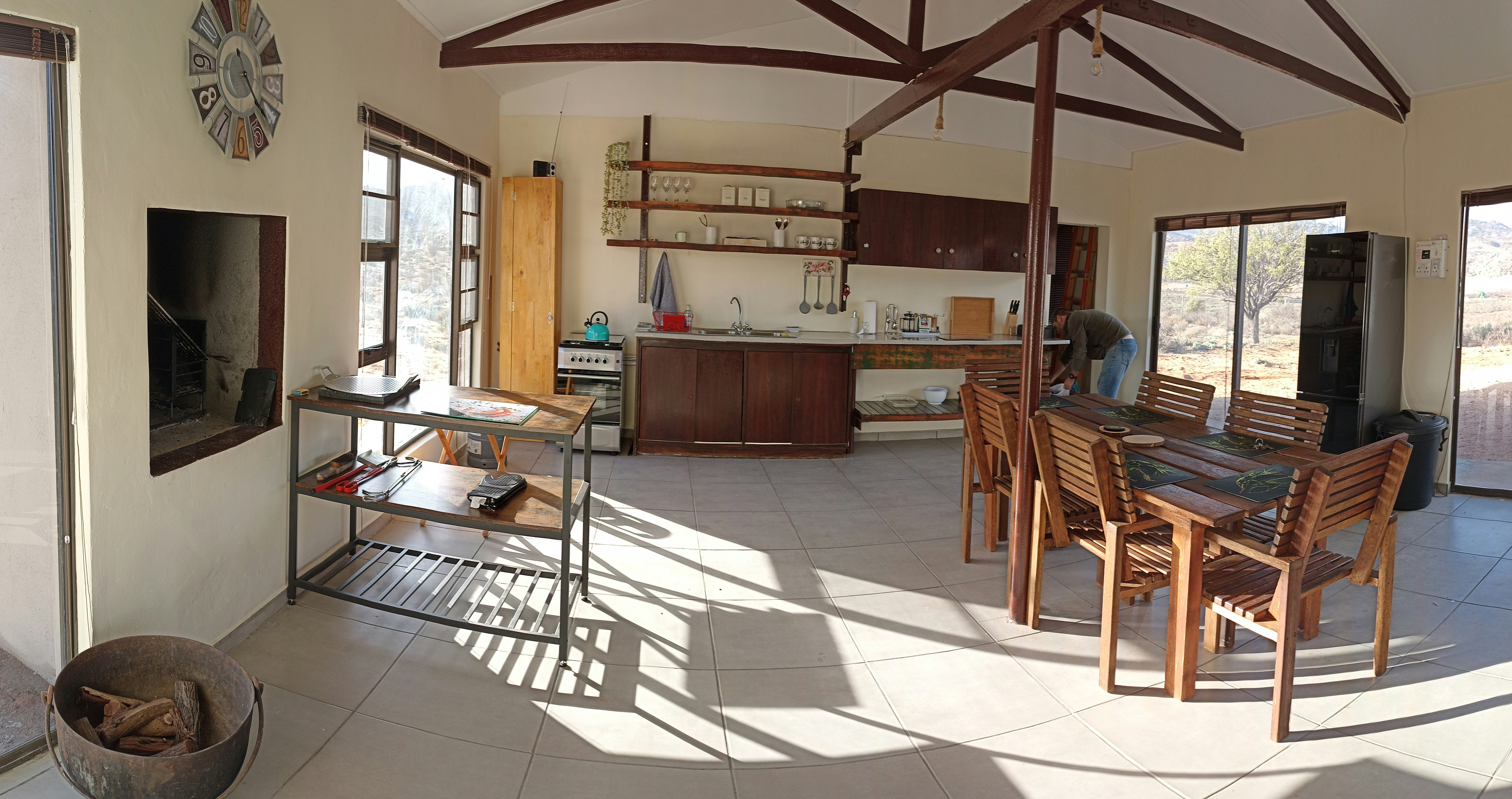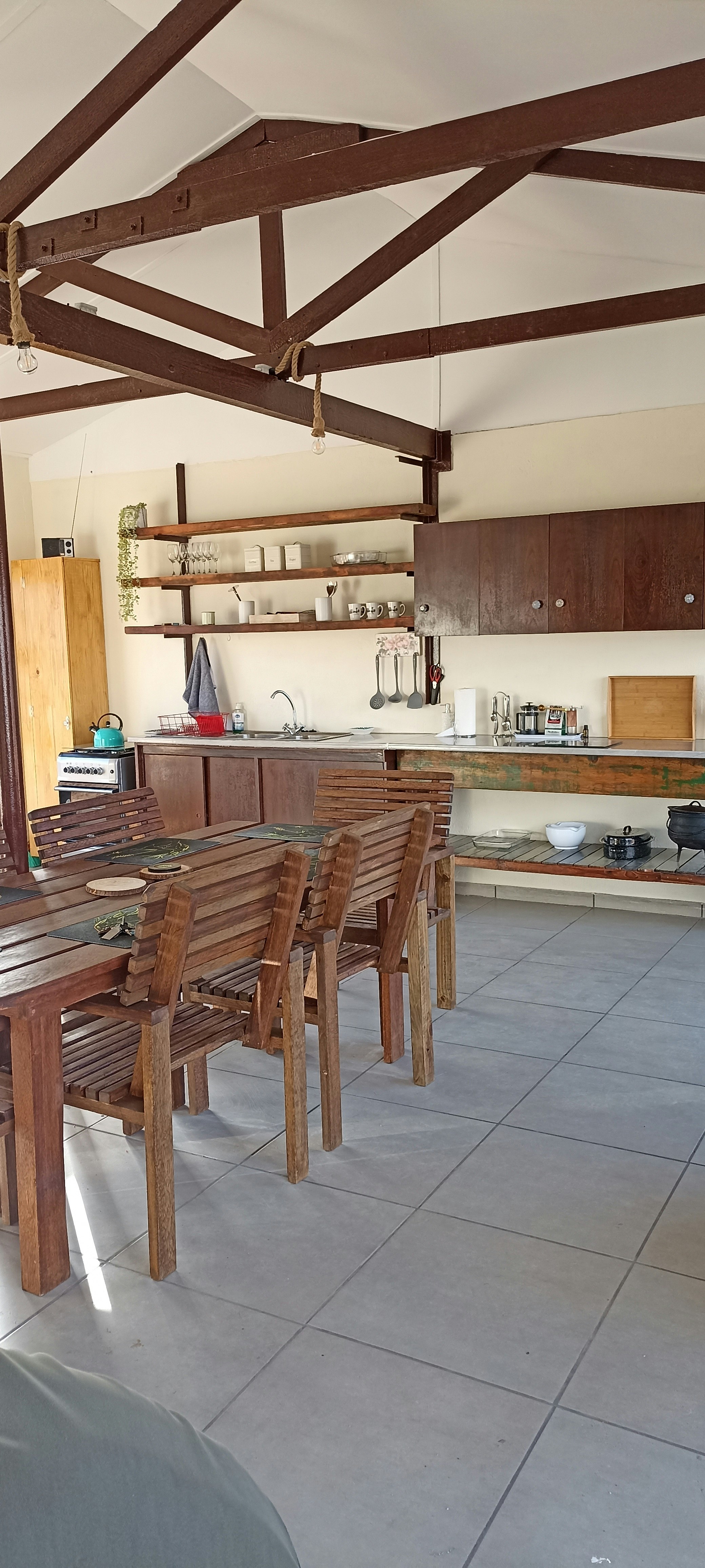 Die oopplan-kombuis is met 'n yskas-vrieskas, gasstoof, oond, basiese eetgerei, breekware en tee- en koffiemaakgeriewe toegerus. Dit sluit ook 'n etenstafel met stoele in. Daar is ook 'n binnebraai en 'n leefarea met 'n enkelbed vir 'n kind.