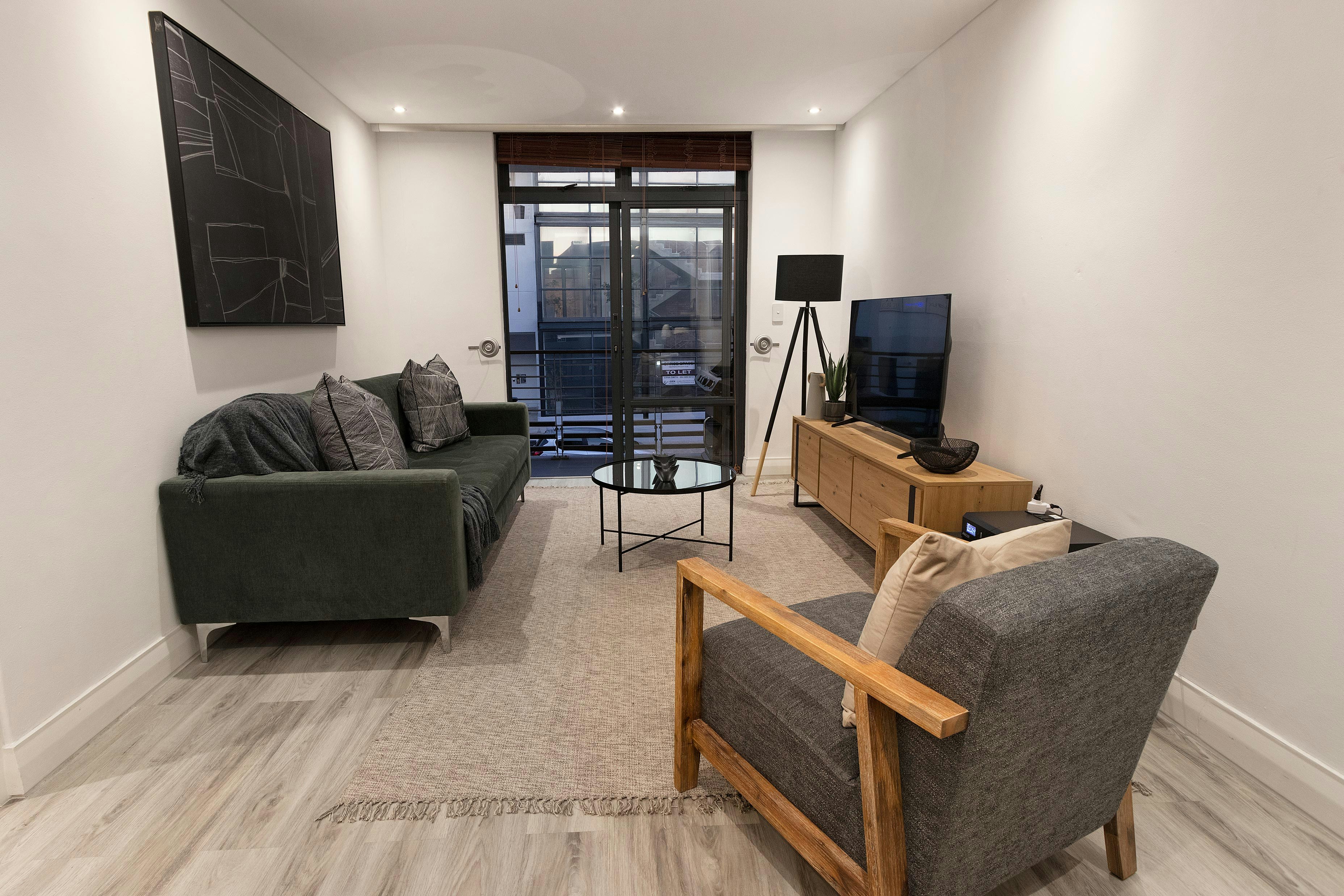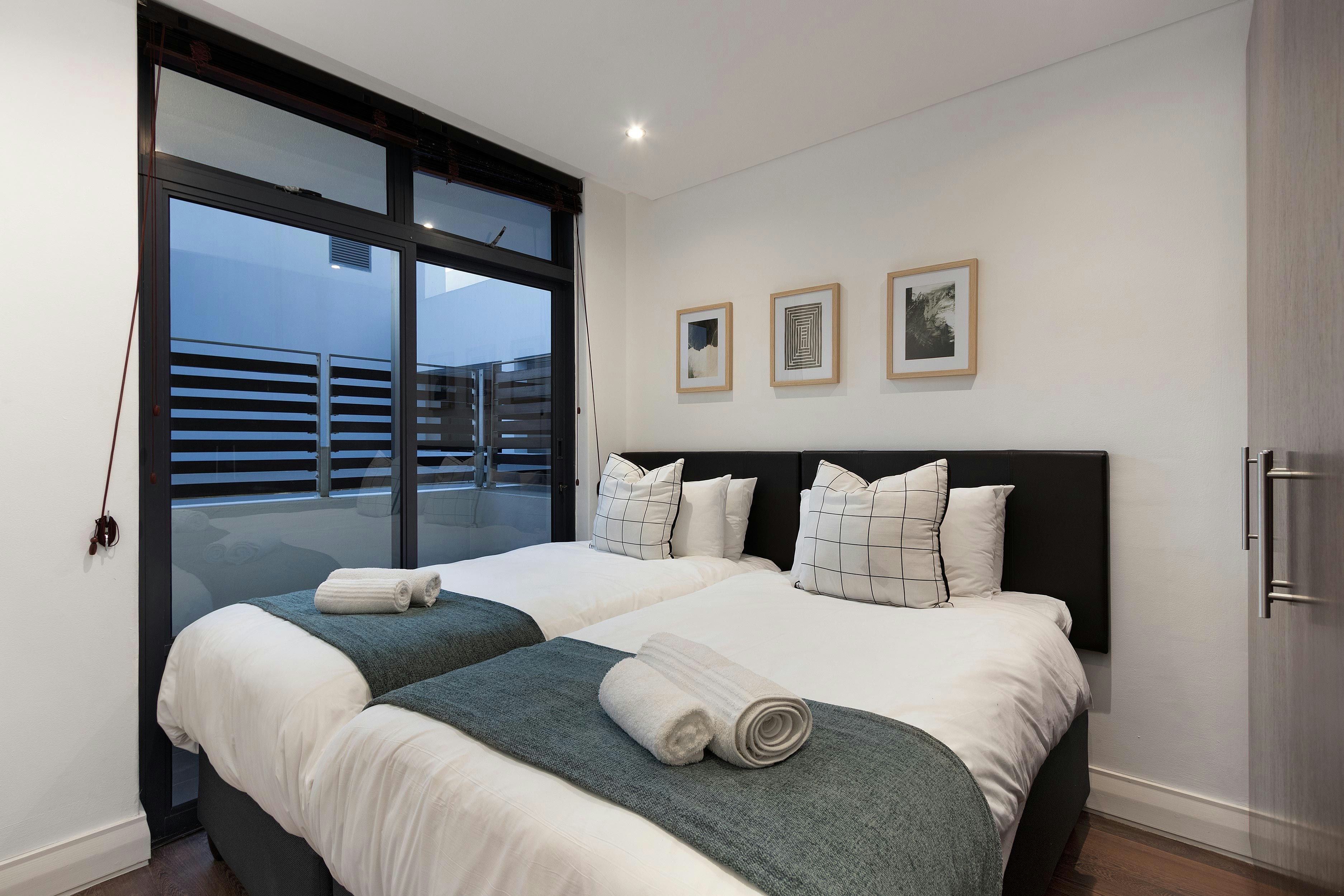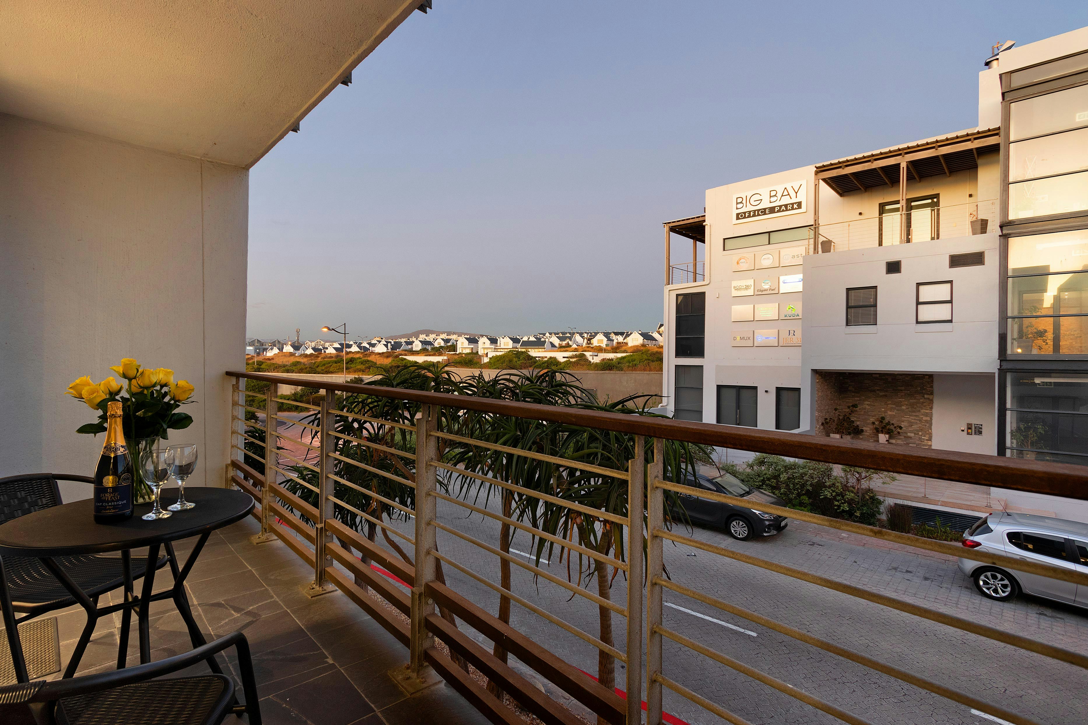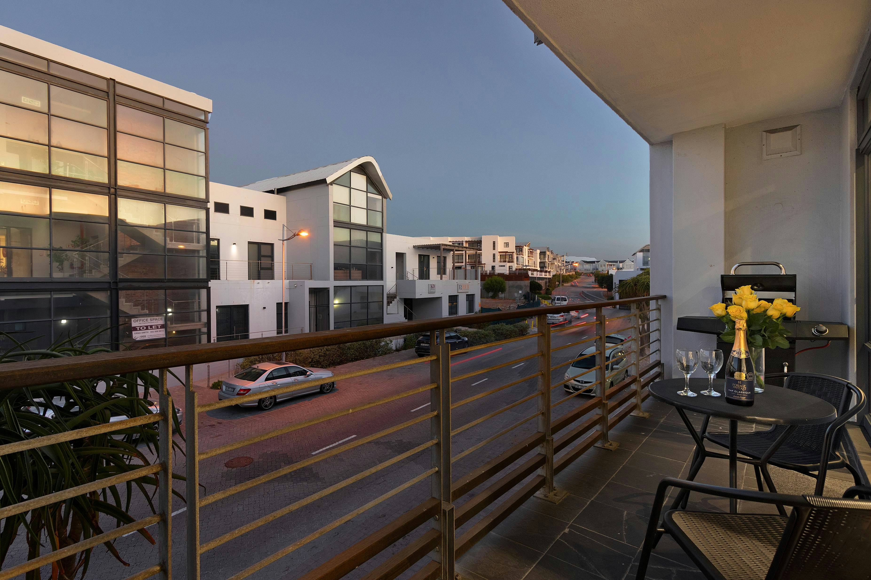Deur die skuifdeure is daar 'n lieflike balkon met buitesitplek wat die ideale plek is vir gaste om saans 'n skemerkelkie te geniet. Die kompleks se ligging is stapafstand van die strand sowel as 'n buiteluggimnasium.