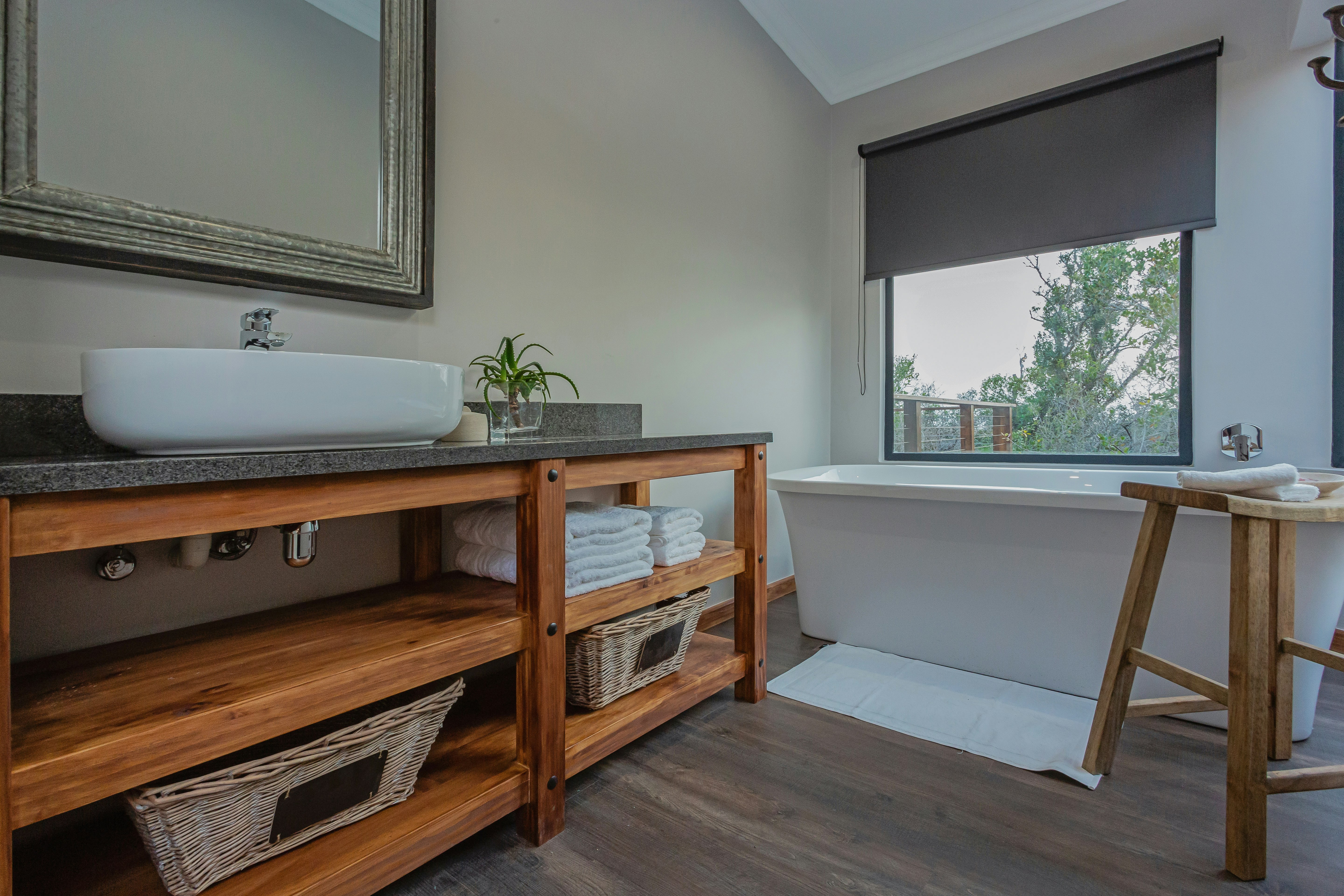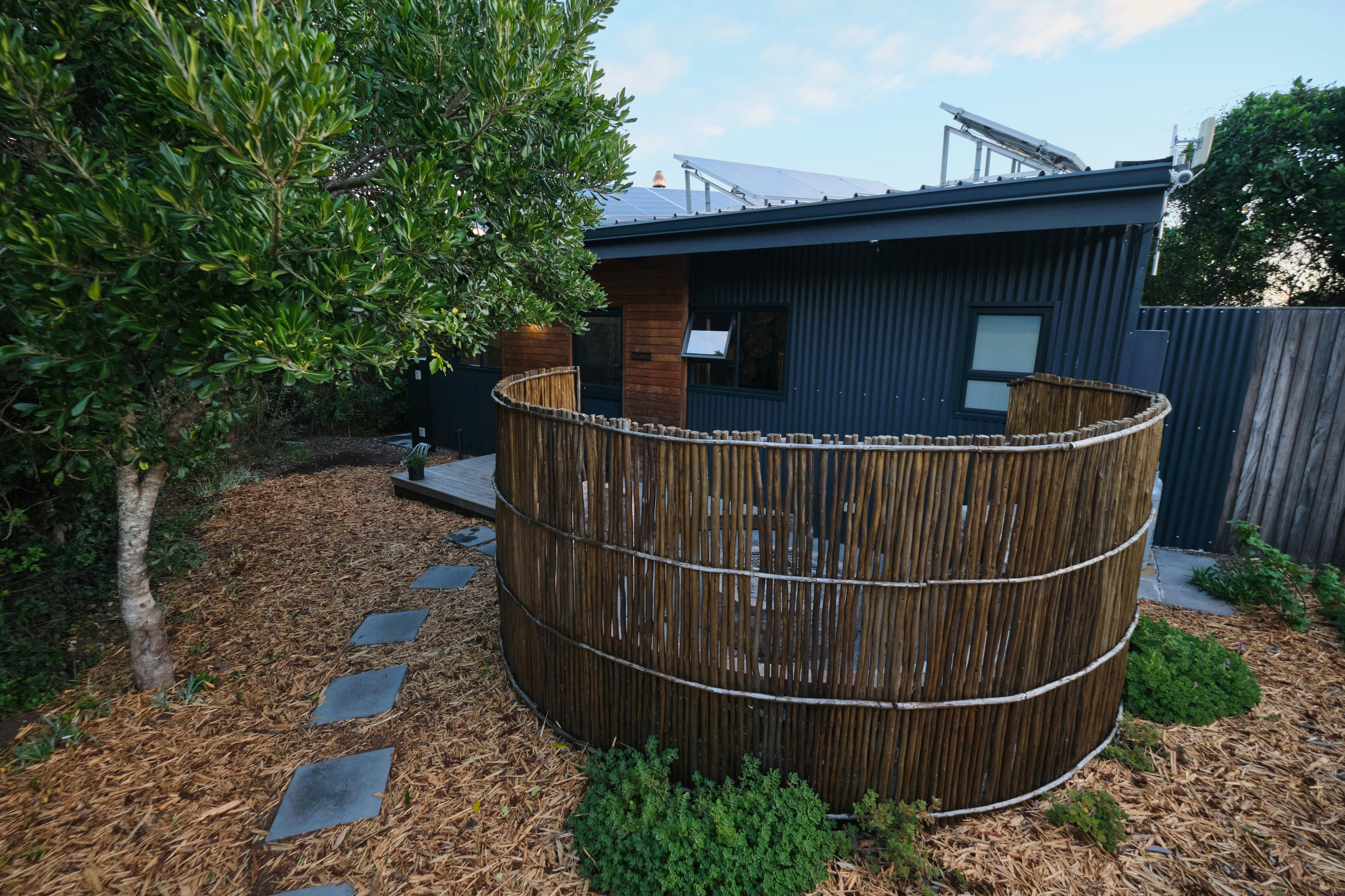 Milkwood is 'n luukse oopplan-kothuis met 'n koninggrootte-bed en 'n en suite-badkamer met 'n bad, toilet, wasbak en 'n privaat buite-stort. Die kombuis is met 'n yskas, stoof, oond, mikrogolfoond, ketel, eetgerei en breekware toegerus. Daar is slaapplek vir 'n ekstra volwassene of kind op 'n slaapbank in die sitarea. Die leefarea het 'n TV met Netflix en buite is daar 'n dek met sonstoele en stoepmeubels. Dié kothuis het ook sy eie houtvuurwarmbad en 'n wonderlike uitsig.