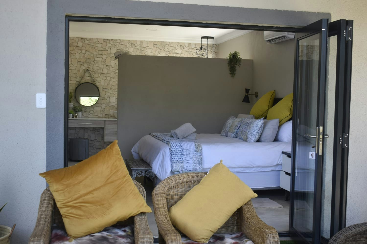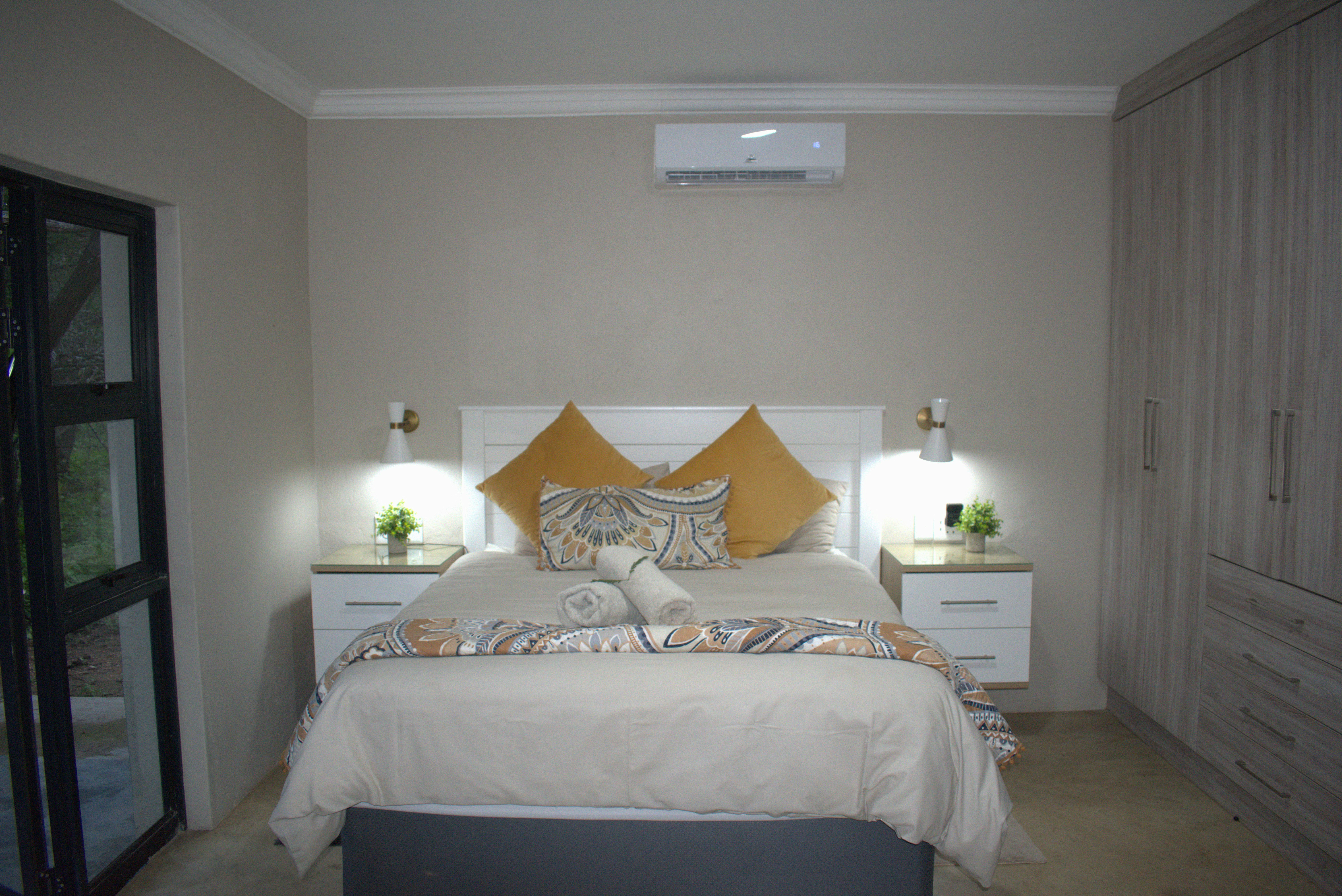 Die huis bied slaapplek aan 8 gaste en beskik oor 4 slaapkamers en 4 badkamers. Die eerste en tweede slaapkamer het elk 'n koninggrootte-bed en 'n en suite-badkmaer met 'n bad, buitestort, wasbak en toilet. Die derde en vierde slaapkamer het elk 'n koningingrootte-bed en 'n en suite-badkamer met 'n stort, wasbak en toilet. Die eerste, tweede en derde slaapkamer het elk toegang tot 'n buitestoep. Al die kamers het lugversorging.