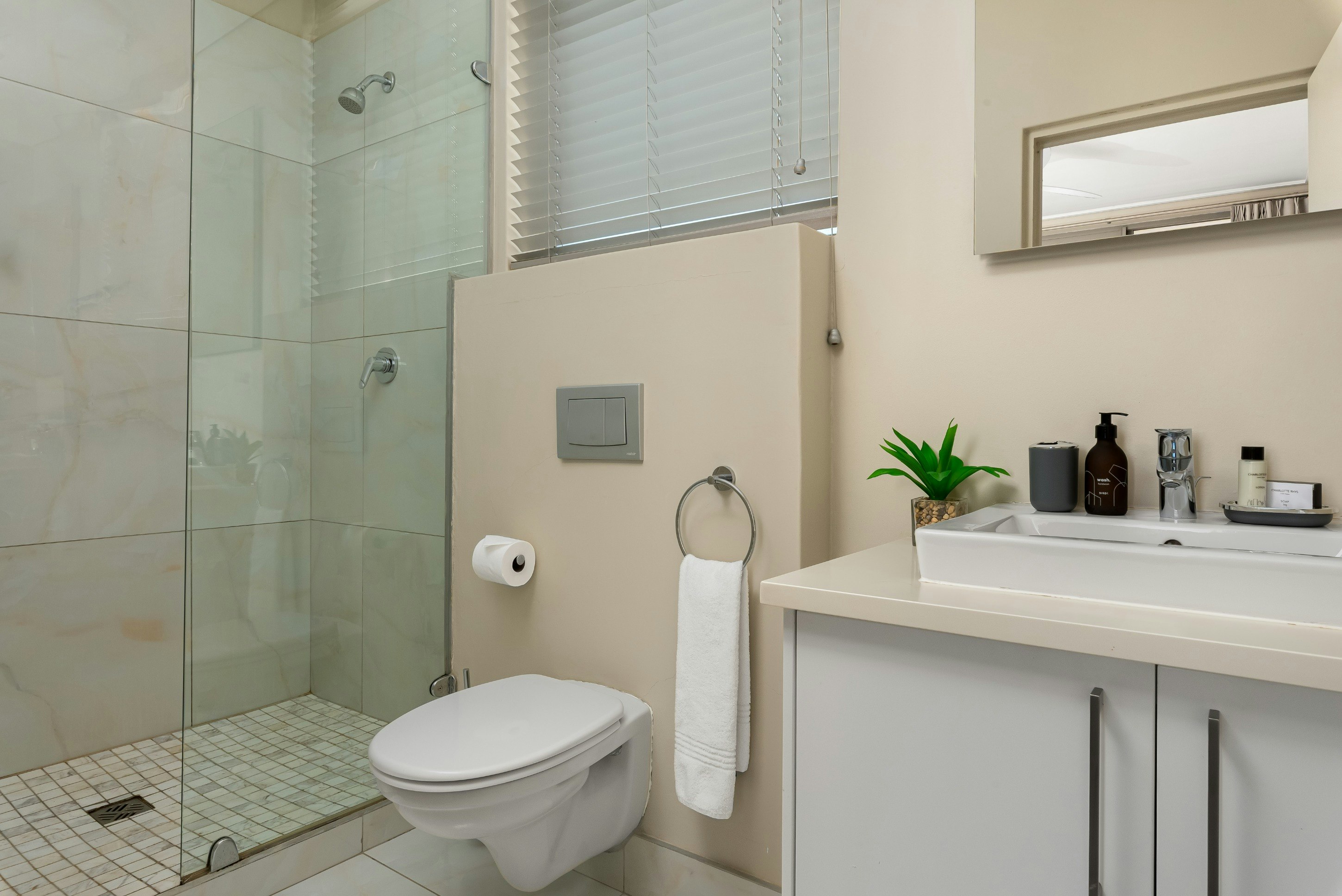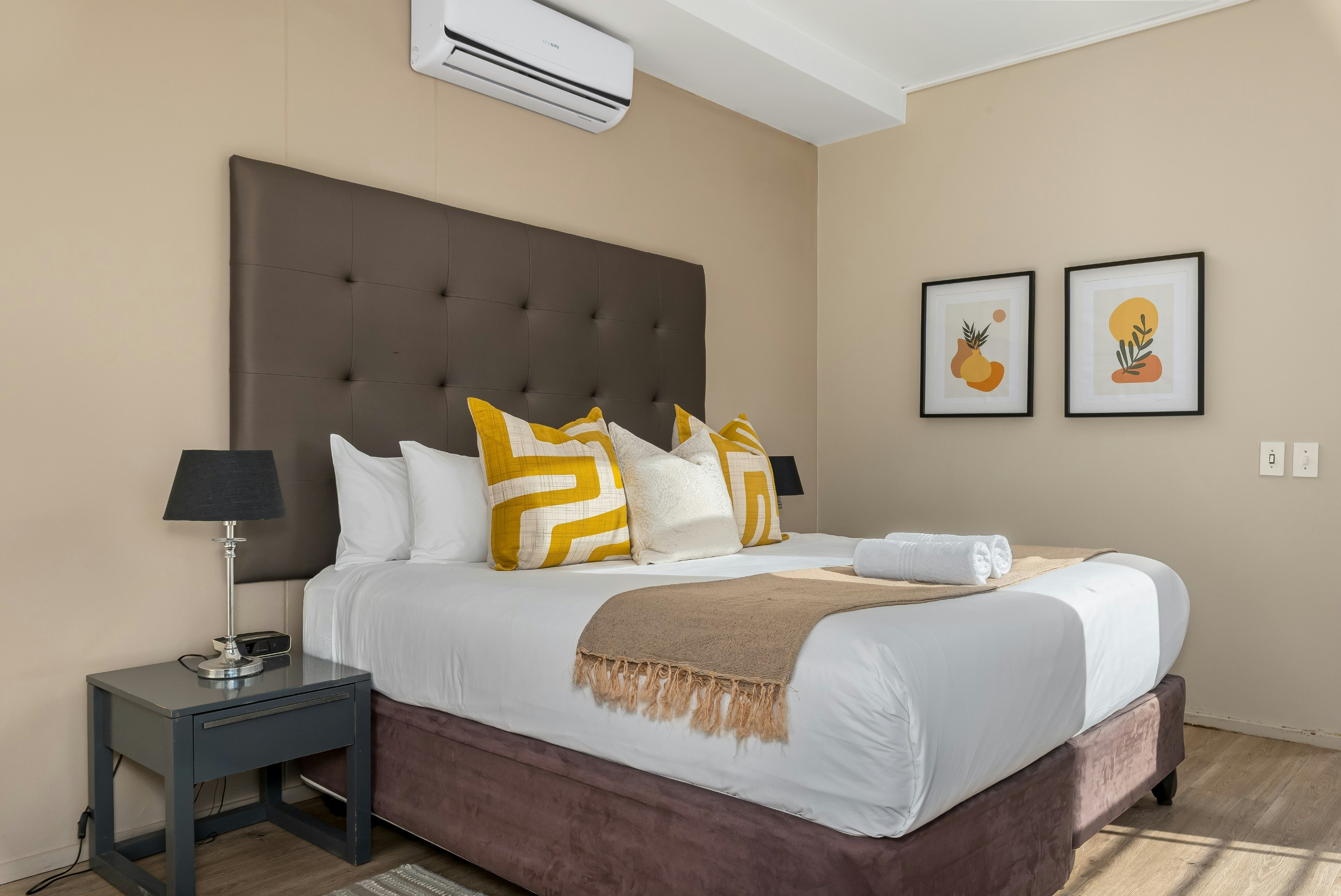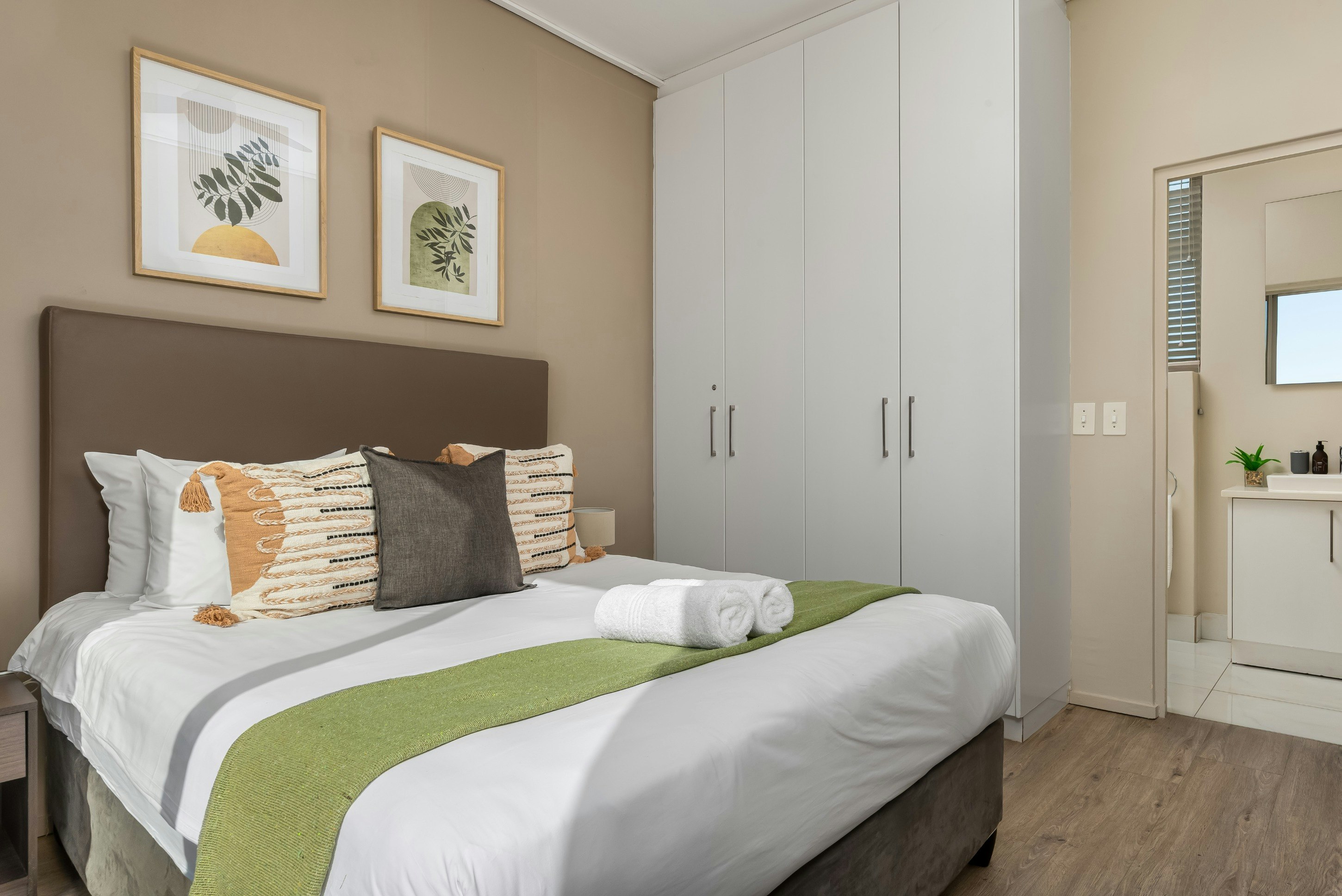 Hierdie woonstel bied slaapplek vir 4 gaste en bestaan uit 2 slaapkamers en 2 badkamers. Die eerste slaapkamer is gemeubileer met 'n koninggrootte bed en het 'n en suite-badkamer met 'n stort oor die bad. Die tweede slaapkamer is gemeubileer met 'n koningingrootte bed en die en suite-badkamer is toegerus met 'n stort. Linne en badhanddoeke word voorsien.