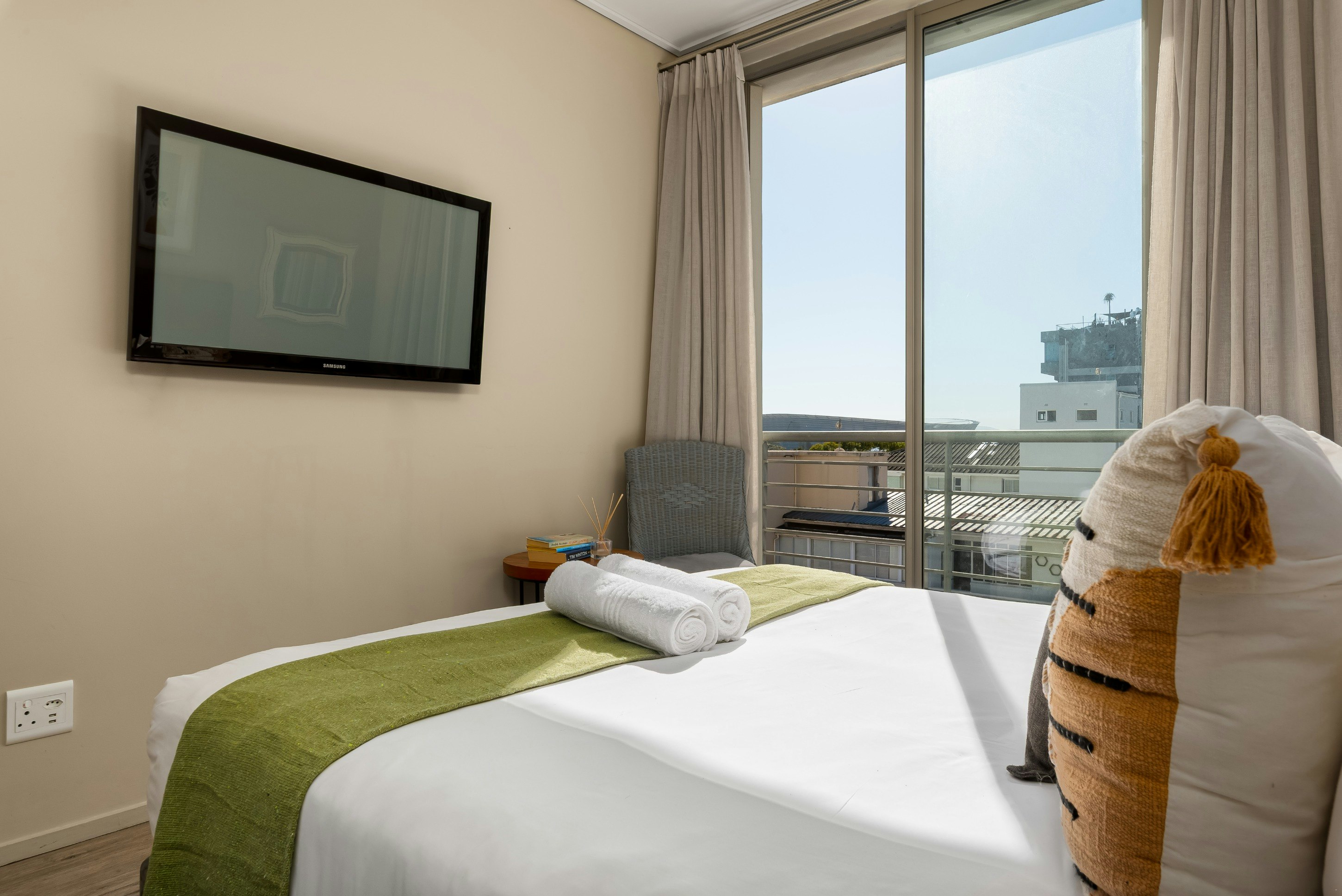 Gaste kan 'n Juliet-balkon met uitsigte oor die omgewing geniet en die gebou bied buiteruimtes waar gaste vars lug en pragtige uitsigte kan geniet, insluitend 'n gemeenskaplike dak swembad met braaigeriewe. Plaaslike geriewe soos winkels en restaurante is naby. Besienswaardighede in die omgewing sluit in Green Point Park, die DHL-stadion, V&A Waterfront en die Kaapstadse middestad.