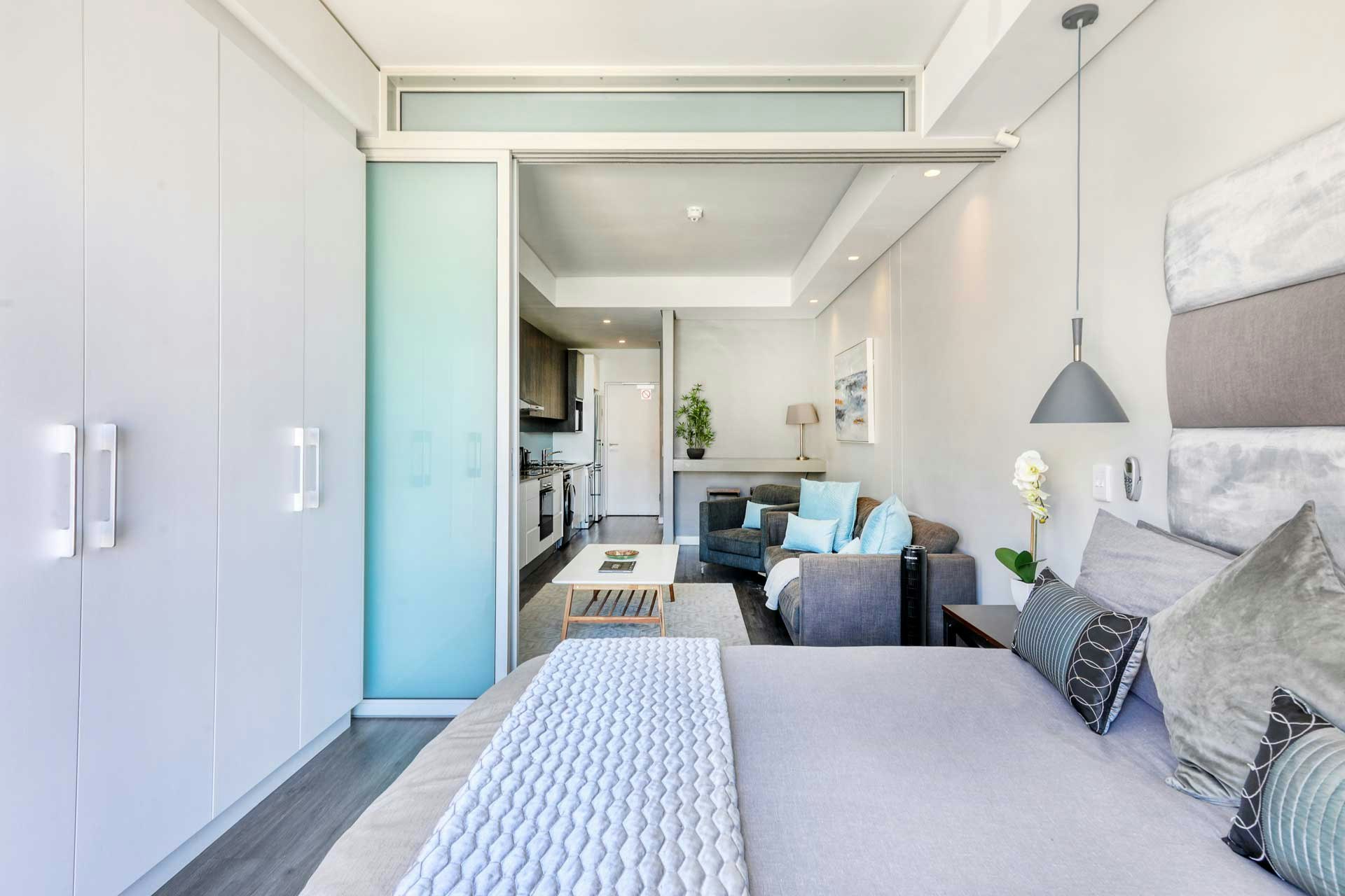 Die woonstel bestaan uit 'n oopplan-uitleg wat bestaan uit 'n slaapkamer met 'n koningingrootte-bed wat 2 gaste kan akkommodeer. Deur die glasskuifdeur toe te maak, kan die leefarea en slaapkamer geskei word. Die badkamer is toegerus met 'n stort, toilet en wasbak.