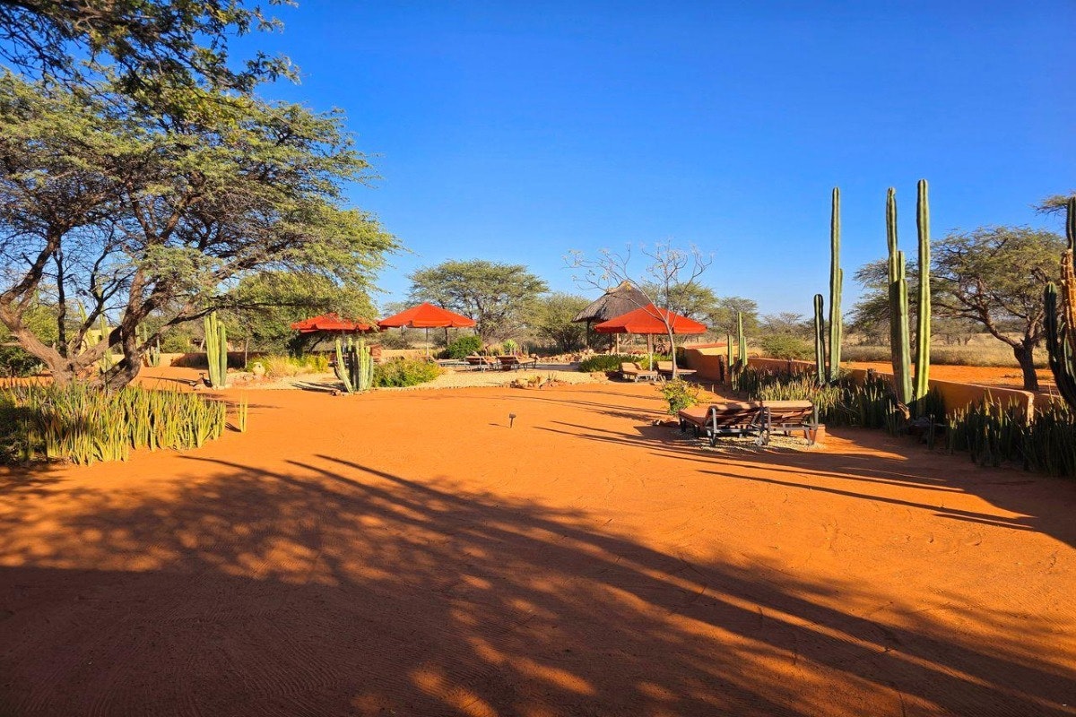 For quiet recreation, the property offers walking trails through the savannah, a stargazing deck perfect for admiring Namibia’s clear night skies, and peaceful nooks designed for rest and reflection. With its blend of artistry and tranquillity, Eningu Clayhouse Lodge offers a memorable stay in the heart of the Kalahari.