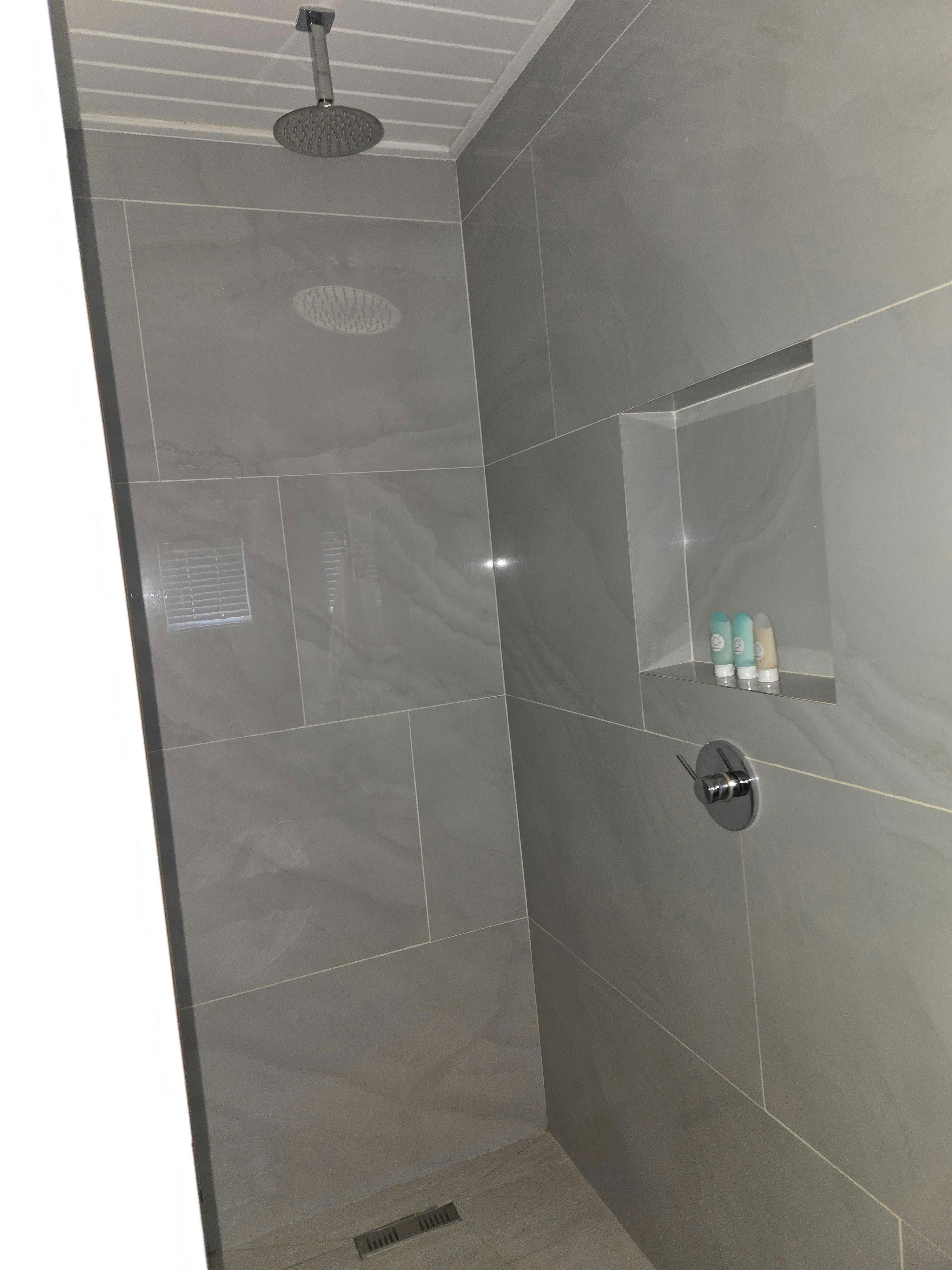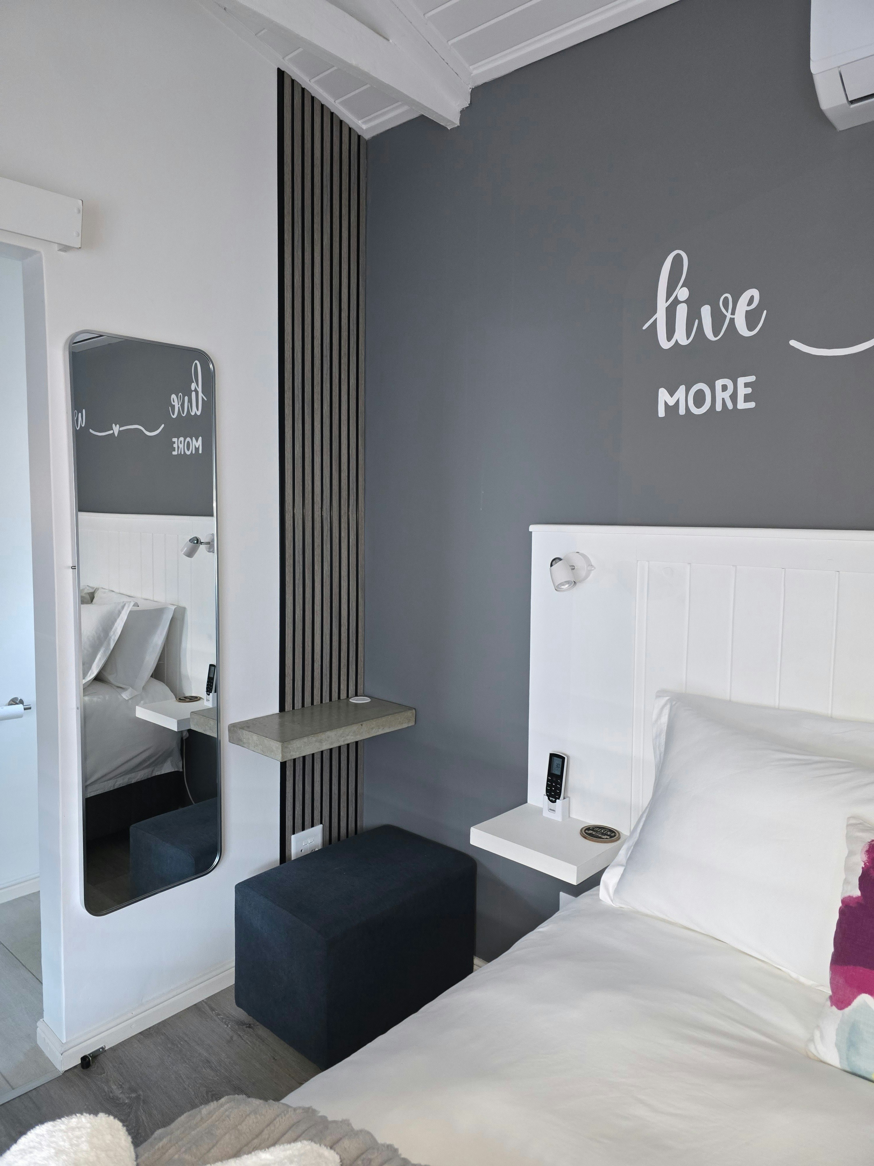 Die slaapkamer is gemeubileer met 'n dubbelbed, en linne word voorsien. Daar is ruim kasruimte, lugversorging en 'n elektriese verwarmer. Die en suite-badkamer het 'n toilet, stort en wasbak met noodsaaklike toiletware.