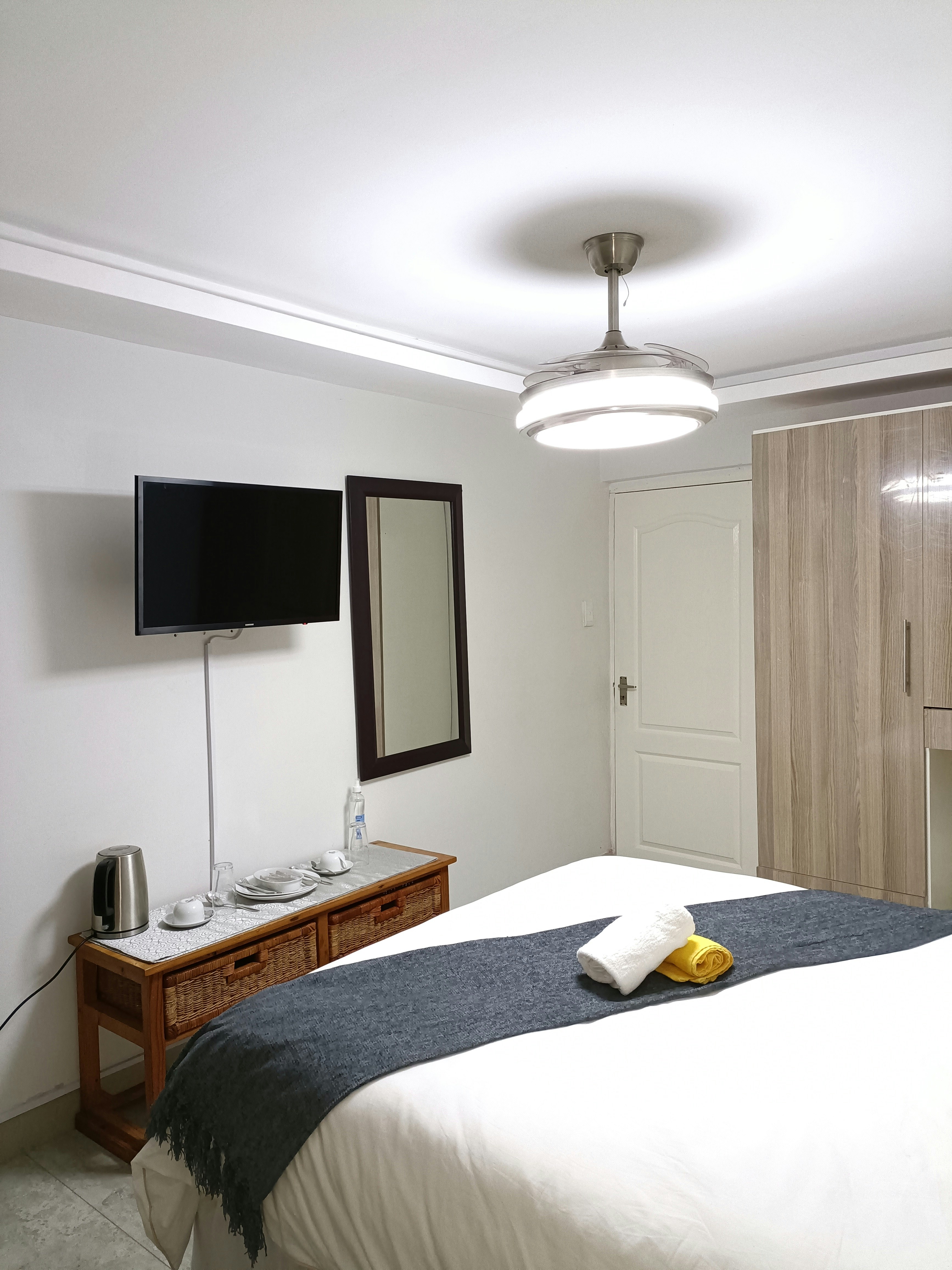 Badseep en handdoeke word voorsien. Daarbenewens is daar ander geriewe in die kamer soos 'n mikrogolfoond, yskassie, slim-TV, gratis WiFi, sowel as tee- en koffiemaakgeriewe.