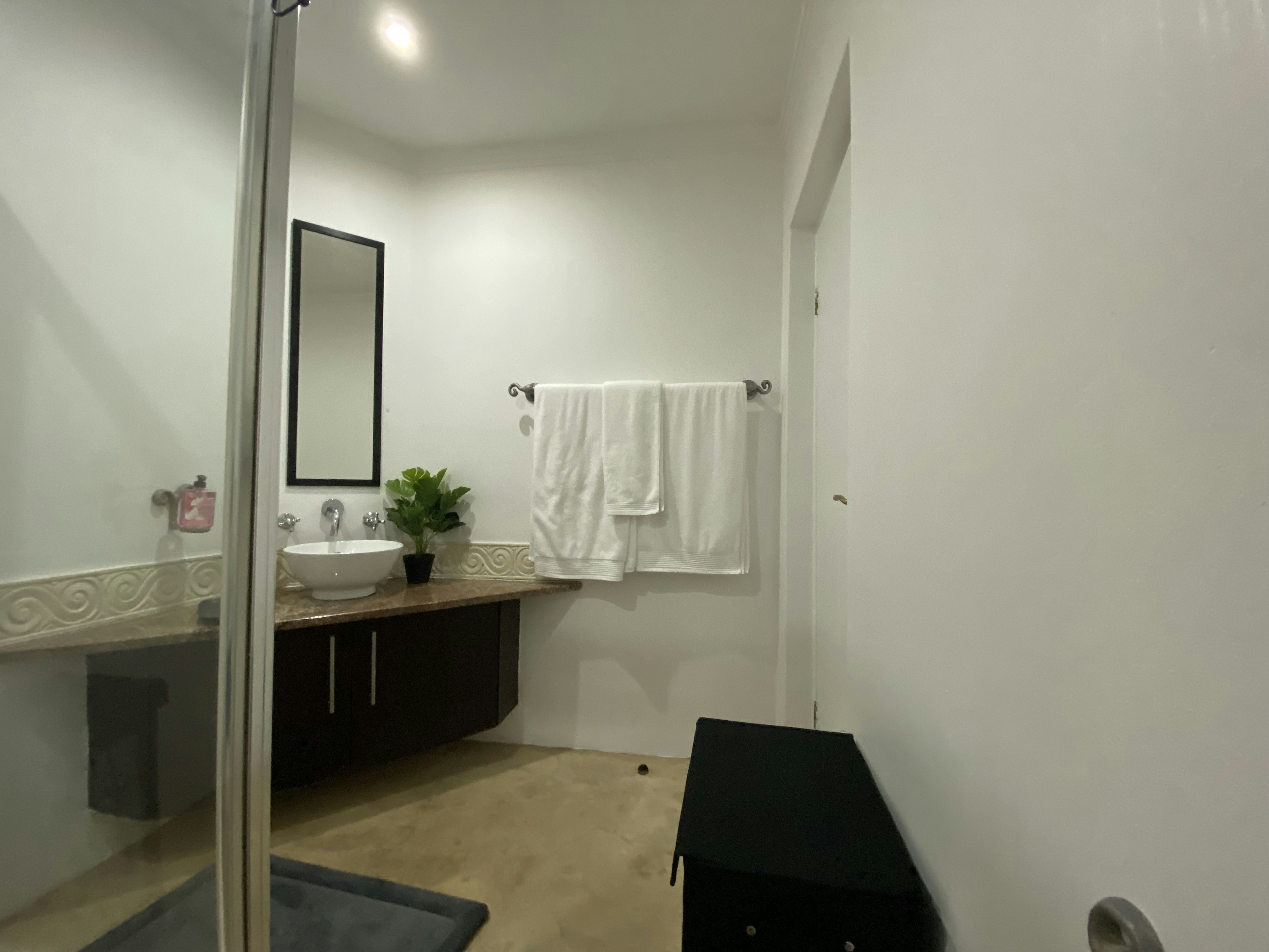 This lovely house can accommodate 8 guests and comprises 4 bedrooms and 3 bathrooms. The main bedroom is furnished with a king-size bed and features an en-suite bathroom fitted with a bath, shower, toilet and double vanity. The second and third bedrooms are each furnished with a queen-size bed and make use of a shared bathroom fitted with a bath, shower, toilet and washbasin. The last bedroom is furnished with a queen-size bed and features an en-suite bathroom fitted with a shower, toilet and washbasin. Quality linen and bath towels are provided; however, guests are required to bring their own swimming towels.