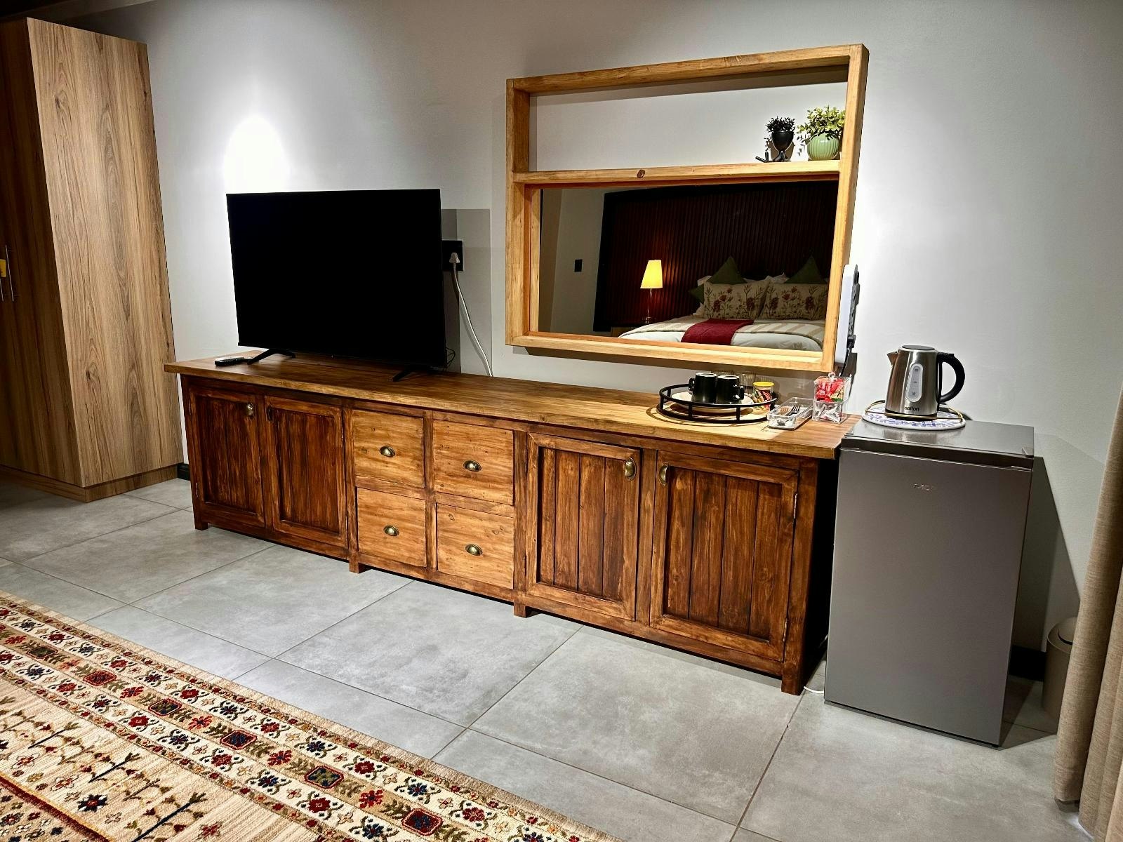 Kamergeriewe sluit in lugversorging, 'n lessenaar, DStv/satelliet-TV, stromingsdienste, WiFi, 'n yskassie, tee- en koffiemaakgeriewe, 'n en suite-badkamer met handdoeke, 'n sitarea, 'n balkon, wekroepe en strykgeriewe. Alle kamers is rookvry.