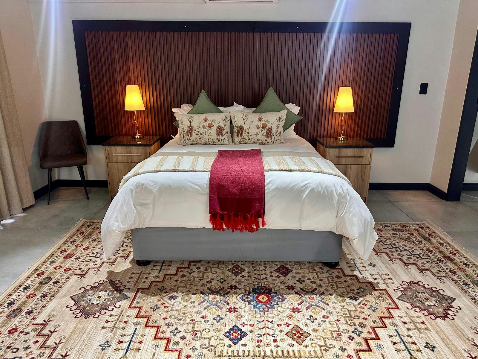Fairview Guest House Executive bied 'n verfynde verblyf in sy nuut bekendgestelde luukse vleuel, met 'n presidensiële suite en 5 uitvoerende kamers wat ontwerp is vir beide sakereisigers en vakansiegangers. Geleë in Hartswater, 'n groen oase in die Vaalhartsvallei aan die rand van die Noord-Kaap, bied die eiendom maklike toegang tot die streek se plattelandse besienswaardighede. Gaste kan die ikoniese Poplar Lane verken, plaaslike wynproeë geniet, die Vrouemonument besoek en leer oor een van die wêreld se grootste besproeiingskemas wat die landbou van die gebied ondersteun.