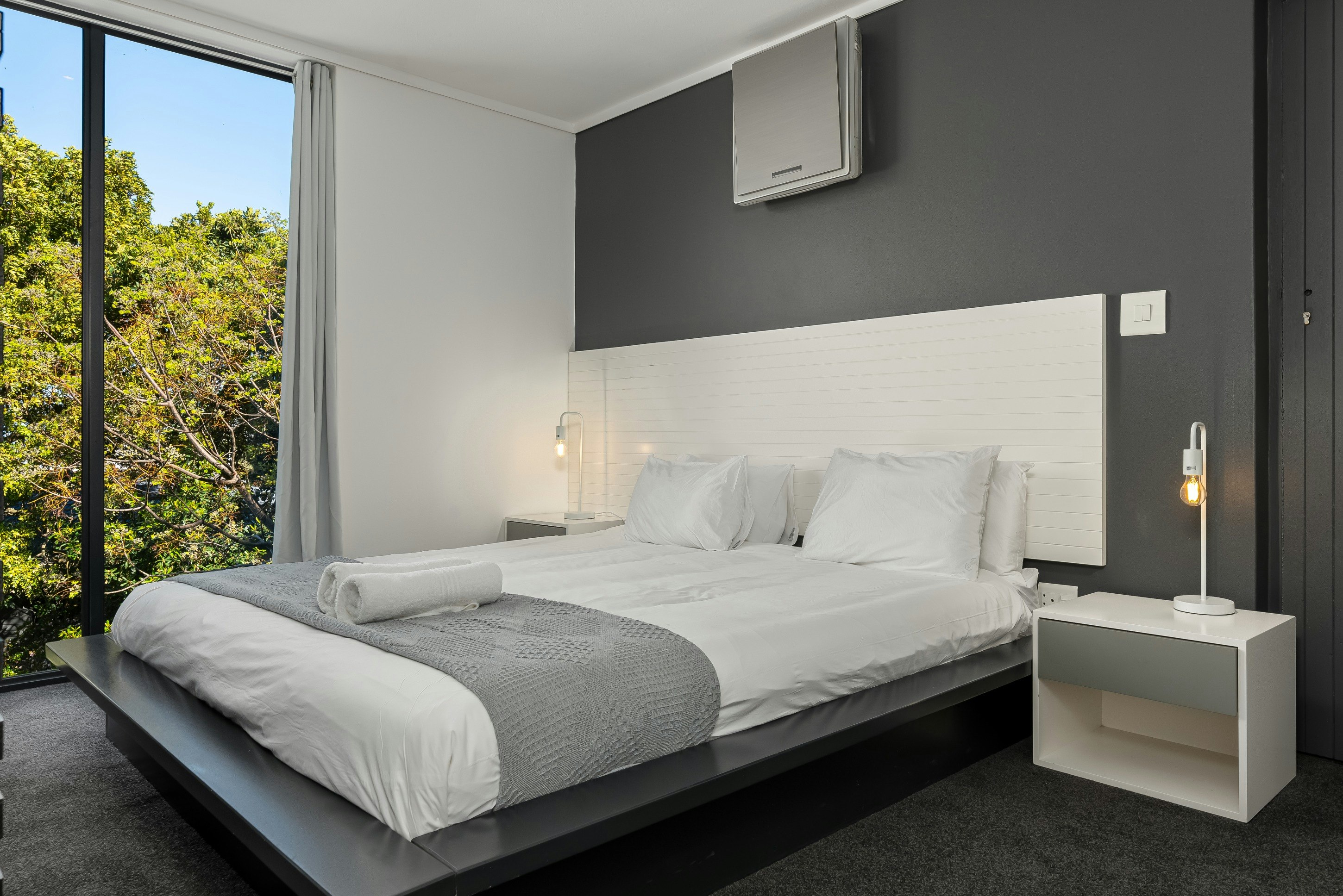 Hierdie dubbelverdieping-eiendom bied slaapplek vir 6 gaste en bestaan uit 3 en suite-slaapkamers sowel as 'n gastetoilet. Die eerste en tweede slaapkamers is gemeubileer met 'n koninggrootte-bed, terwyl die derde slaapkamer 'n koningingrootte-bed het. Twee van die badkamers is toegerus met beide 'n bad en 'n stort, terwyl die oorblywende badkamer slegs 'n stort het. Linne en badhanddoeke word voorsien.