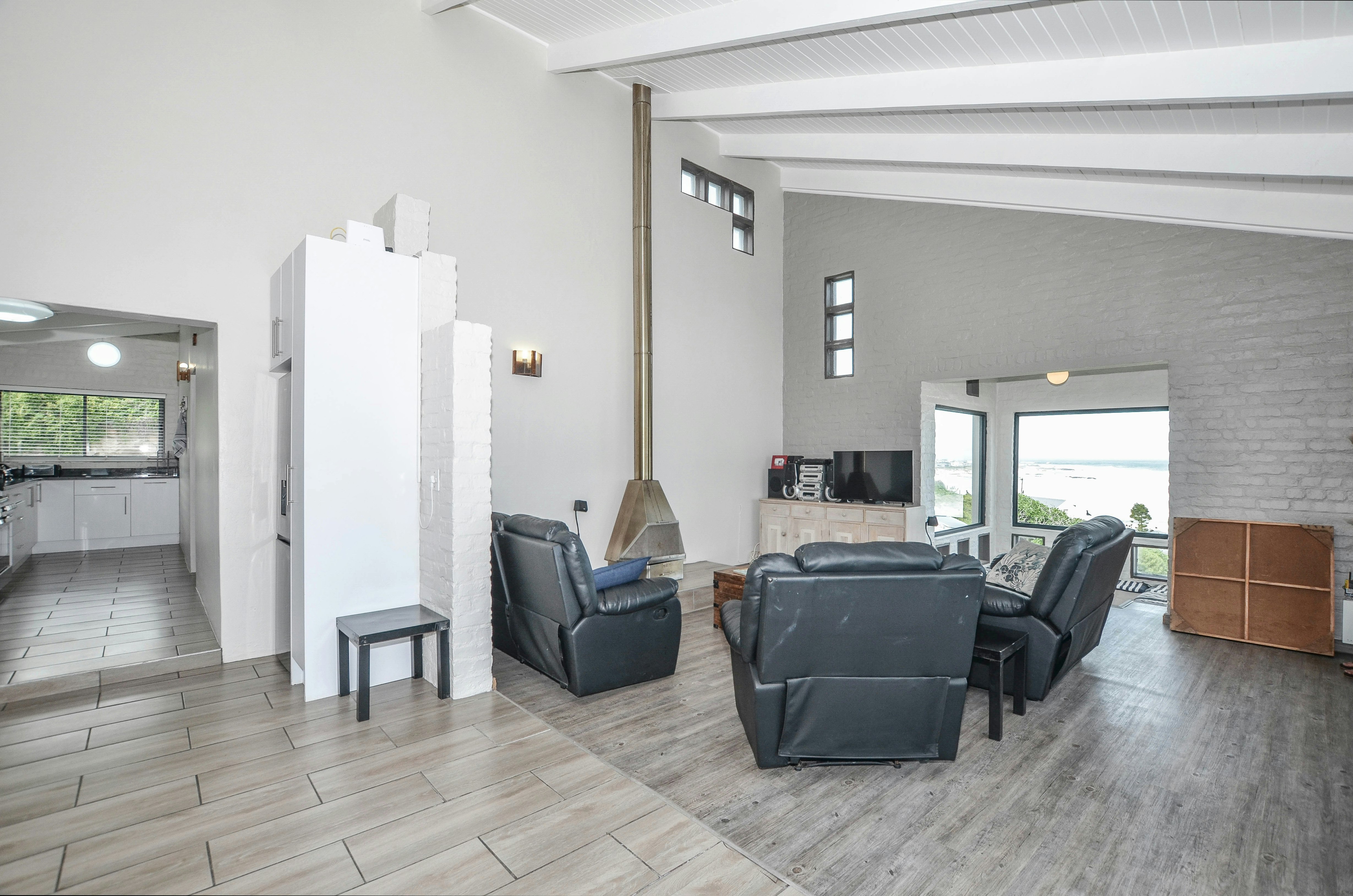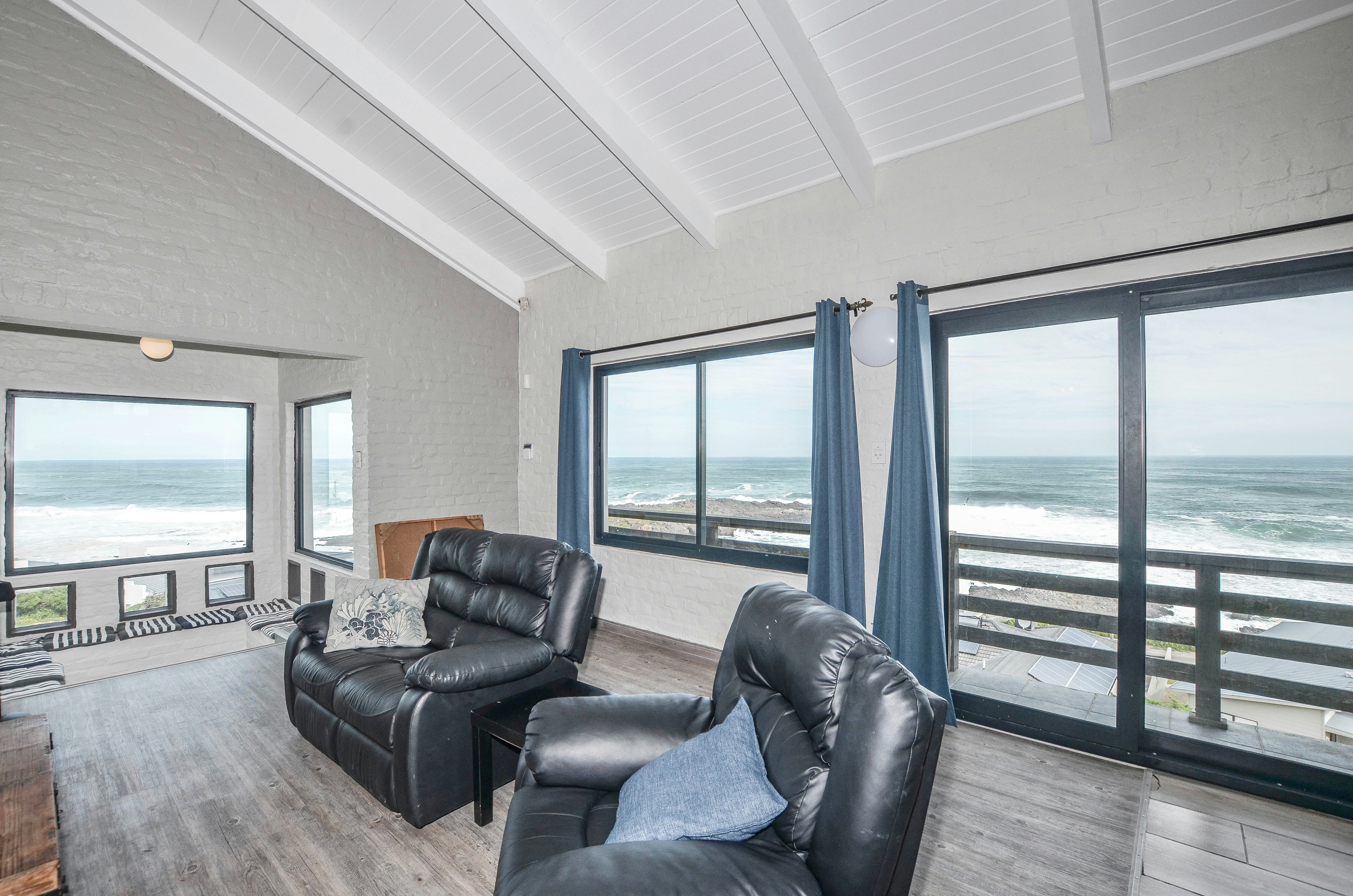 Op die boonste verdieping is daar 'n dubbelmotorhuis, 'n kombuis met 'n skottelgoedwasser en 'n eetkamer met ingeboude braaigeriewe wat lei na 'n balkon met 'n piekniektafel met sitplek vir 8. Daar is ook pragtige see-uitsigte. Die TV-kamer het volledige DStv, 'n kaggel, see-uitsigte, nog 'n klein balkon, 'n kuierplek en uitsigte oor Tafelberg op 'n helder dag. Daar is ook 'n aparte toilet en trappe wat lei na die slaapkamers op die onderste verdieping.