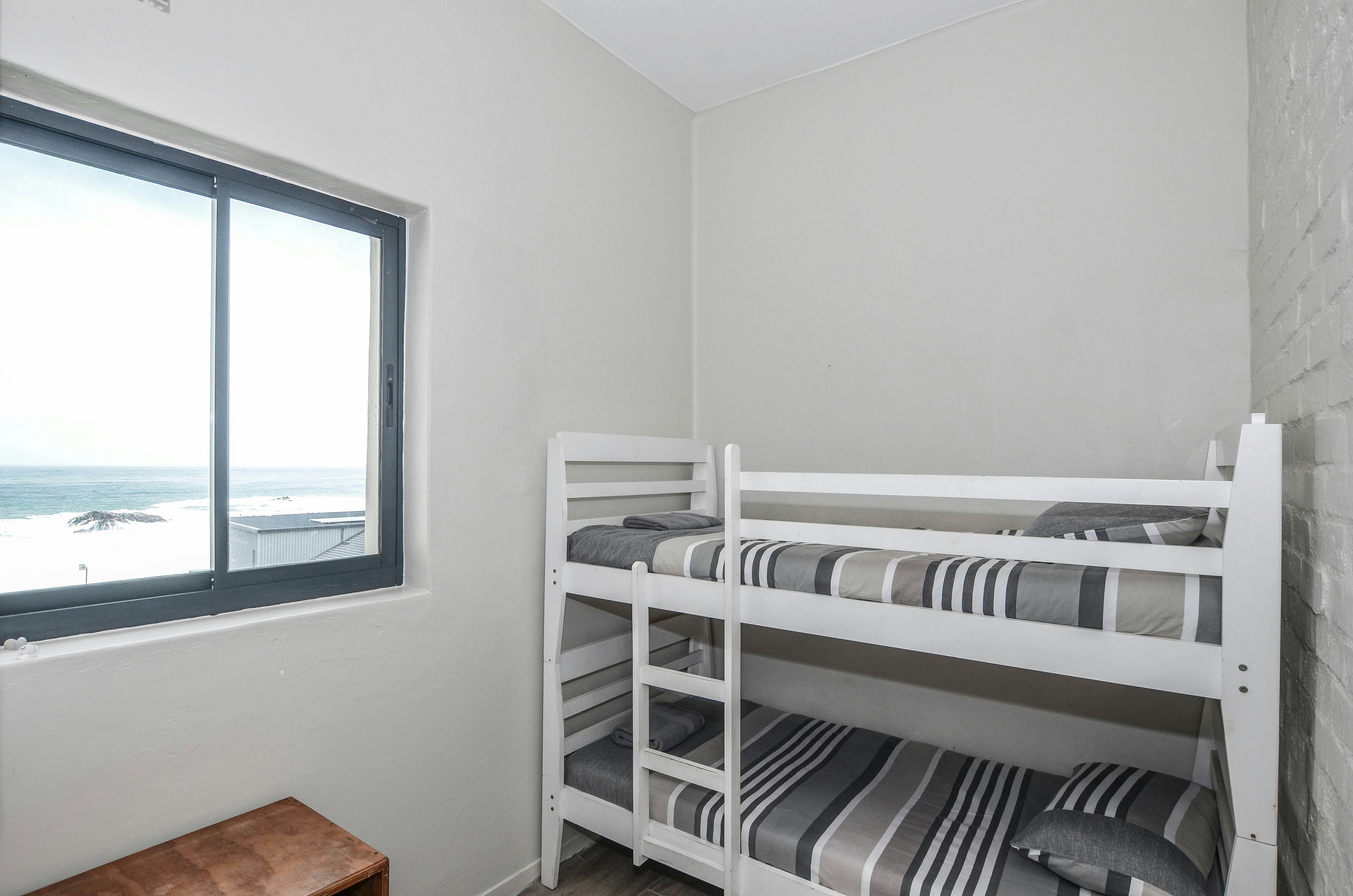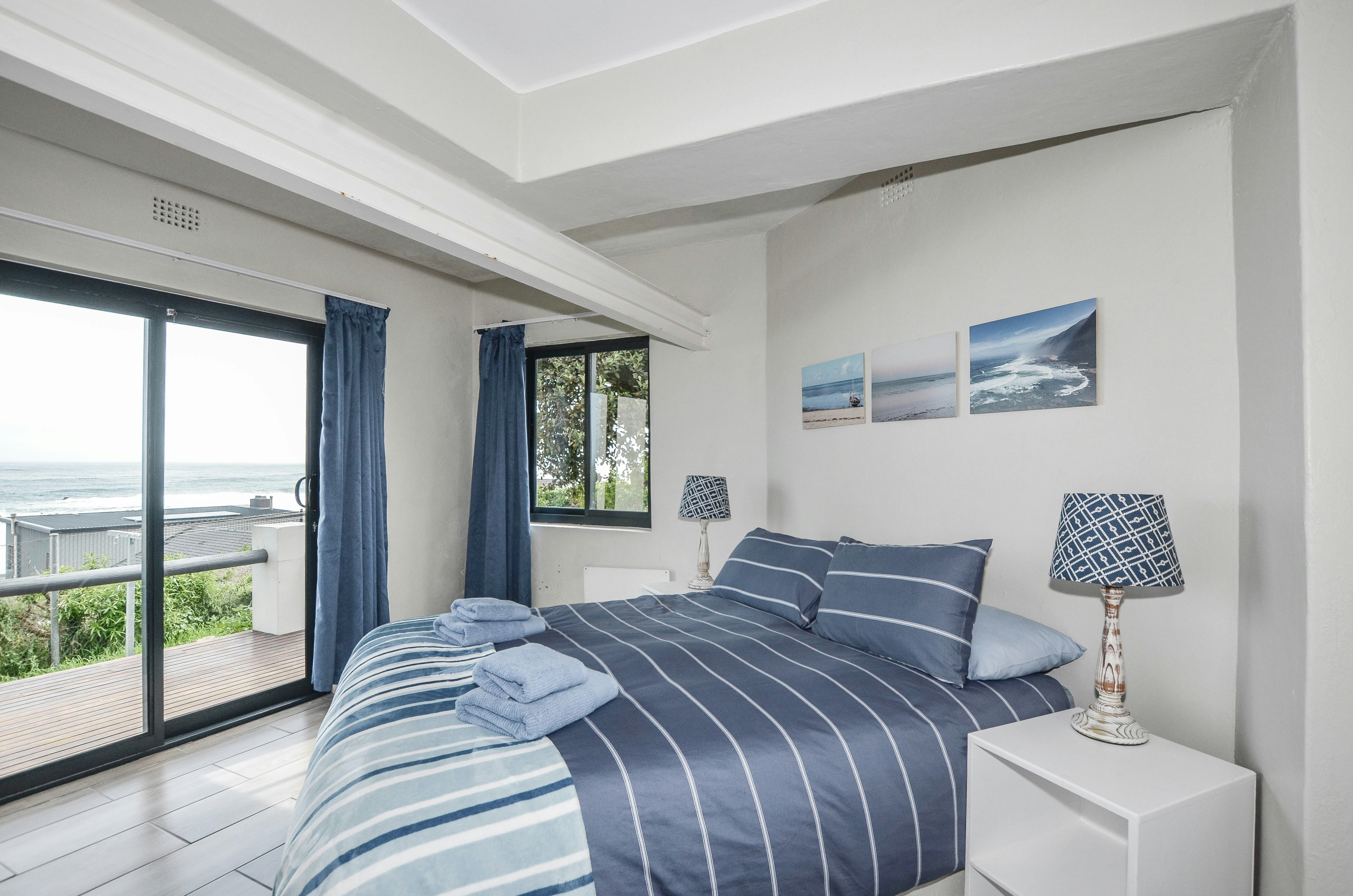 Op die onderste verdieping is daar 'n hoofslaapkamer met 'n koninggrootte-bed wat ook opgemaak kan word as 2 enkelbeddens. Hierdie kamer het ook 'n en suite-badkamer met 'n stort en bad, klerekaste, 'n balkon, see-uitsigte en elektriese komberse vir die winter. Die tweede slaapkamer het 'n dubbelbed, 'n en suite-badkamer met net 'n stort, geen see-uitsigte nie, 'n rak maar geen klerekas nie en elektriese komberse vir die winter. Die derde slaapkamer het 'n koningingrootte-bed, 'n en suite-badkamer met net 'n stort, 'n balkon, see-uitsigte, 'n klerekas en elektriese komberse vir die winter. Die vierde slaapkamer het 2 enkelbeddens, 'n en suite-badkamer met net 'n stort, 'n lessenaar, klerekaste, geen see-uitsig nie, en let asb. dat hierdie kamer slegs bereik kan word via 'n deur wat skakel aan die hoofslaapkamer of van buite die huis af. Die vyfde slaapkamer is 'n stapelbedkamer wat ideaal is vir kinders. Dit het 'n stapelbed, 'n klein venster met 'n see-uitsig, geen badkamer nie, en 'n klein rak maar geen klerekas nie. Let asb. dat hierdie kamer oop is na die gang aan een kant en daar is net 'n gordyn om dit te skei van die gang.