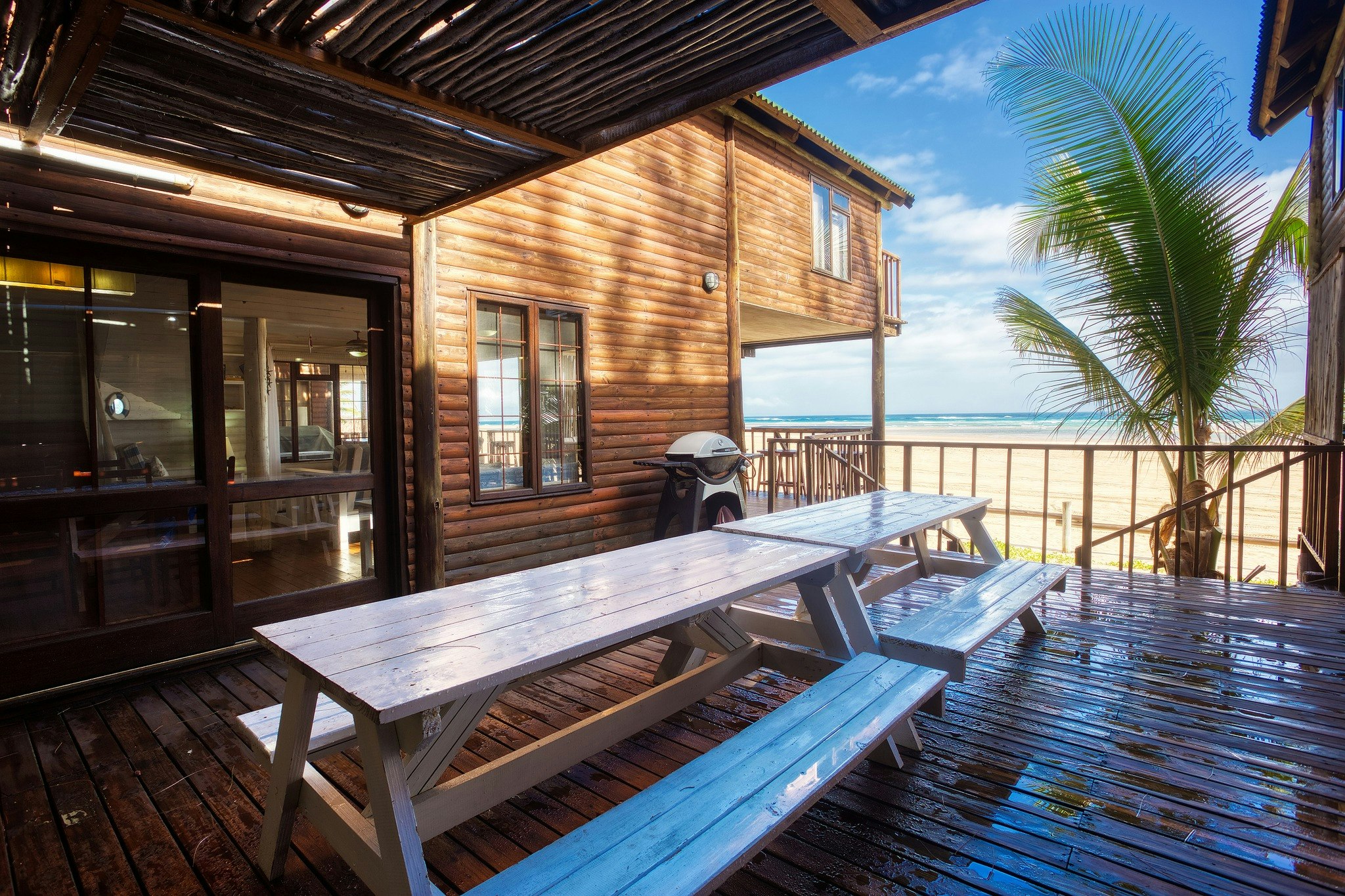 The lounge opens onto a furnished patio complete with braai facilities, ideal for enjoying shared meals while taking in the ocean views. Guests can also make use of the communal swimming pool, dining area, and bar, as well as enjoy direct beach access. Secure parking is provided for the duration of the stay, ensuring peace of mind throughout this coastal escape.