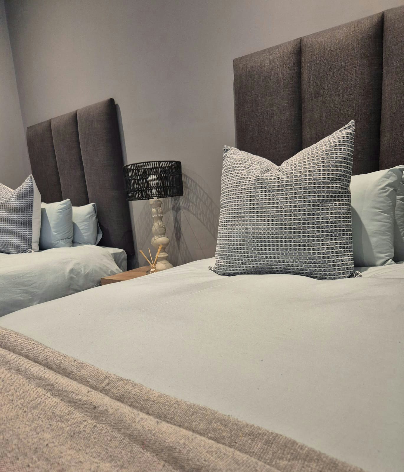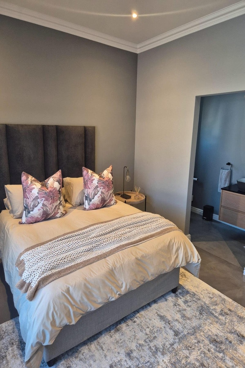Dié stylvolle huis het slaapplek vir 6 gaste en beskik oor 3 en suite-slaapkamers. Die hoofslaapkamer is ingerig met 'n koninggrootte-bed en beskik oor 'n en suite-badkamer met 'n bad, stort, toilet en wasbak. Die tweede slaapkamer het ook 'n koninggrootte-bed en 'n en suite-badkamer met 'n stort, toilet en wasbak. Die derde slaapkamer het 2 enkelbeddens en 'n en suite-badkamer met 'n stort, toilet en wasbak. Elke slaapkamer het lugversorging. Beddegoed en beide bad- en swemhanddoeke word voorsien.