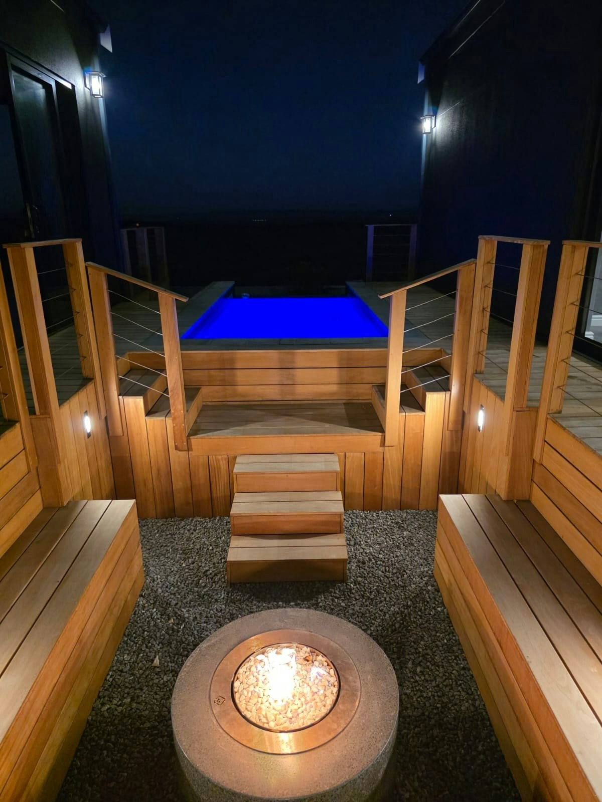 Die leefarea maak oop op 'n ruim patio met buitesitplek, 'n vuurput en braaigeriewe. Gaste kan 'n privaat verhitte swembad en veilige parkeerplek in die motorhuis en oprit geniet. Die eiendom is beveilig met 'n alarmstelsel.