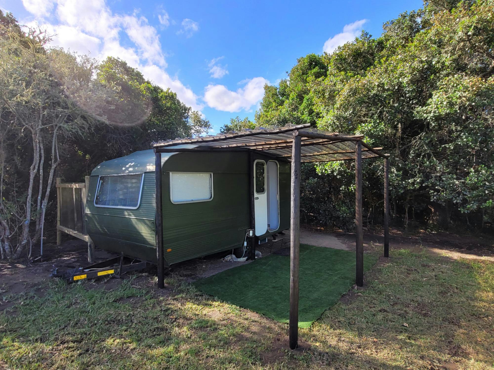 The campsite accommodates up to 12 people and features access to 2 hot-water showers and 2 flushing toilets. A glamping caravan is also available, furnished with a king-size bed, private space, and a kitchenette equipped with a bar fridge and microwave.