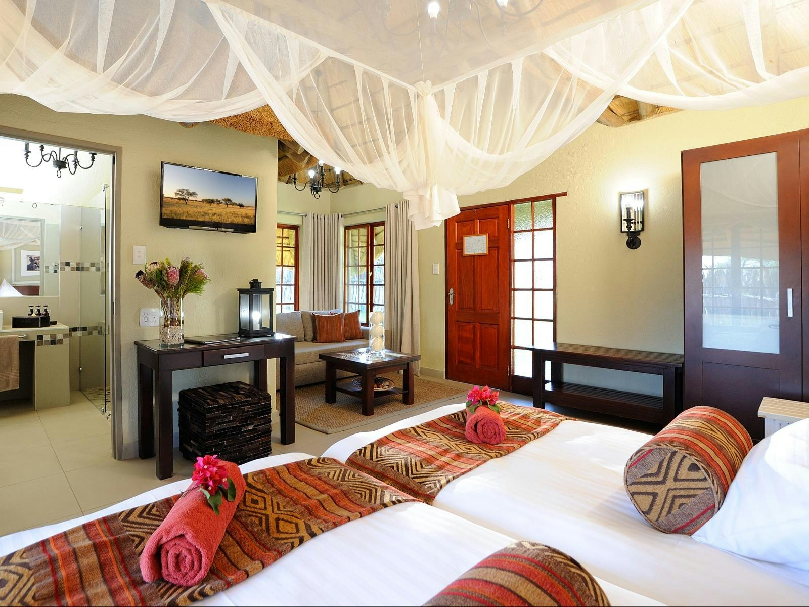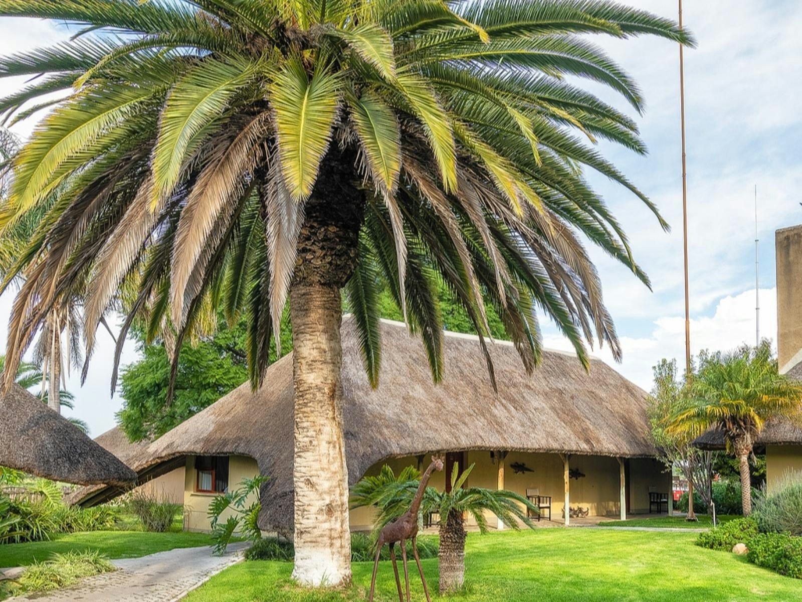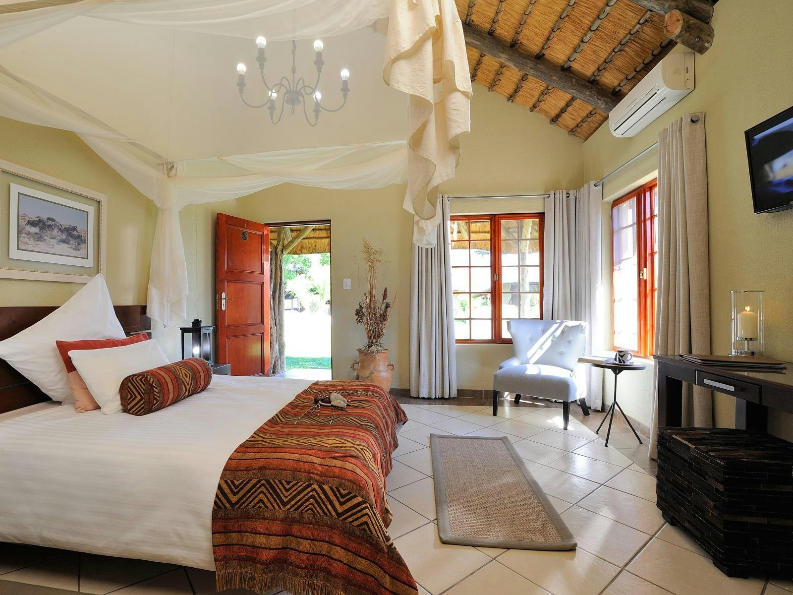 An expansive buffet-style breakfast is included with each reservation. Set menus for lunch and dinner are also served at the thatched open lapa, which is the perfect place to end a fun-filled day in Namibia. This lodge invites guests to enjoy the Owambo-style decoration, beautiful garden and excellent cuisine, or have a sundowner on the wooden terrace overlooking the peaceful and majestic landscape of the thorn bush savannah.
