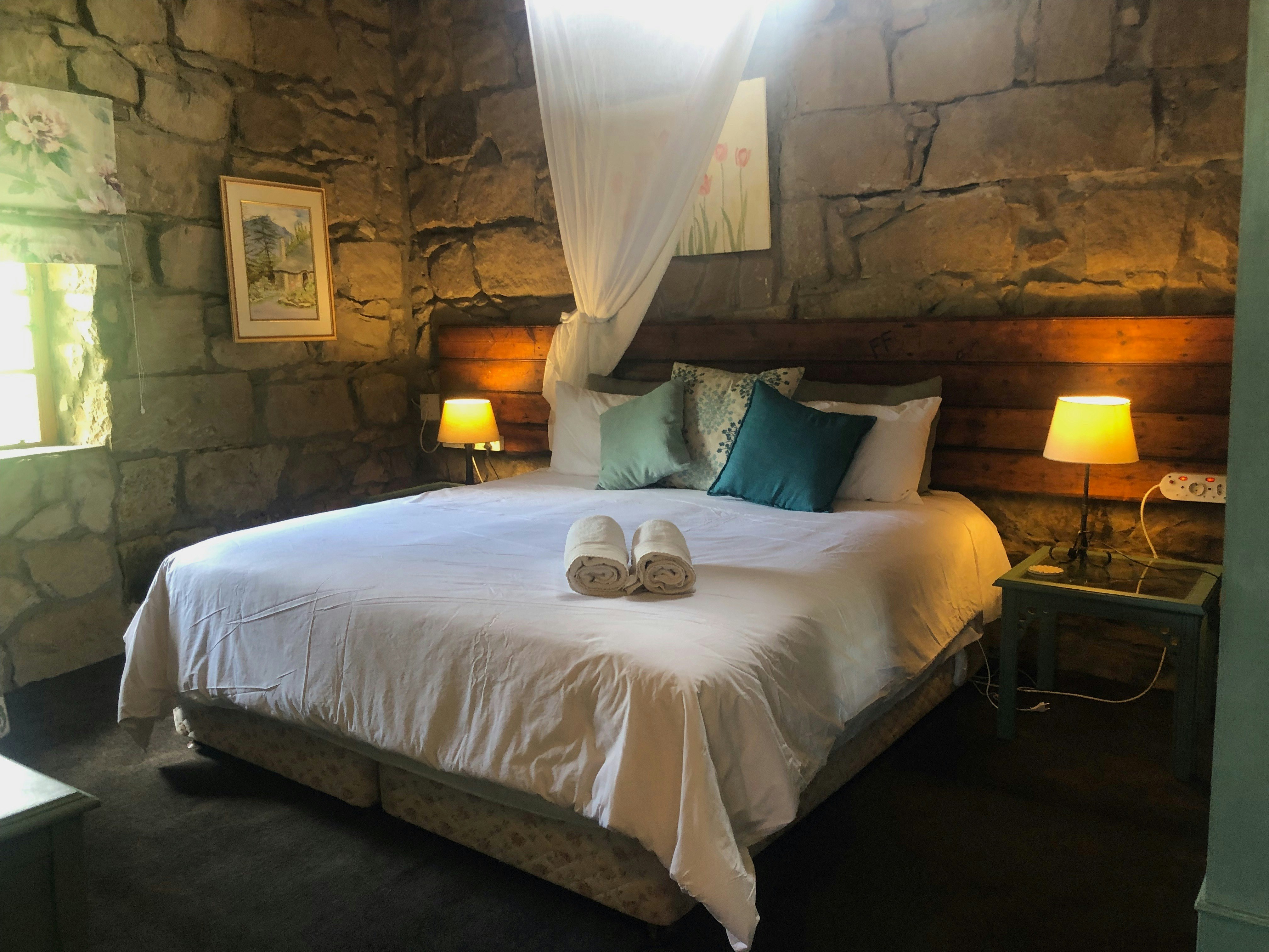 Accommodation is offered in 2 guest cottages. The Stables is a charming self-catering cottage located on a sandstone bluff with a spectacular view of the Witteberg Mountain Range. The cottage has two bedrooms, each with a king-sized bed and en suite bathroom fitted with a bath, shower, toilet, and washbasin.