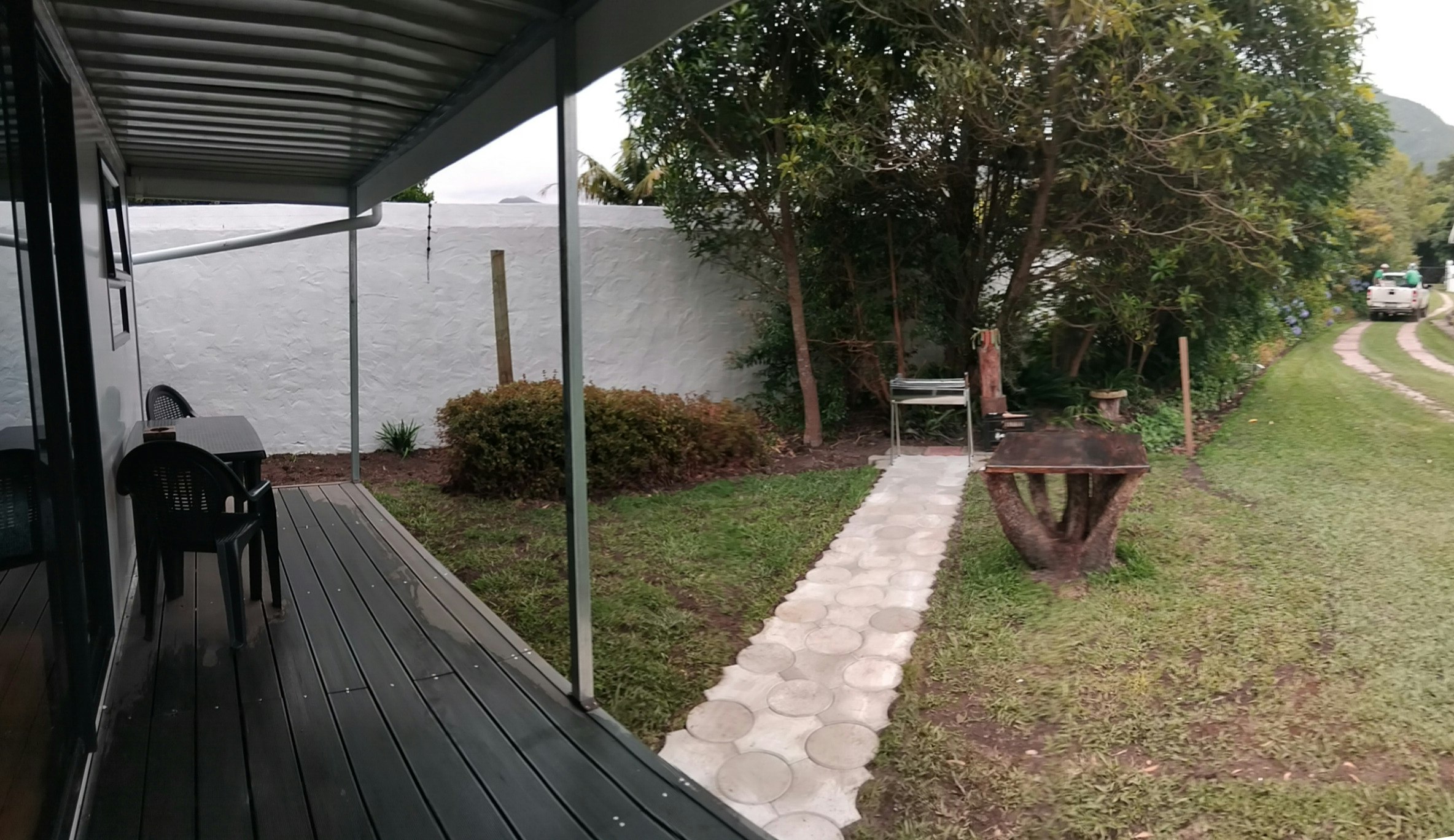 The cottage opens onto a patio with outdoor seating, a garden area, and braai facilities. The property is close to restaurants, ziplines, Segway tours, tubing, Tsitsikamma National Park, Bloukrans Bungy, and wildlife sanctuaries. Guests can relax in a peaceful garden visited by over 1,000 birds, including the Knysna Loerie, and enjoy the Island of Dreams stream.