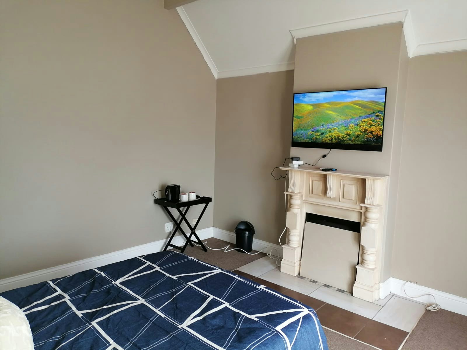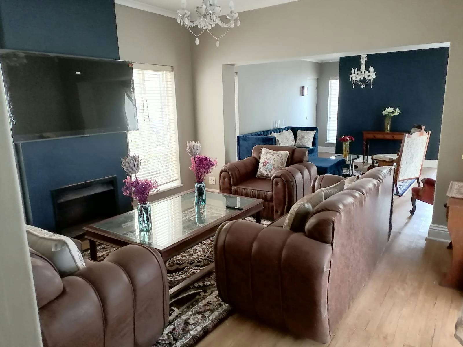 The home features a fully equipped kitchen that includes a gas stove, air fryer, microwave, kettle, toaster, fridge-freezer, and washing machine. The lounge and dining areas offer comfortable seating and also boast a fireplace. For entertainment, a smart TV with the full bouquet of DStv channels and access to free Wi-Fi are available.