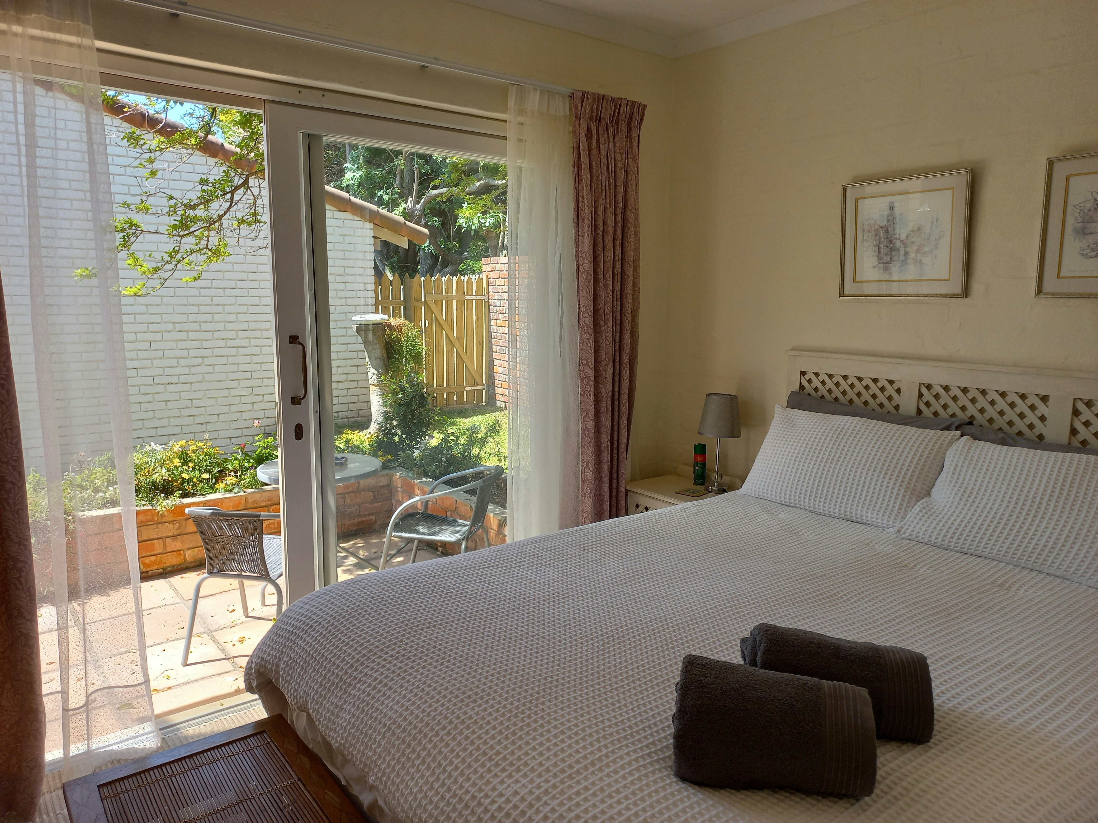Die eenheid kan tot 2 volwassenes akkommodeer en beskik oor 'n ekstra-lengte koningingrootte-bed en ingeboude kaste. Die en suite-badkamer het 'n stort, toilet en 'n wasbak. 'n Platskerm-TV met volledige DStv is beskikbaar. Die eenheid is ook toegerus met 'n yskassie, 'n mikrogolfoond en 'n ketel. Melk, water, tee en koffie word saam met graankos en beskuit voorsien om jou dag aan die gang te kry. Daar is gratis hoëspoed-Wi-Fi wat op vesel gebaseer is. 'n Skuifdeur maak oop na die privaat patio en tuinarea met 'n 2-sitplek tafel en stoele. Daar is twee vlak trappe wat na die patio lei wat na die kamer lei.