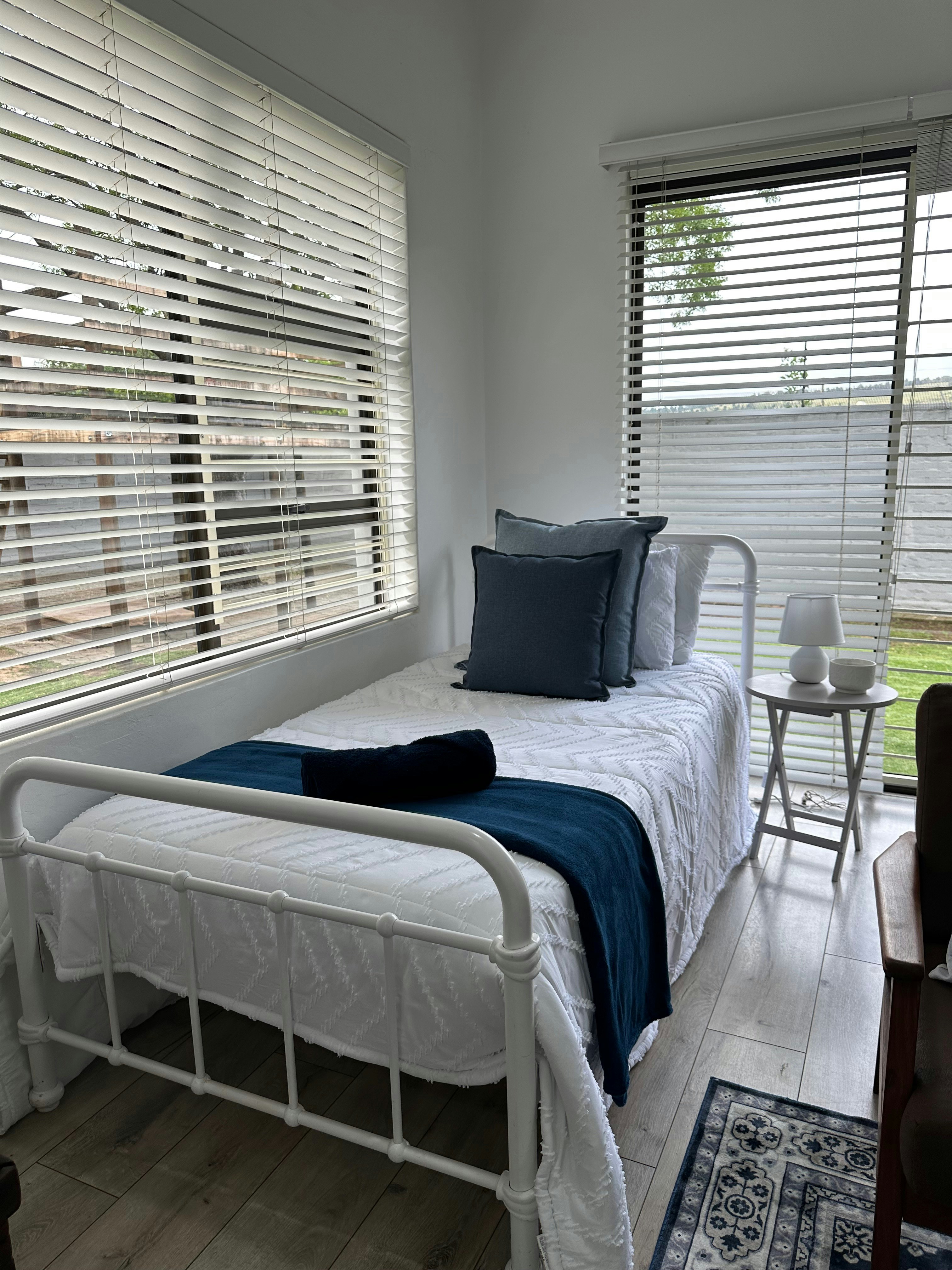 This unit can accommodate 3 adults and 1 child and is furnished with a queen-size bed and a single bed, and a mattress for a child. The unit has an en-suite shower, a separate basin, and a toilet. Linen and towels are provided.