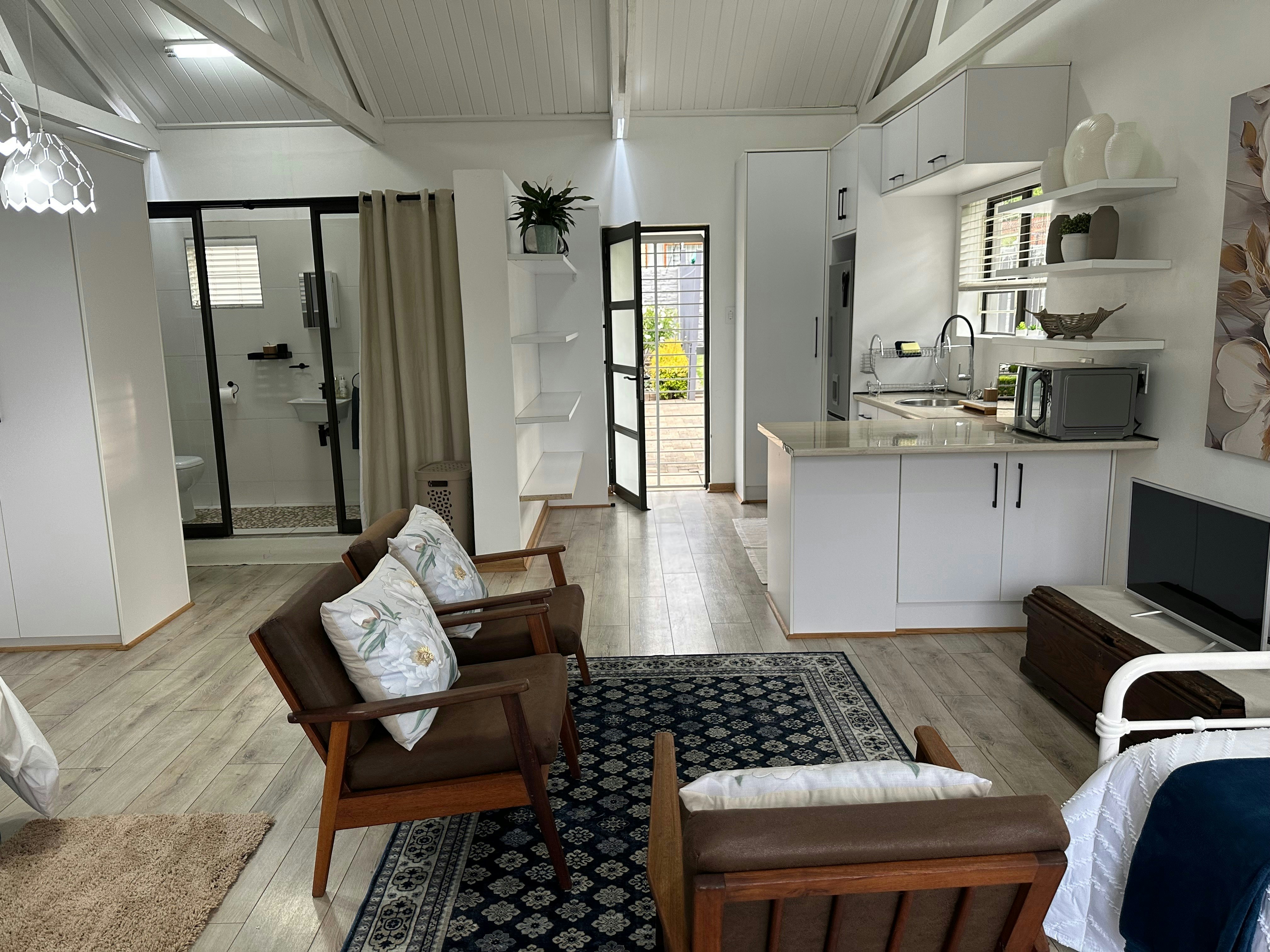 The unit has a kitchenette equipped with a fridge, microwave, and tea- and coffee-making facilities, and features a cosy lounge area with a smart TV with DStv and Netflix. Complimentary Wi-Fi is available.