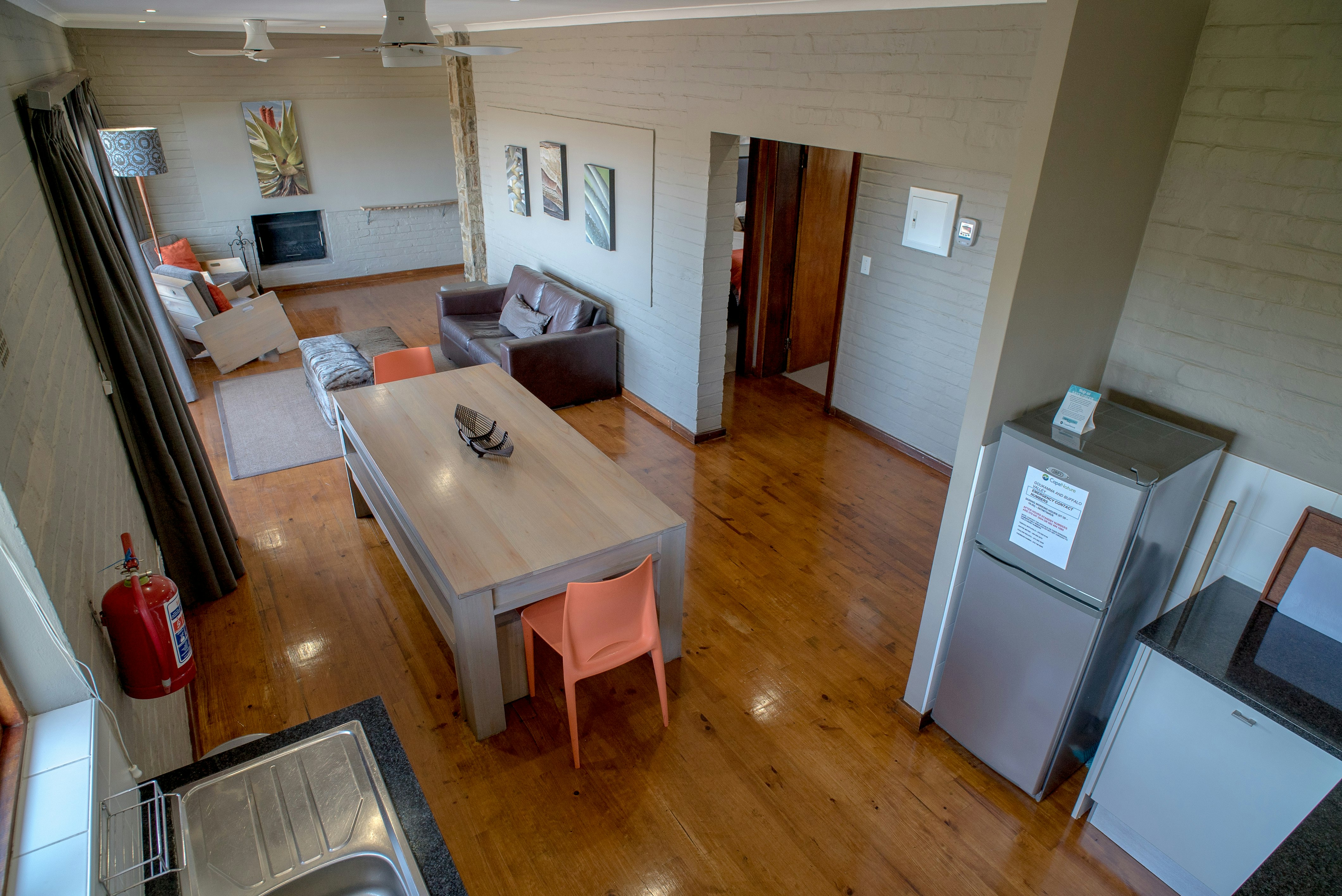 Die eerste slaapkamer het ’n dubbelbed. Die tweede slaapkamer het 2 enkelbeddens. Die badkamer het ’n bad, stort, toilet en wasbak. Die kombuis is goed toegerus vir selfsorg met ’n stoof, oond, yskas-vrieskas, ketel, broodrooster, eetgerei en breekware.