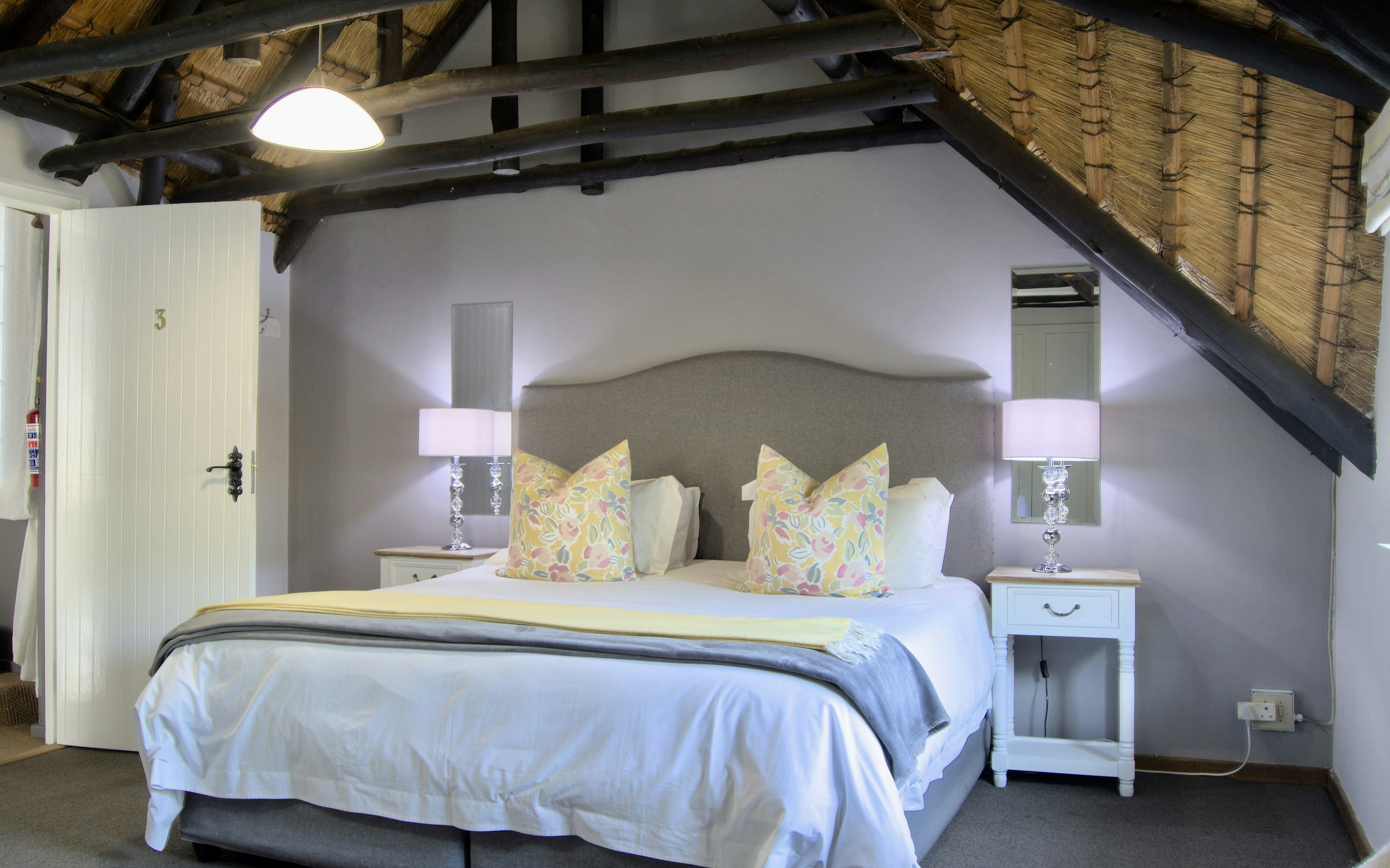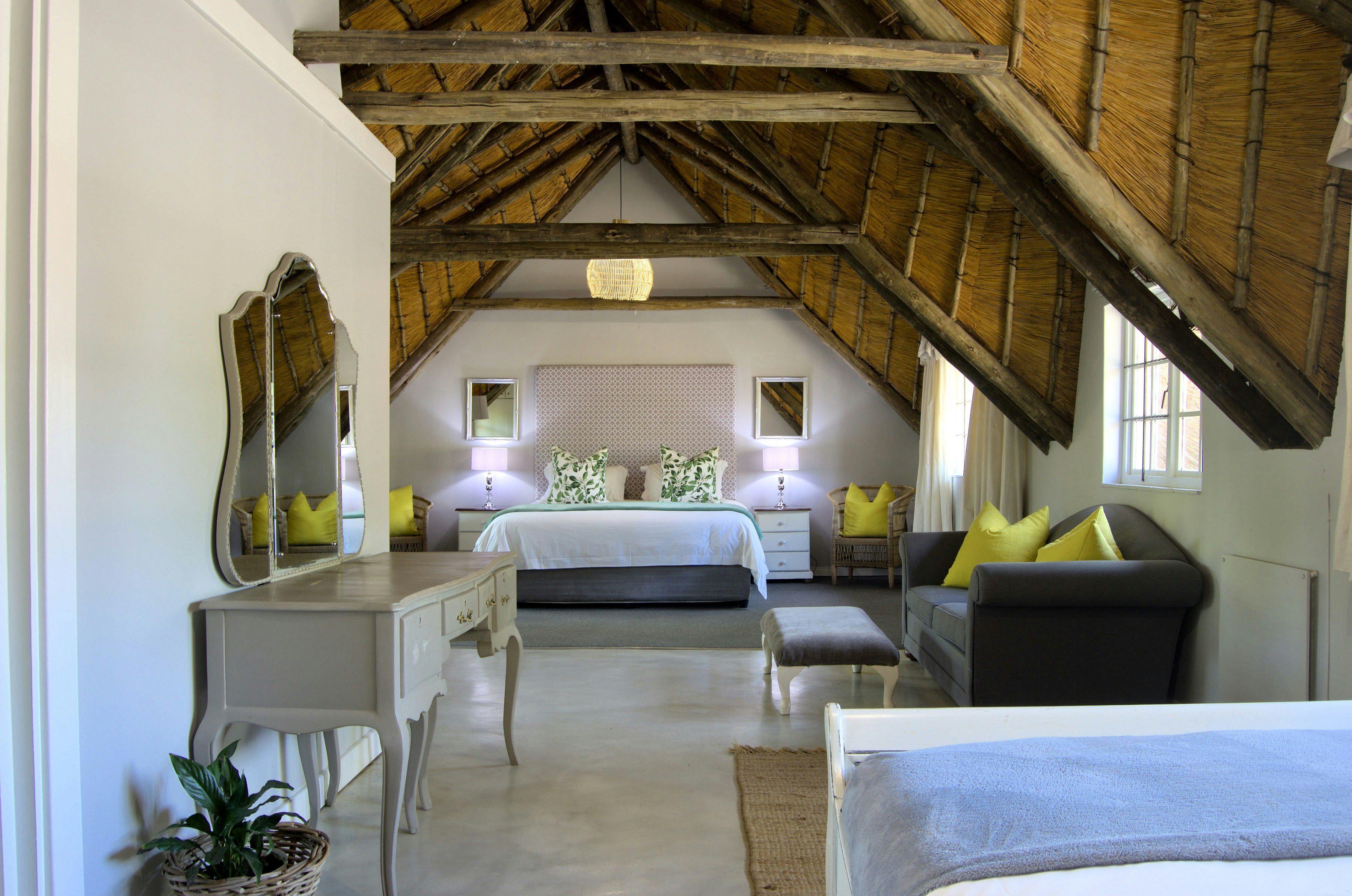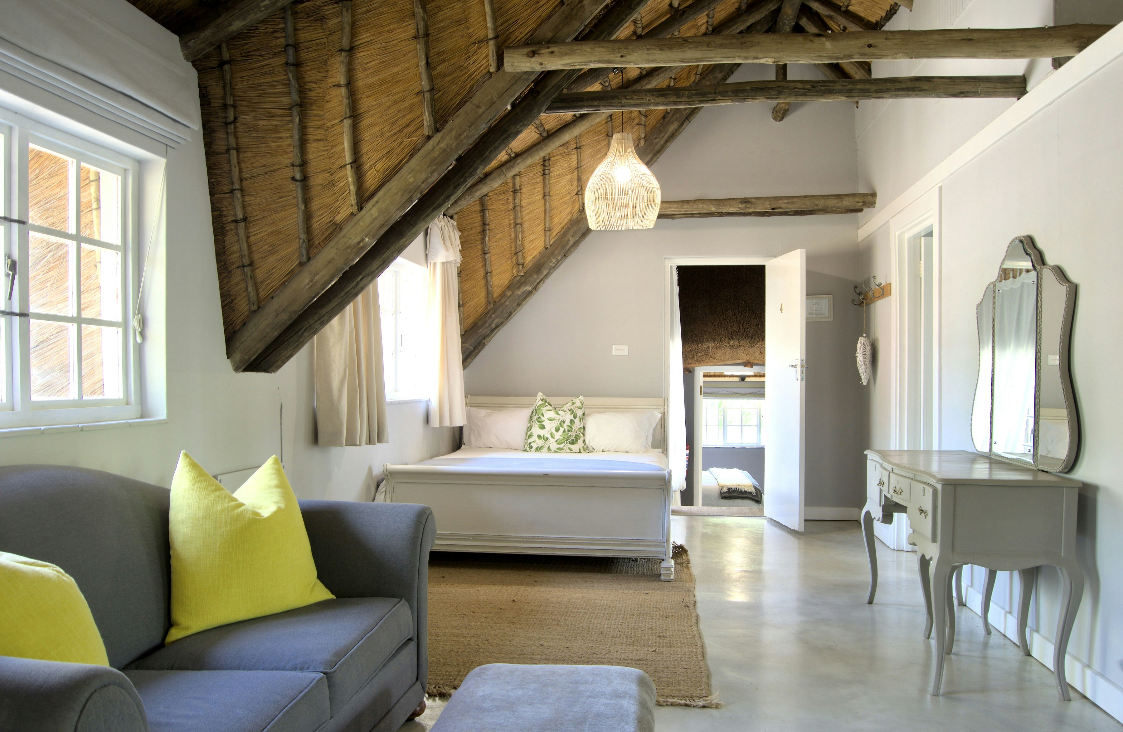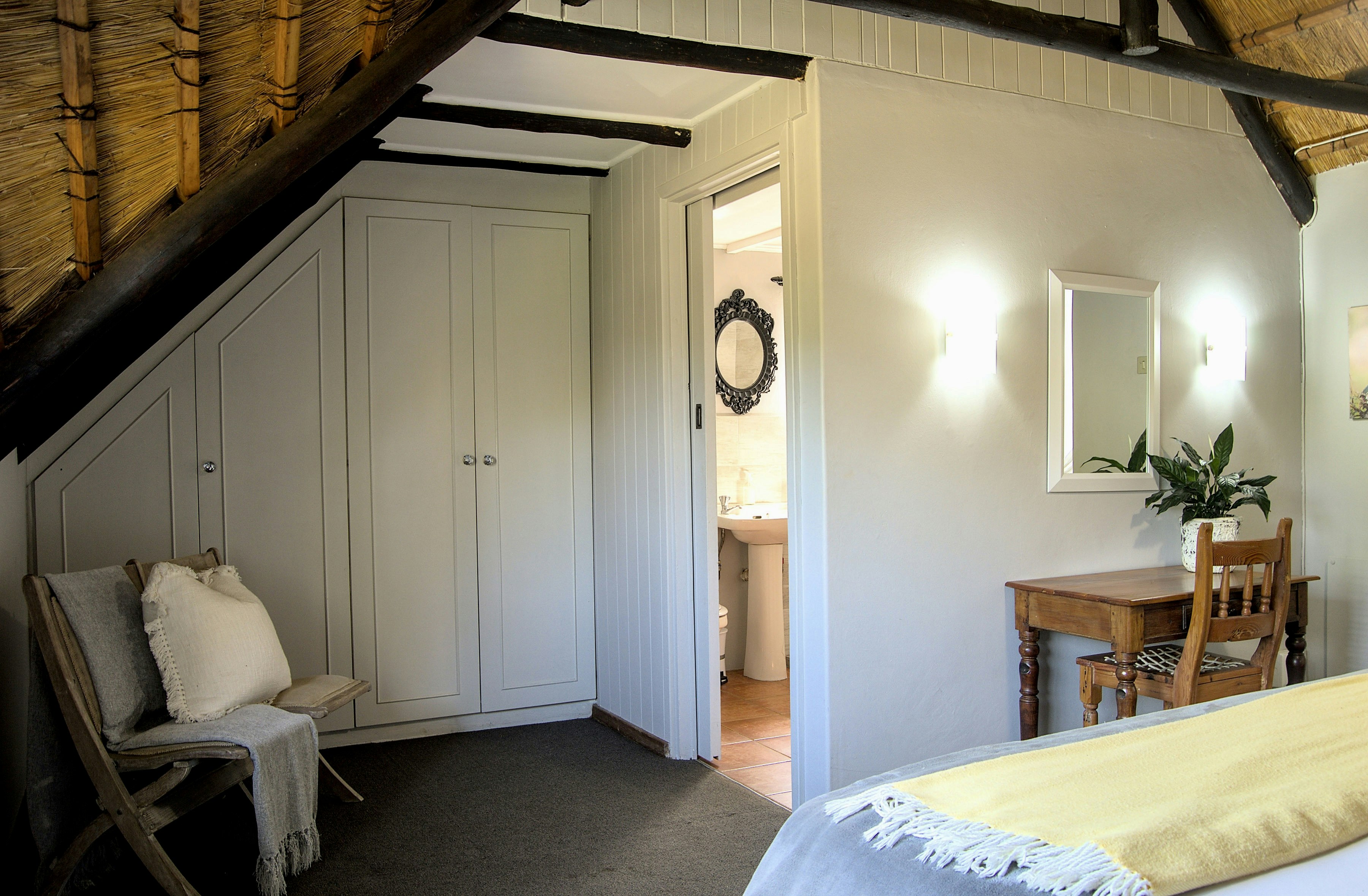 Ons bied verskeie verblyfopsies, elk met en suite-badkamers. Daar is 6 slaapkamers in die grasdakhuis, 2 kamers wat aan die Riverhuis geheg is, en 5 ruim kamers in die tuin. Altesaam is daar slaapplek vir 26 (asook 3 ekstra) gaste.