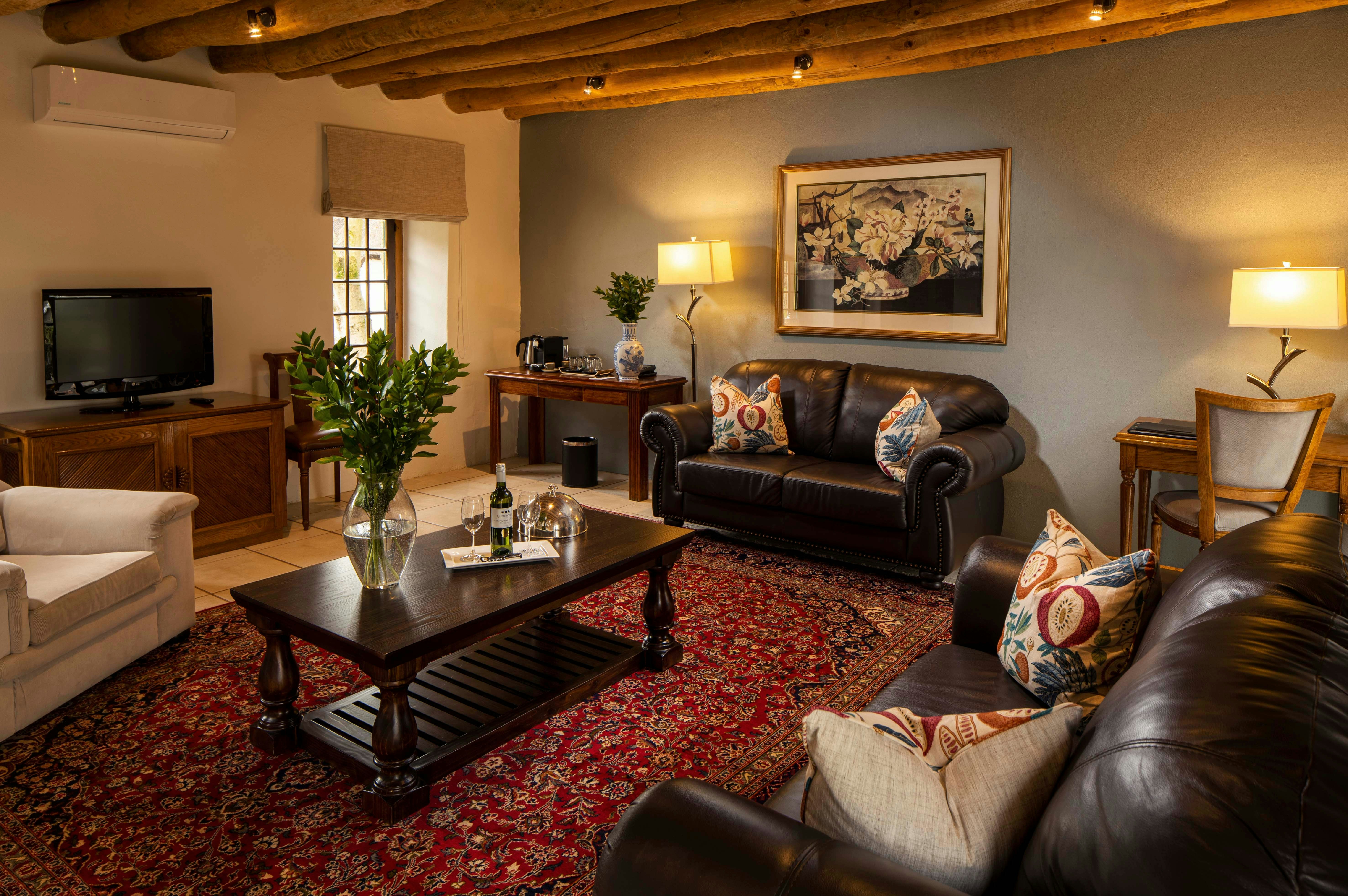 Verblyf word aangebied in pragtig ingerigte eenhede soos die Terras-suites, Heritage-suites, Legacy-kamers en 'n Tuin-suite. Elke eenheid beskik oor gemaklike beddens, kwaliteit linne en badhanddoeke, lugversorging, luukse badkamergeriewe, satelliet-TV, 'n kluis, haardroërs, badjassen en tee- en koffiemaakgeriewe. Toegang tot WiFi is beskikbaar.