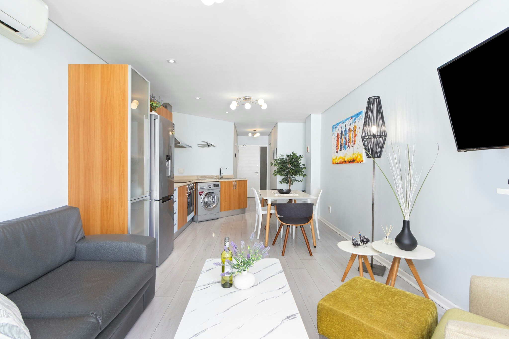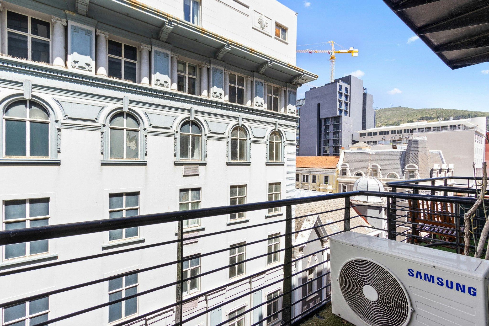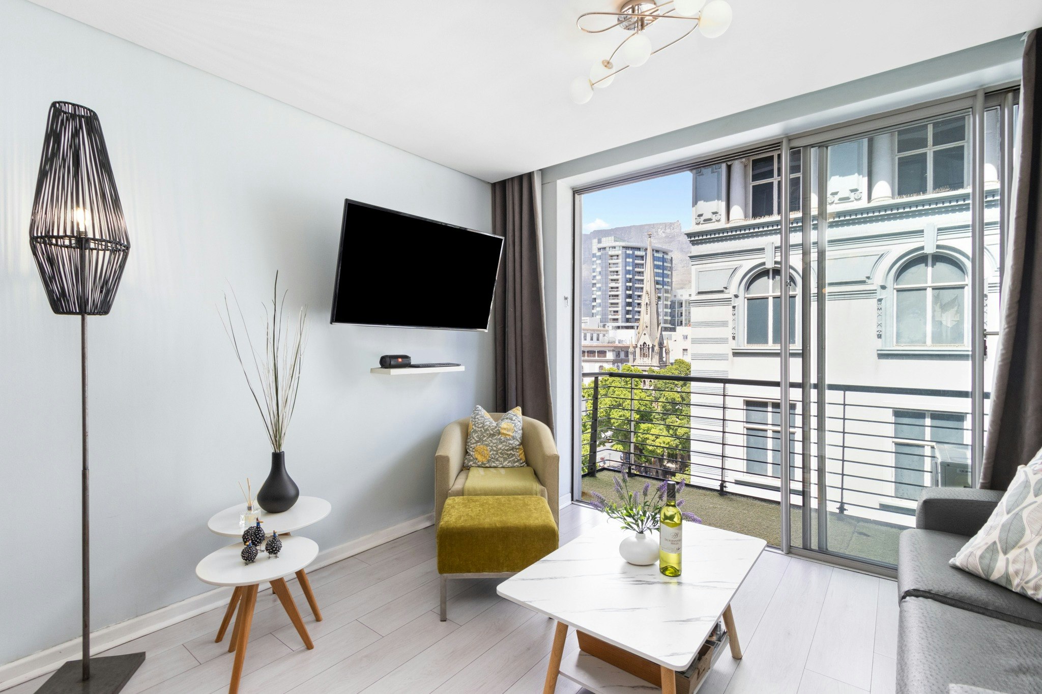 Hierdie leefarea lei na 'n oulike balkon wat perfek uitkyk oor die omliggende stad. Die ligging van hierdie eiendom is binne loopafstand van baie winkels en restaurante. Dit is slegs 'n kort rit van baie toeriste-aantreklikhede soos Tafelberg en die V&A Waterfront.