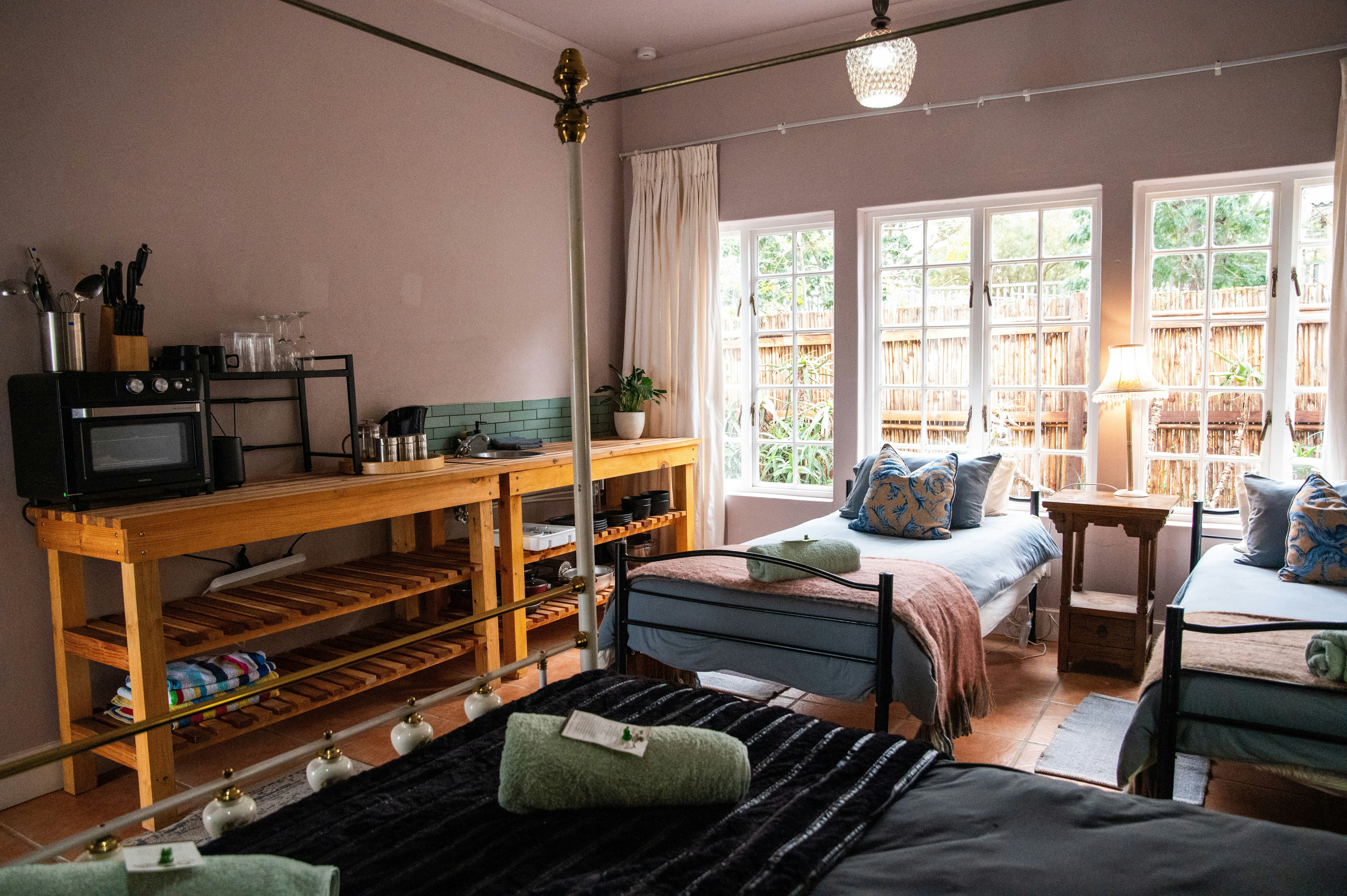 Kameropsies sluit in 2 koninggrootte kamers met kombuisies, 2 luukse koninggrootte kamers met privaat binnehoftuine, 2 tweelingkamers (1 omskepbaar in 'n koninggrootte bed) en 1 dubbeltuinkamer. Die gesinskamer het 'n hemelbed, 2 enkelbeddens en 'n kombuisie, met 'n privaat badkamer 1 meter weg.